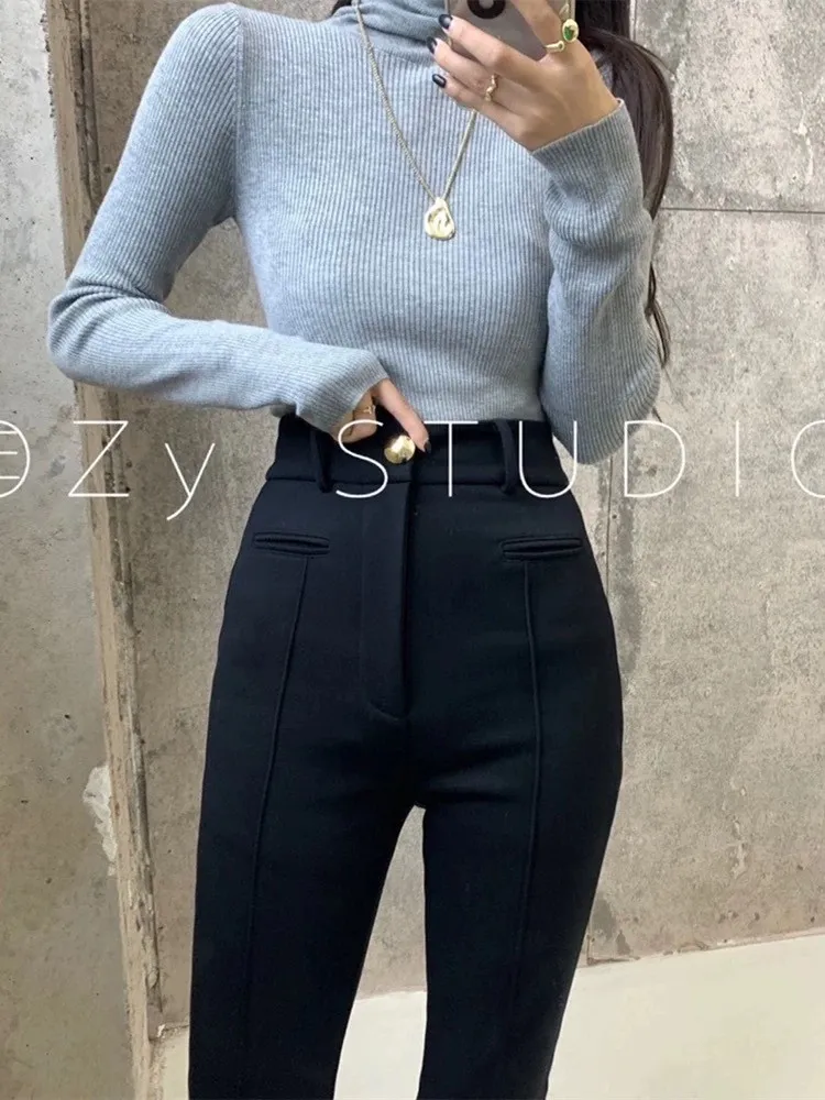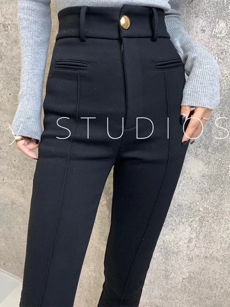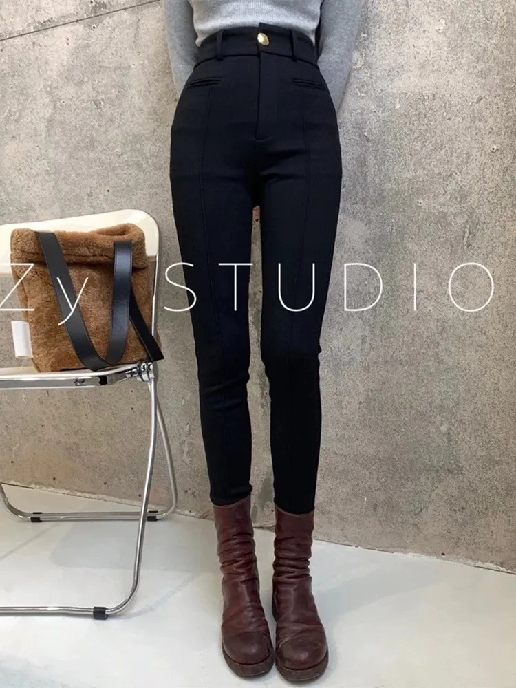 加絨高腰鉛筆褲
