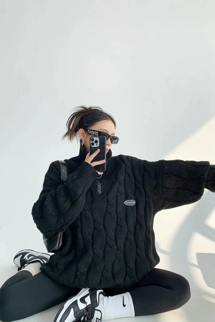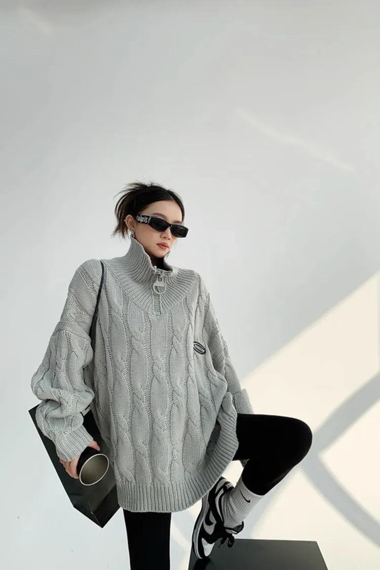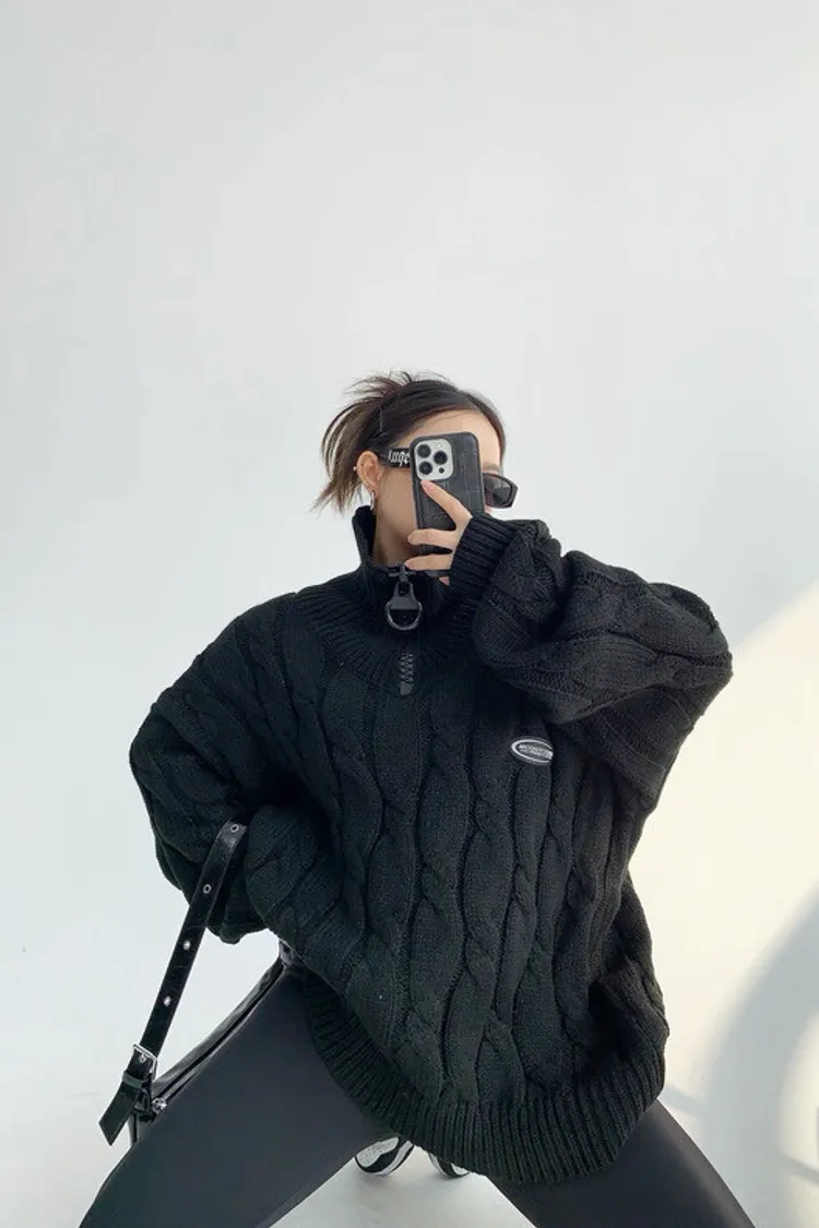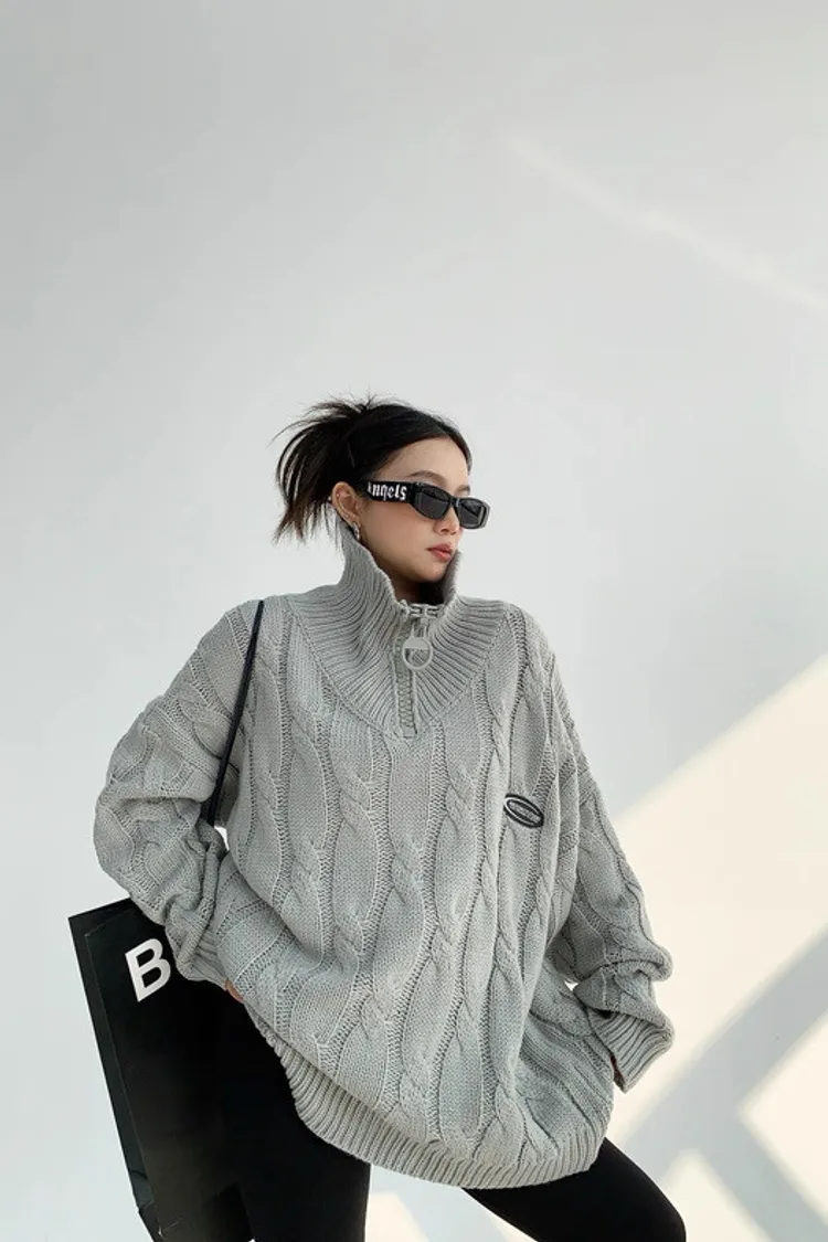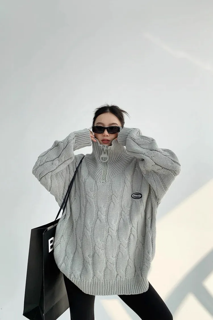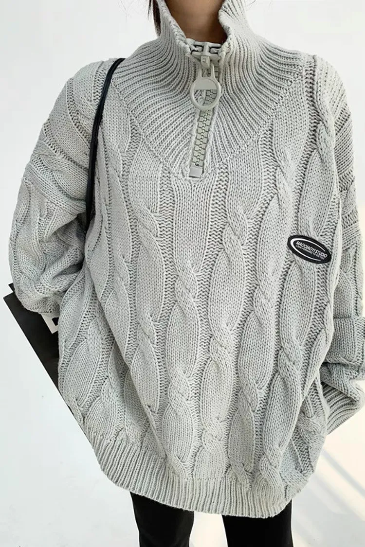 大拉鍊麻花針織上衣