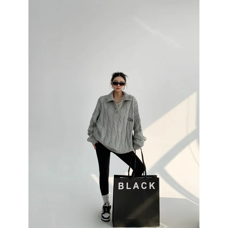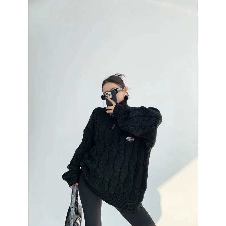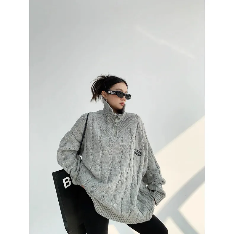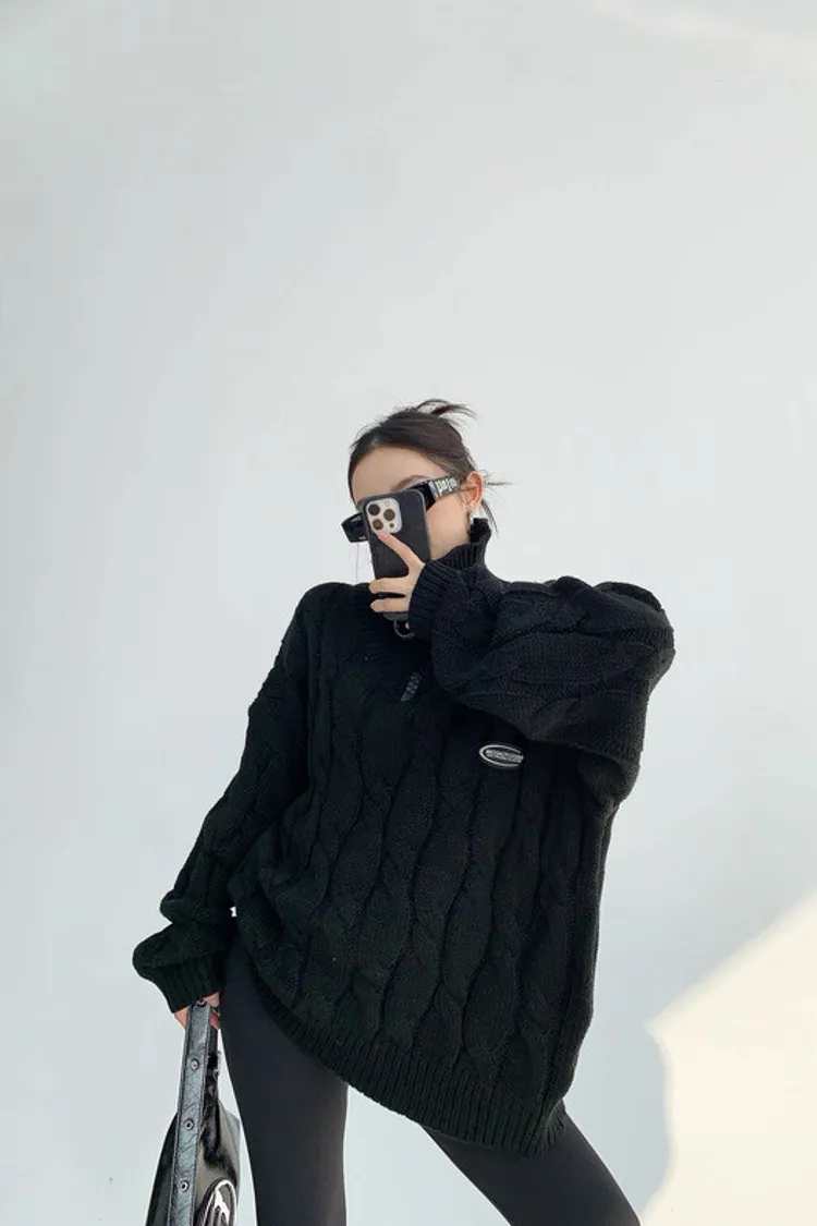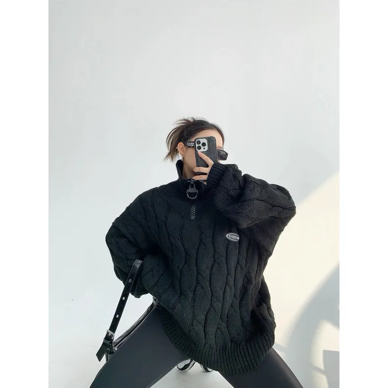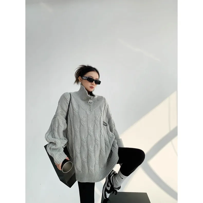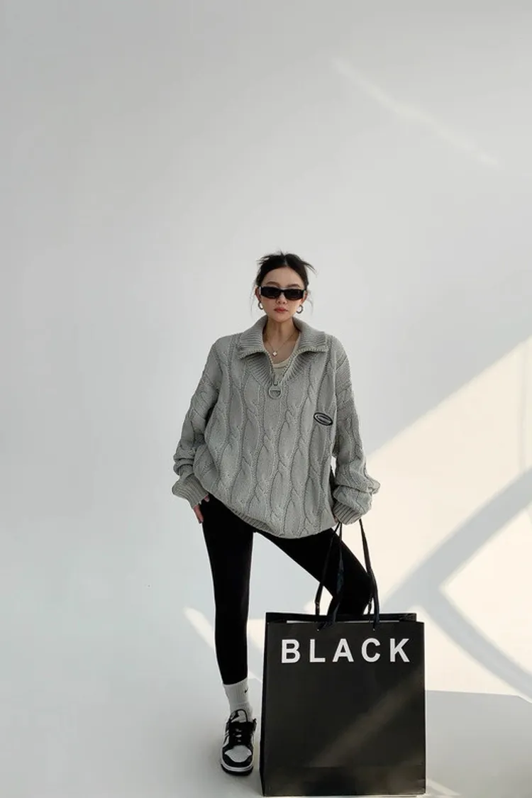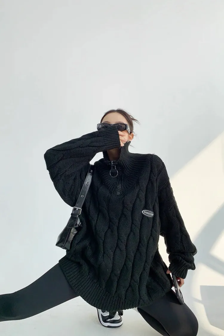 大拉鍊麻花針織上衣