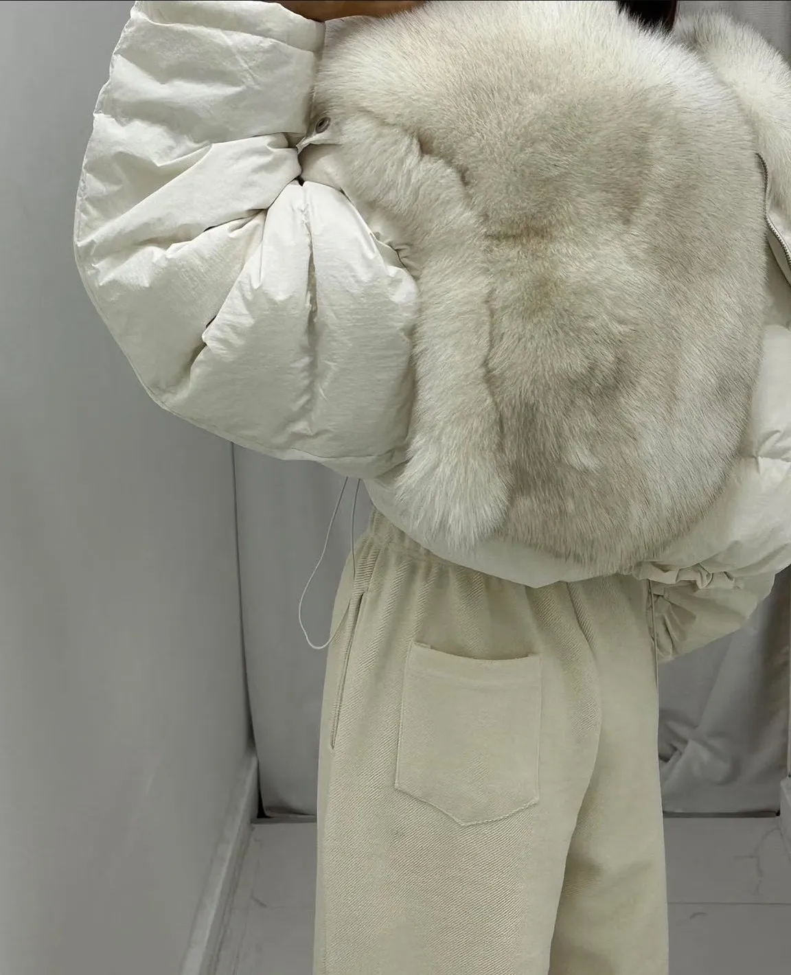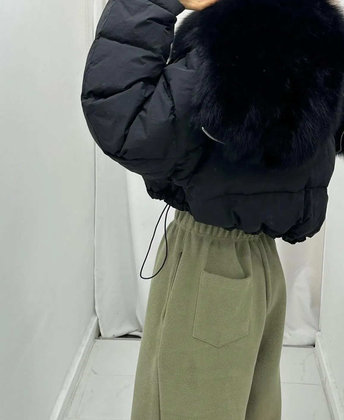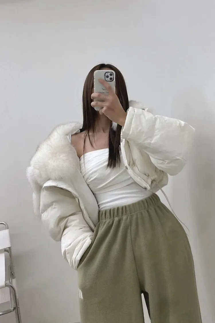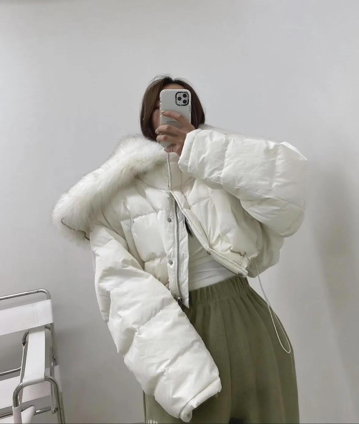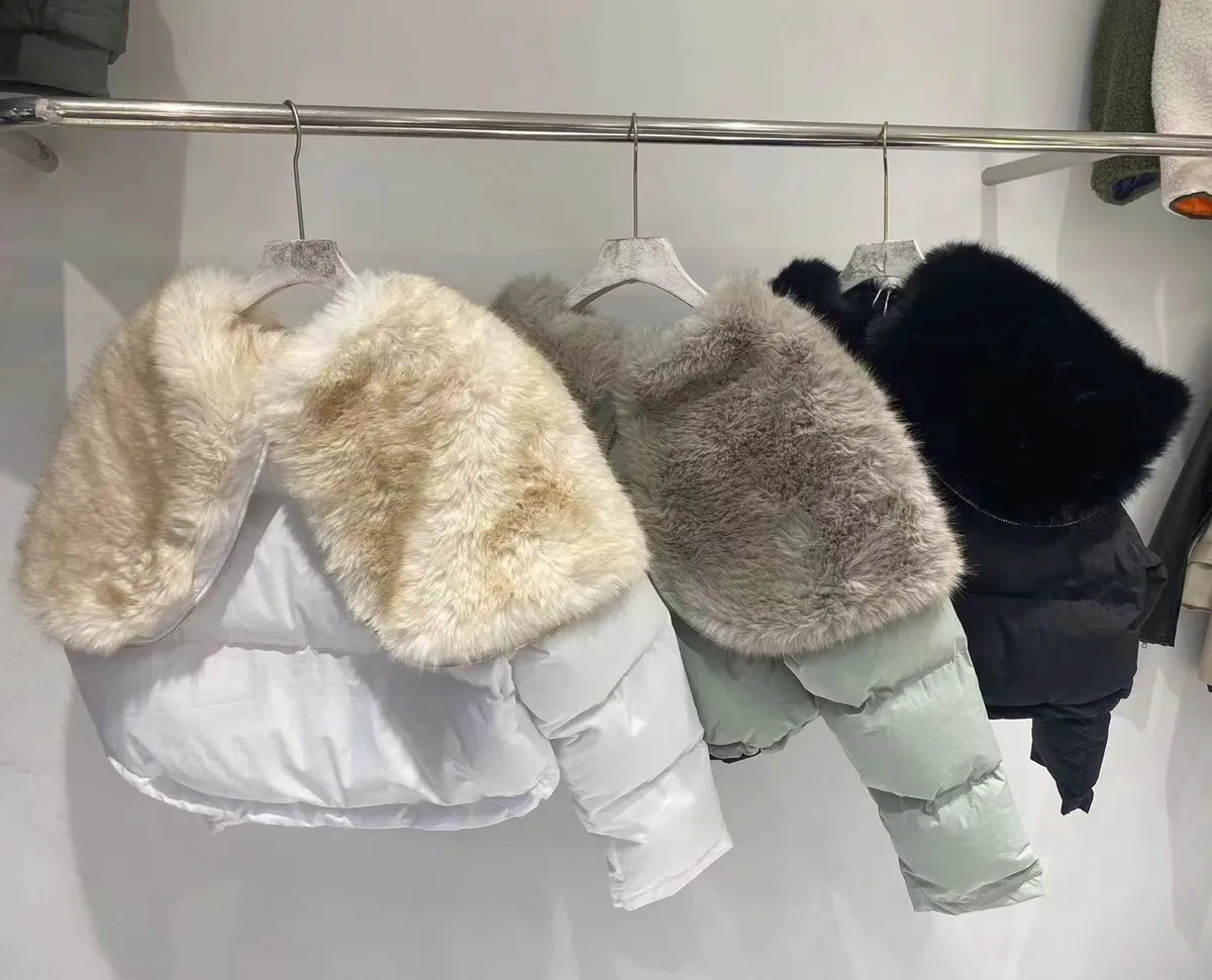 大毛領下抽繩鋪棉外套