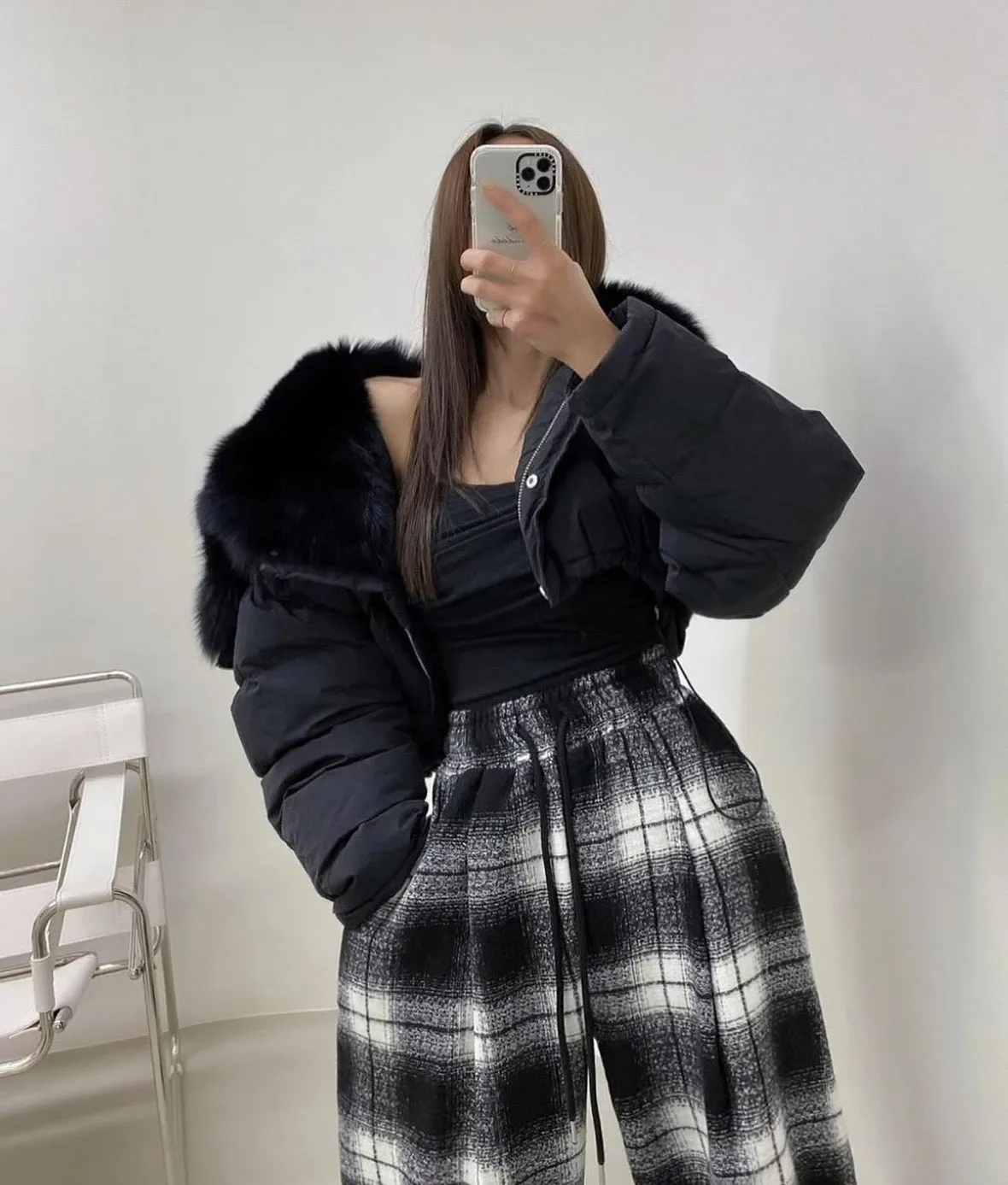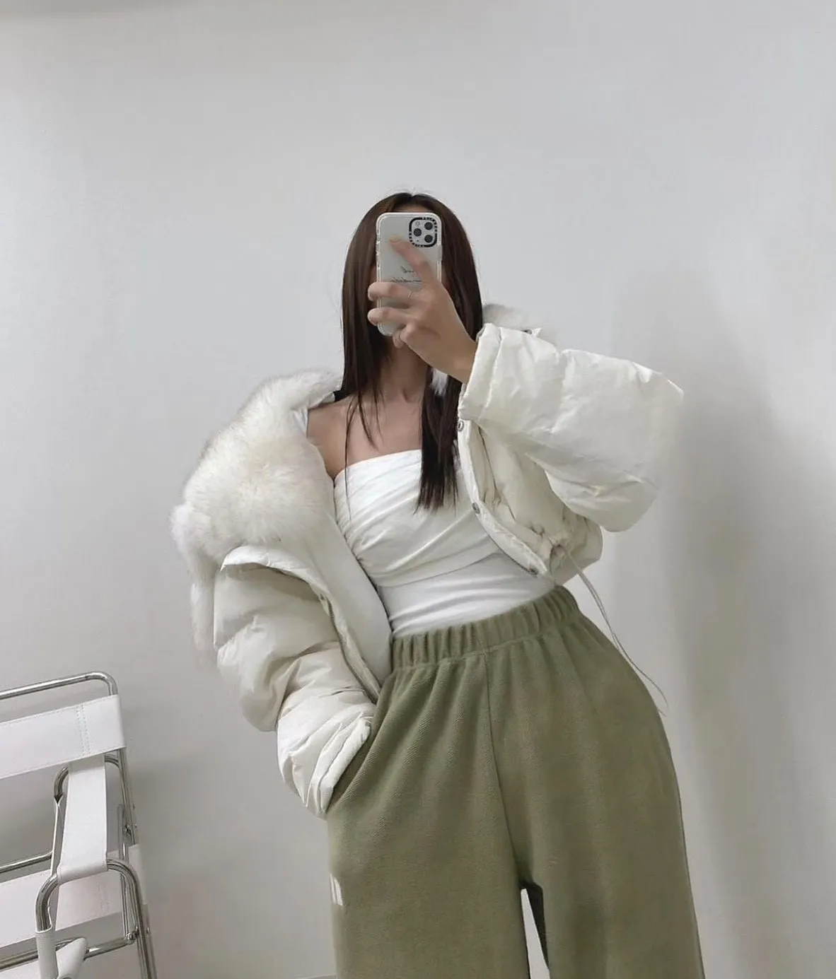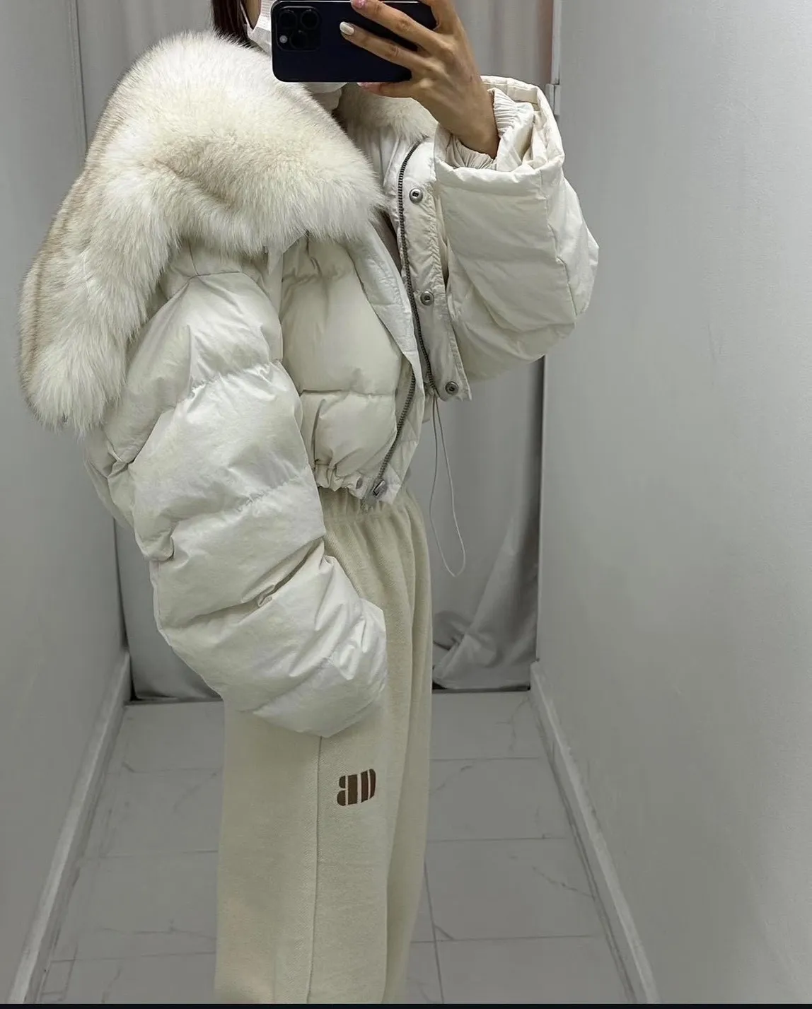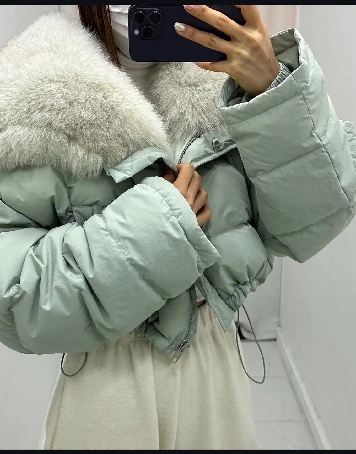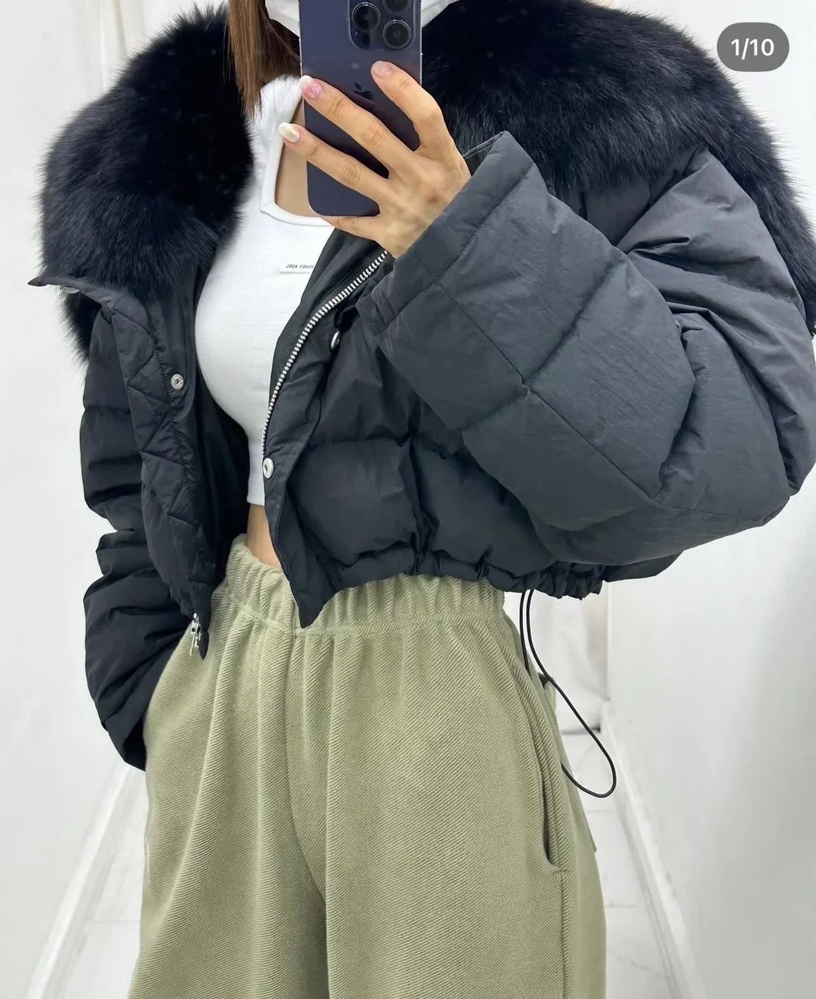 大毛領下抽繩鋪棉外套
