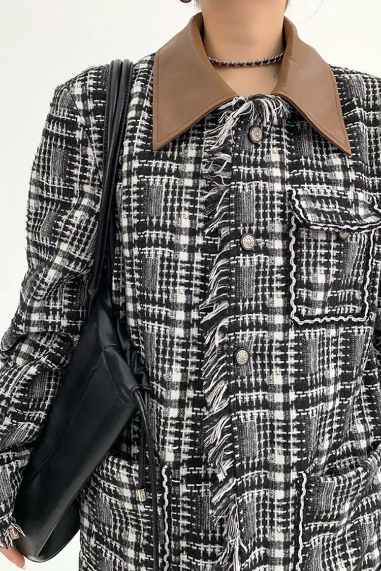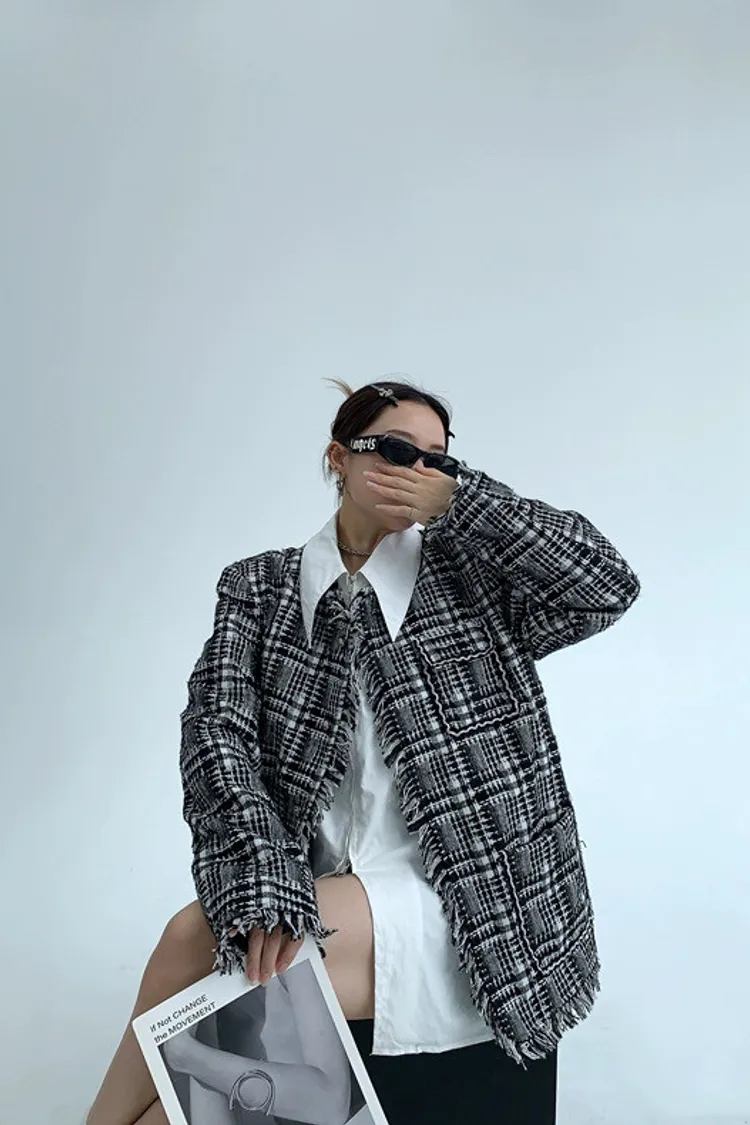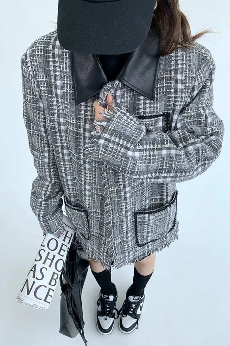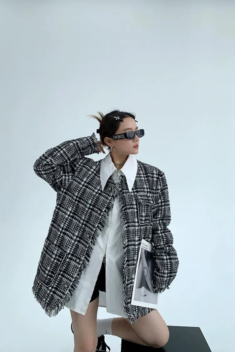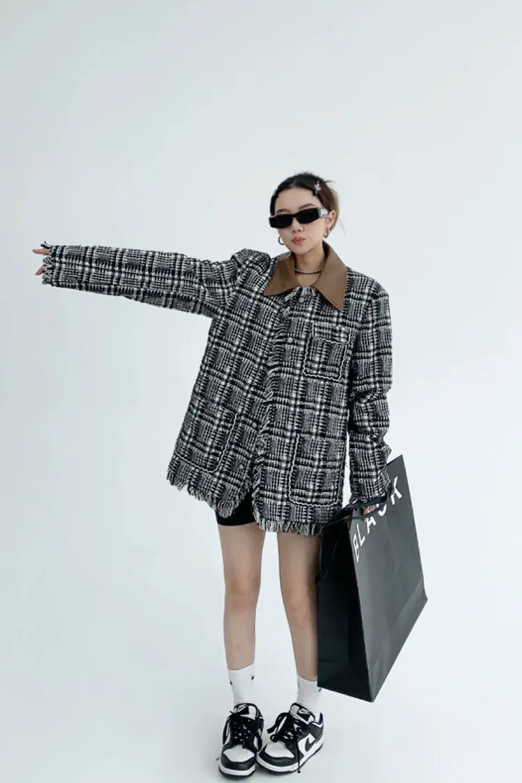 流蘇格紋外套(領子可拆)