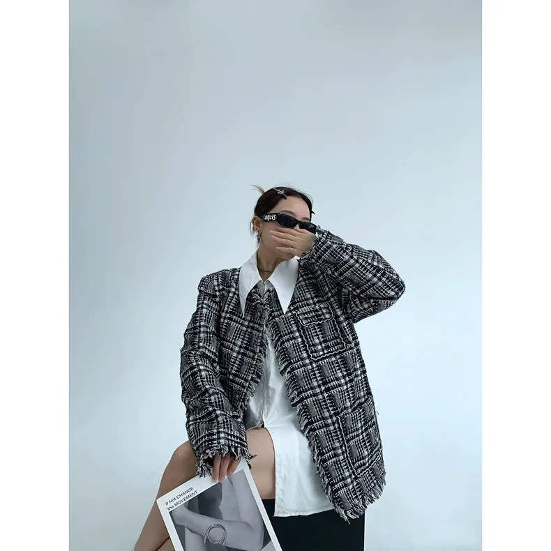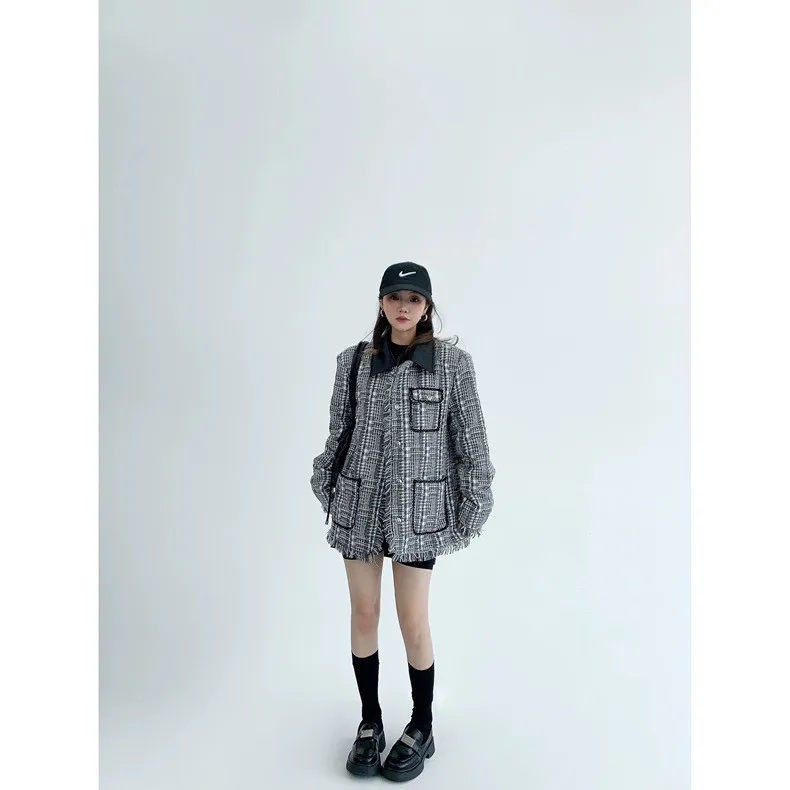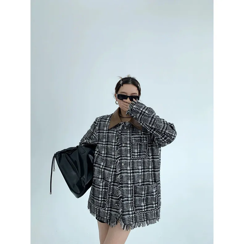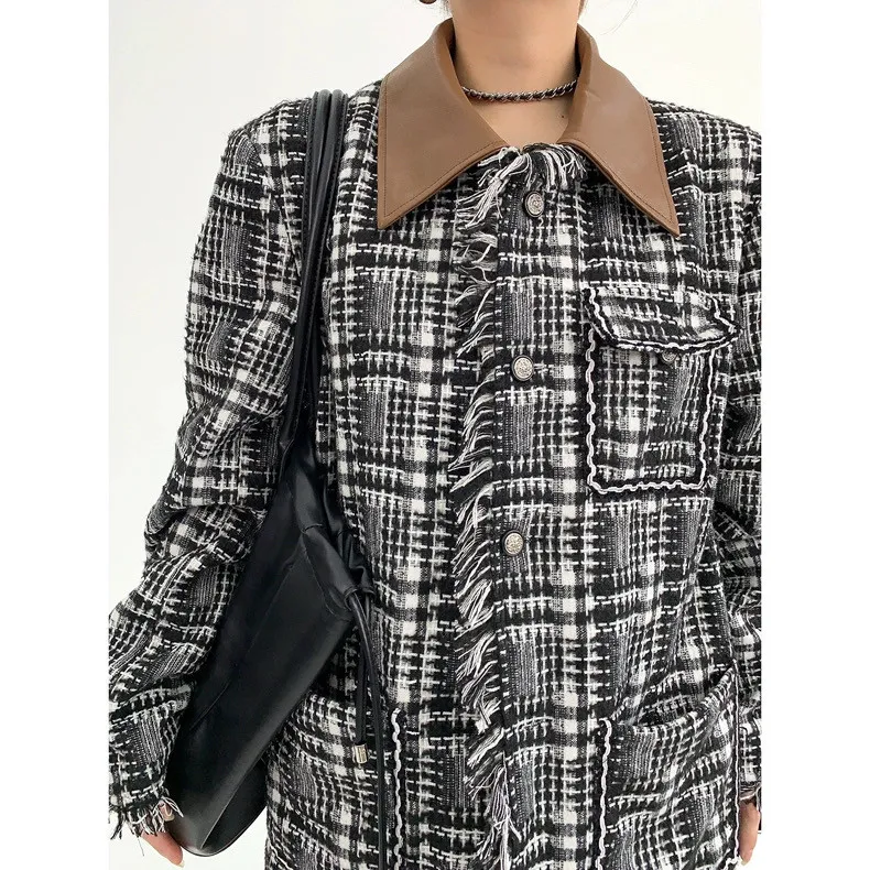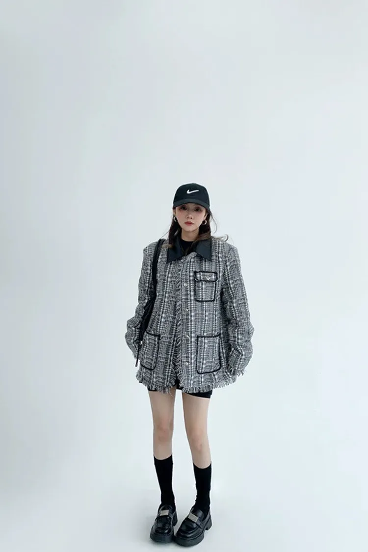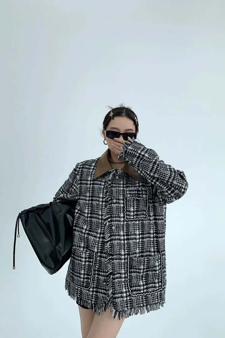 流蘇格紋外套(領子可拆)