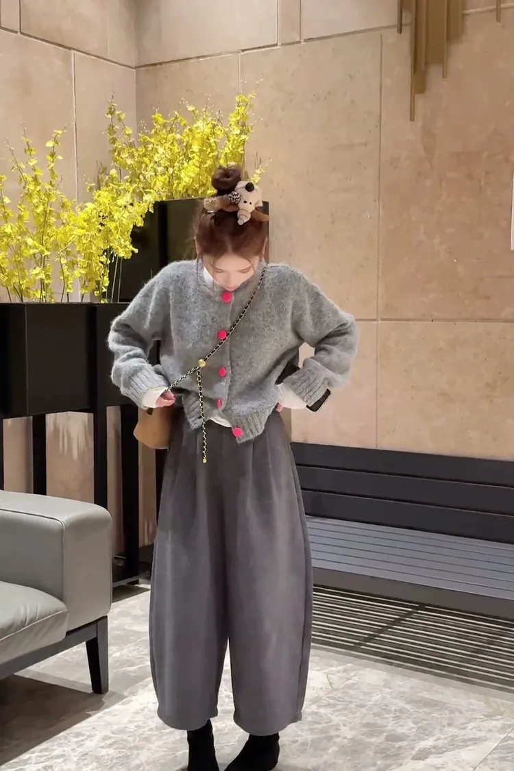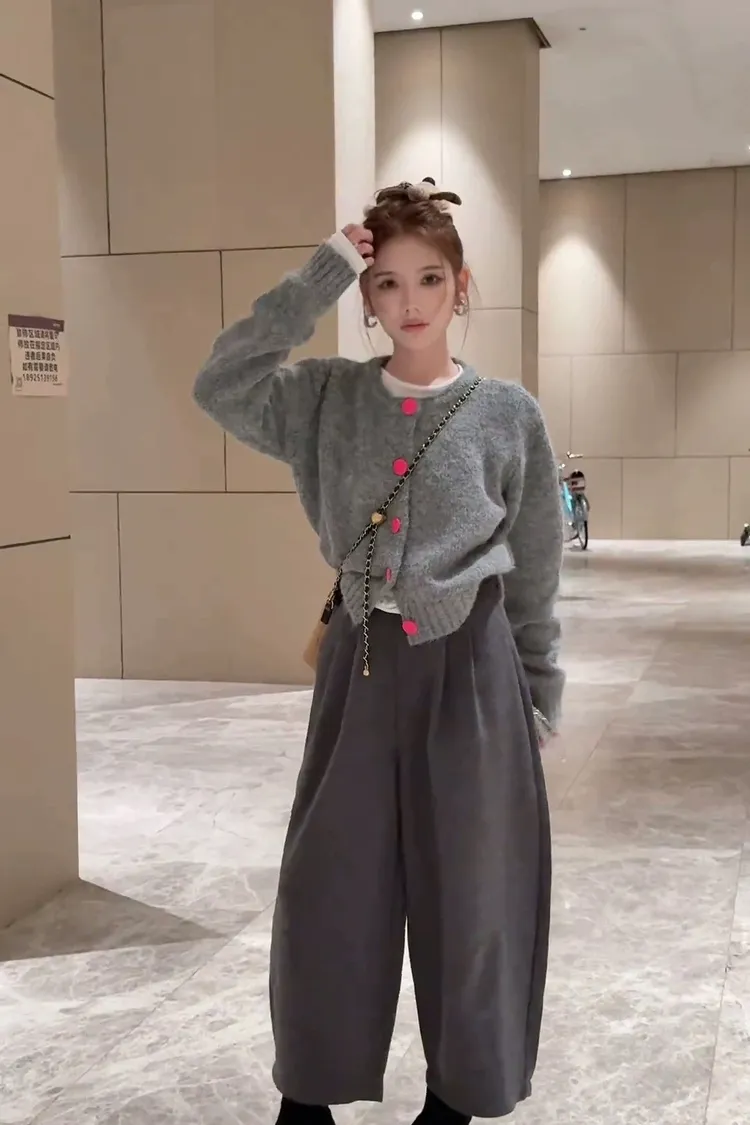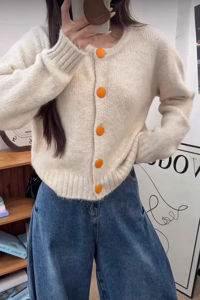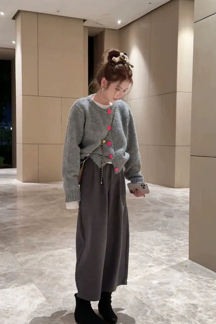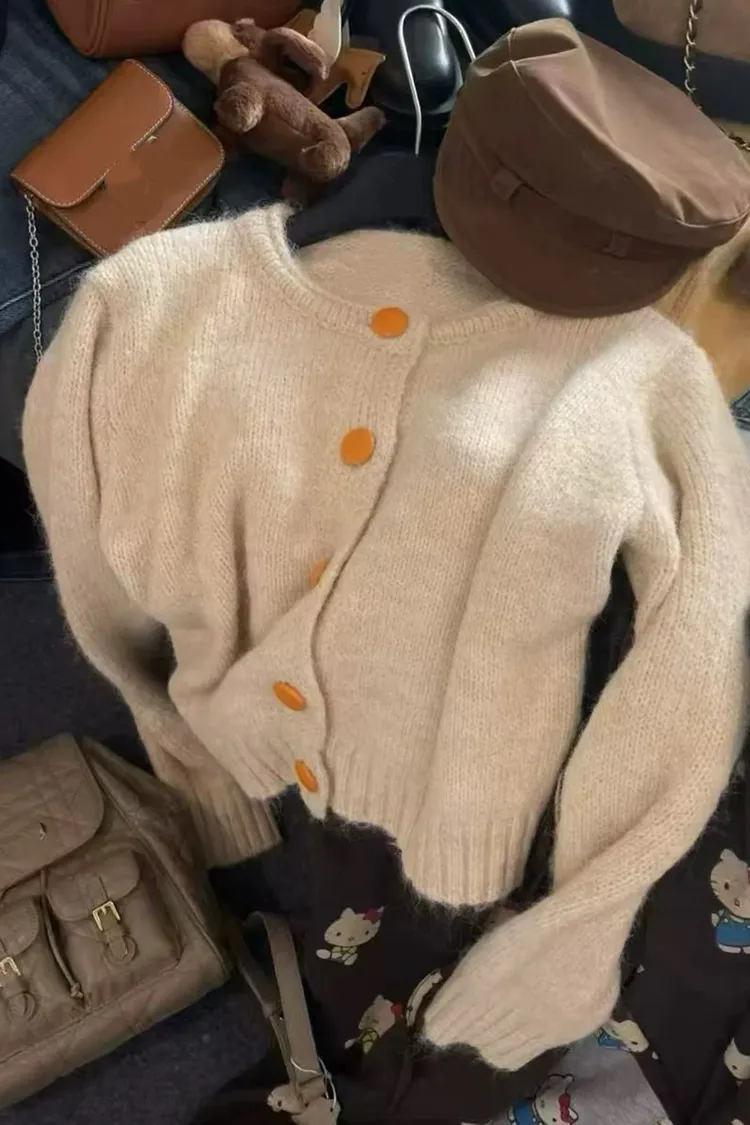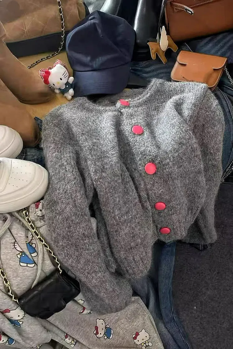 撞色釦毛衣
