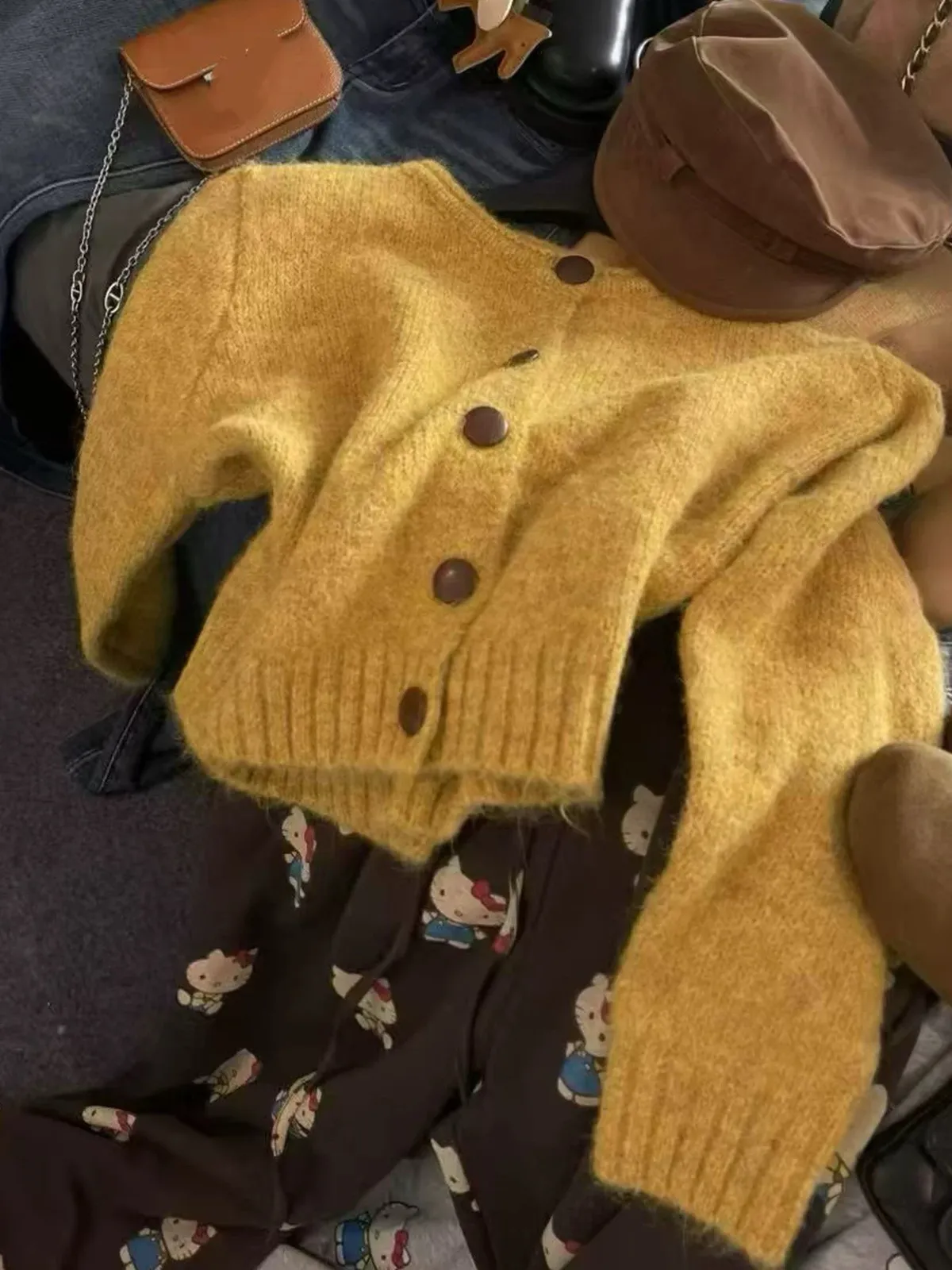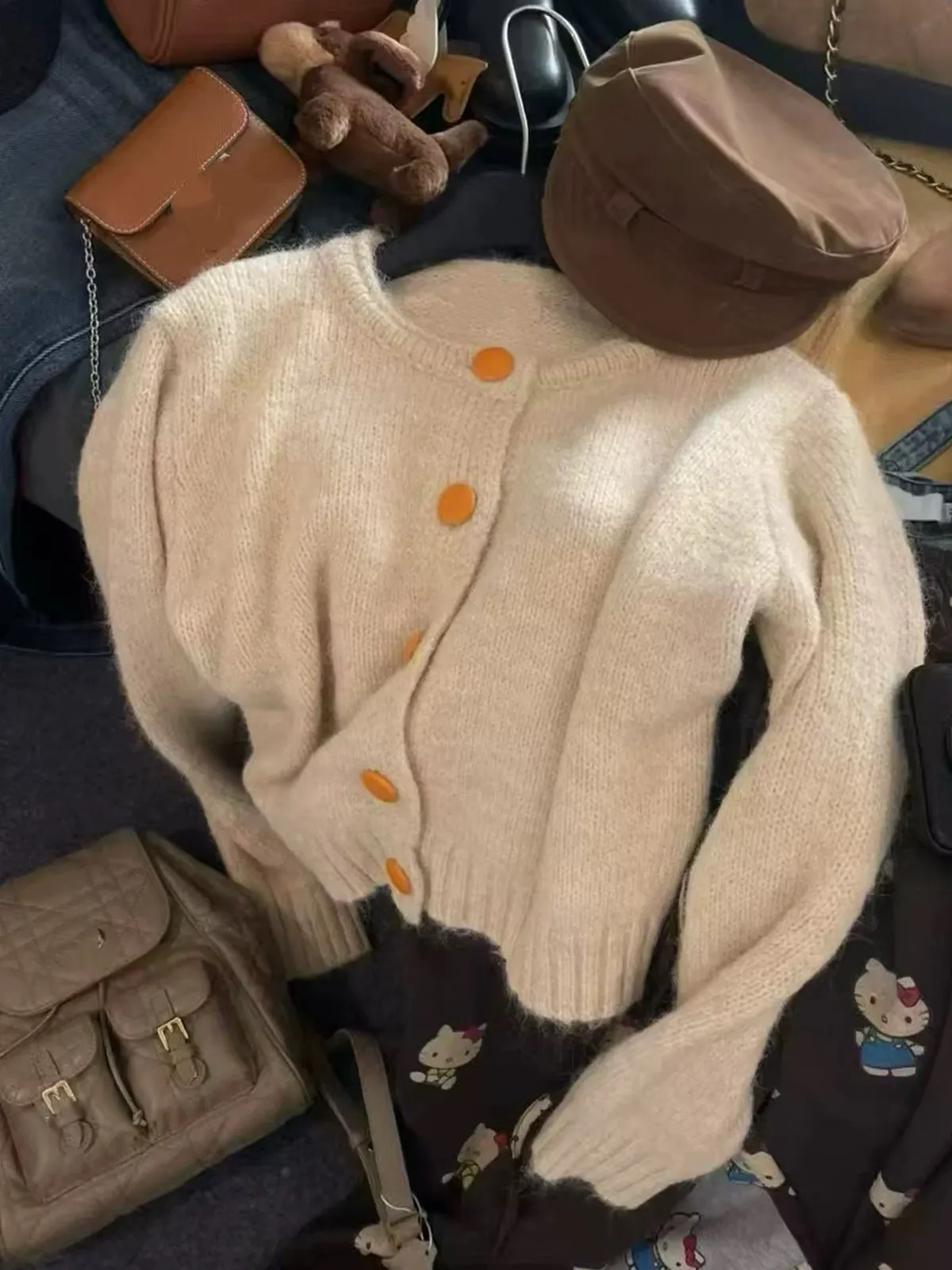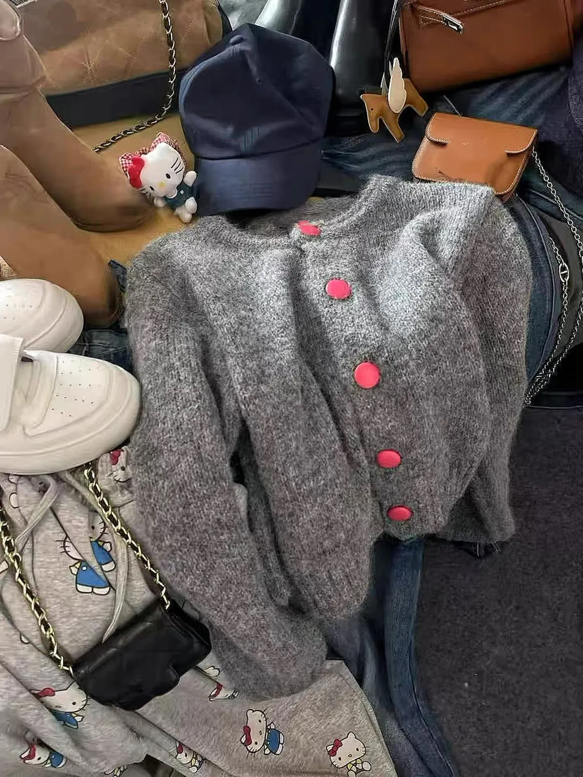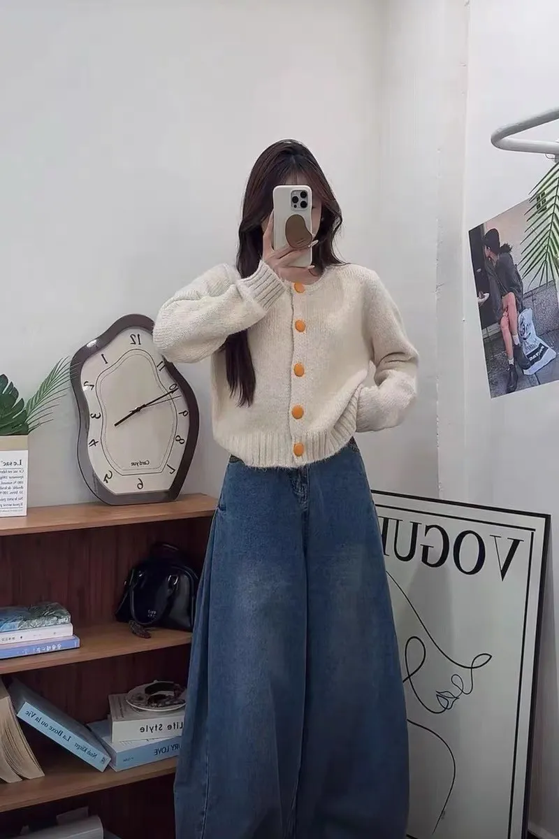 撞色釦毛衣