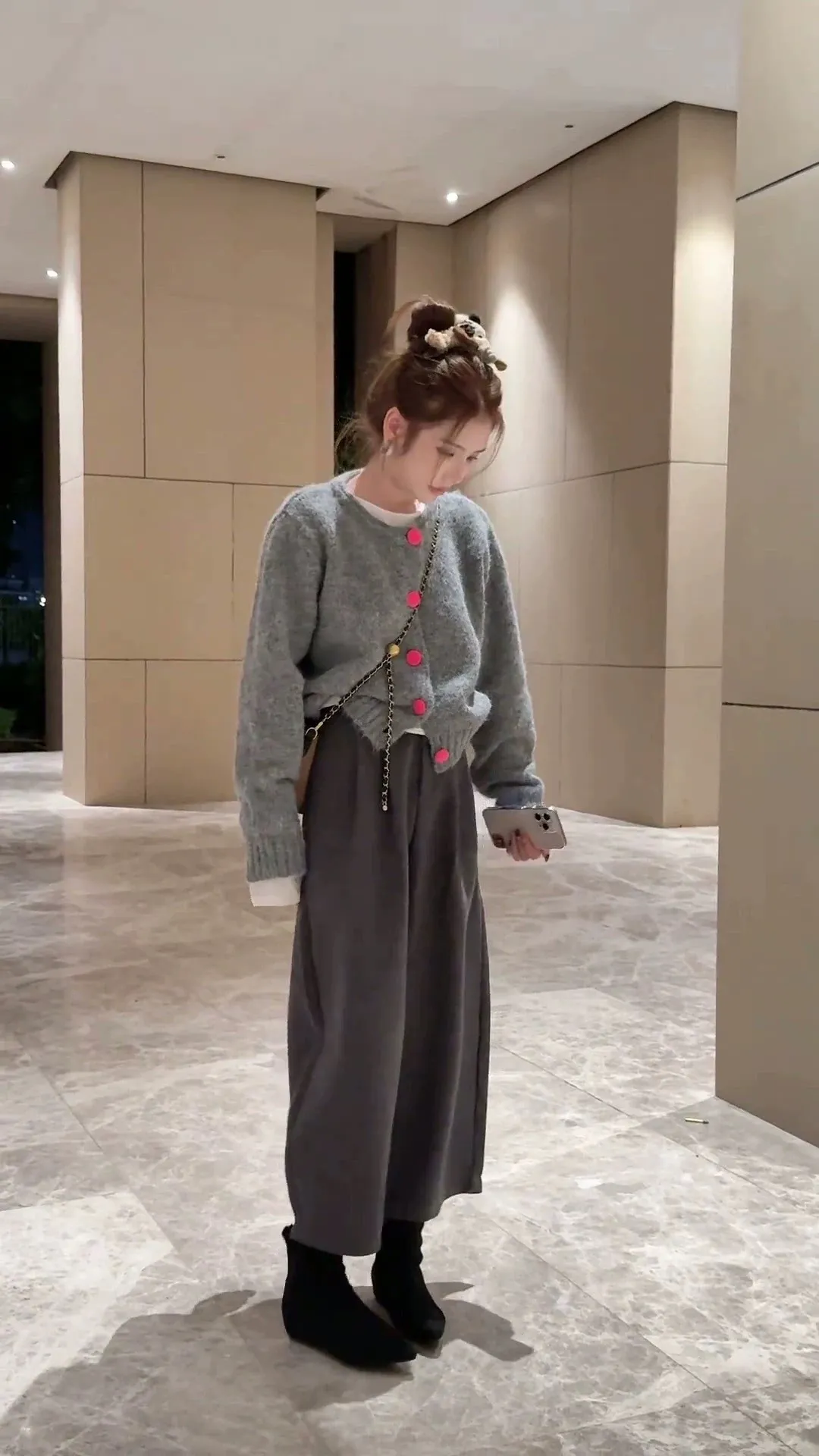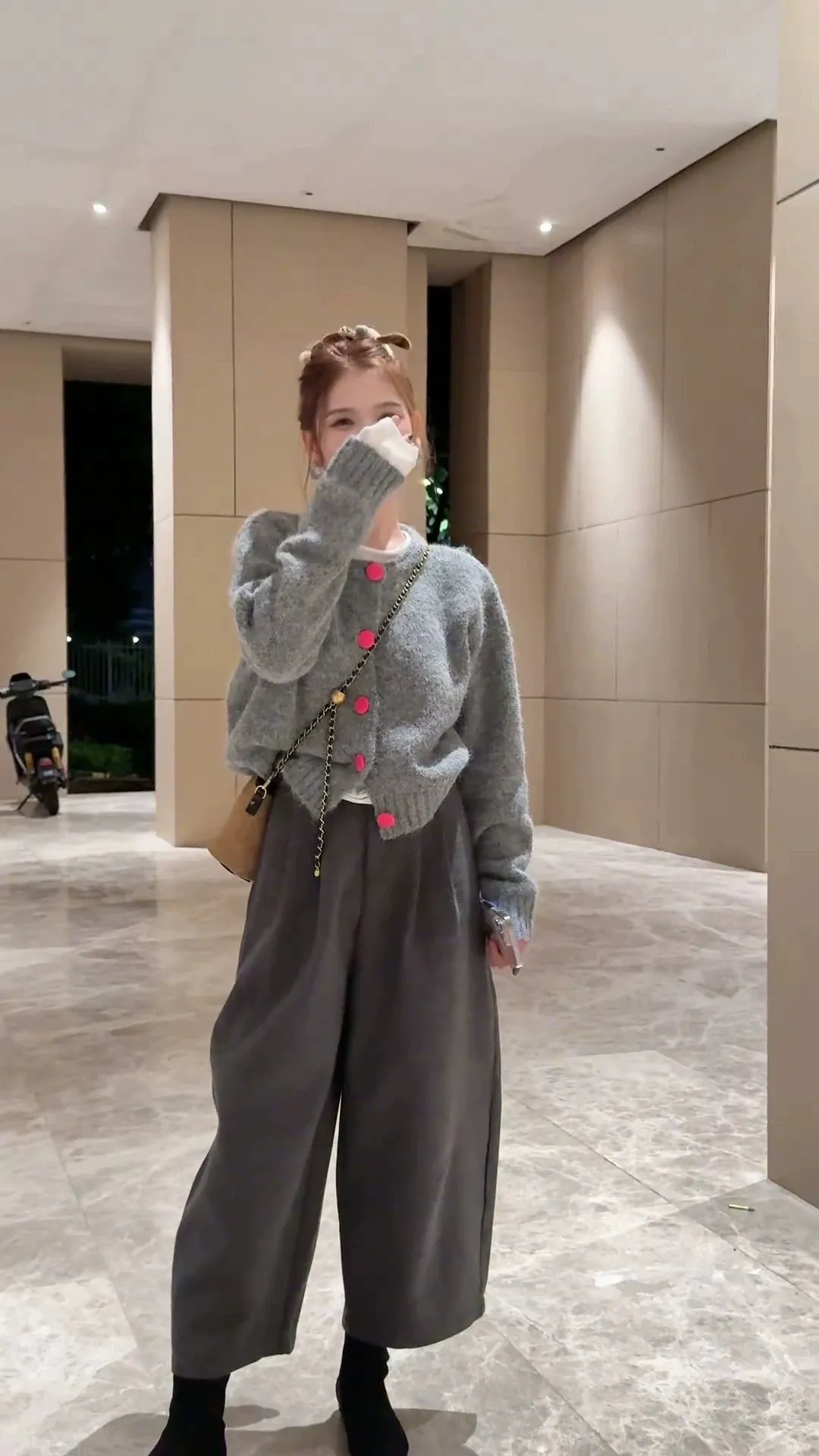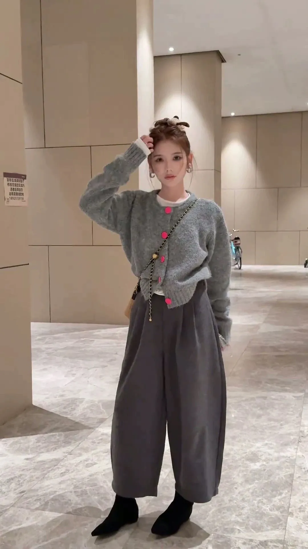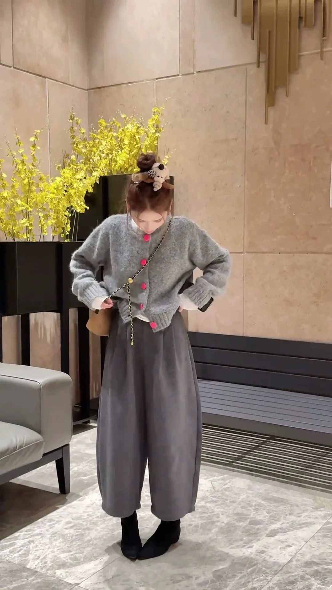 撞色釦毛衣