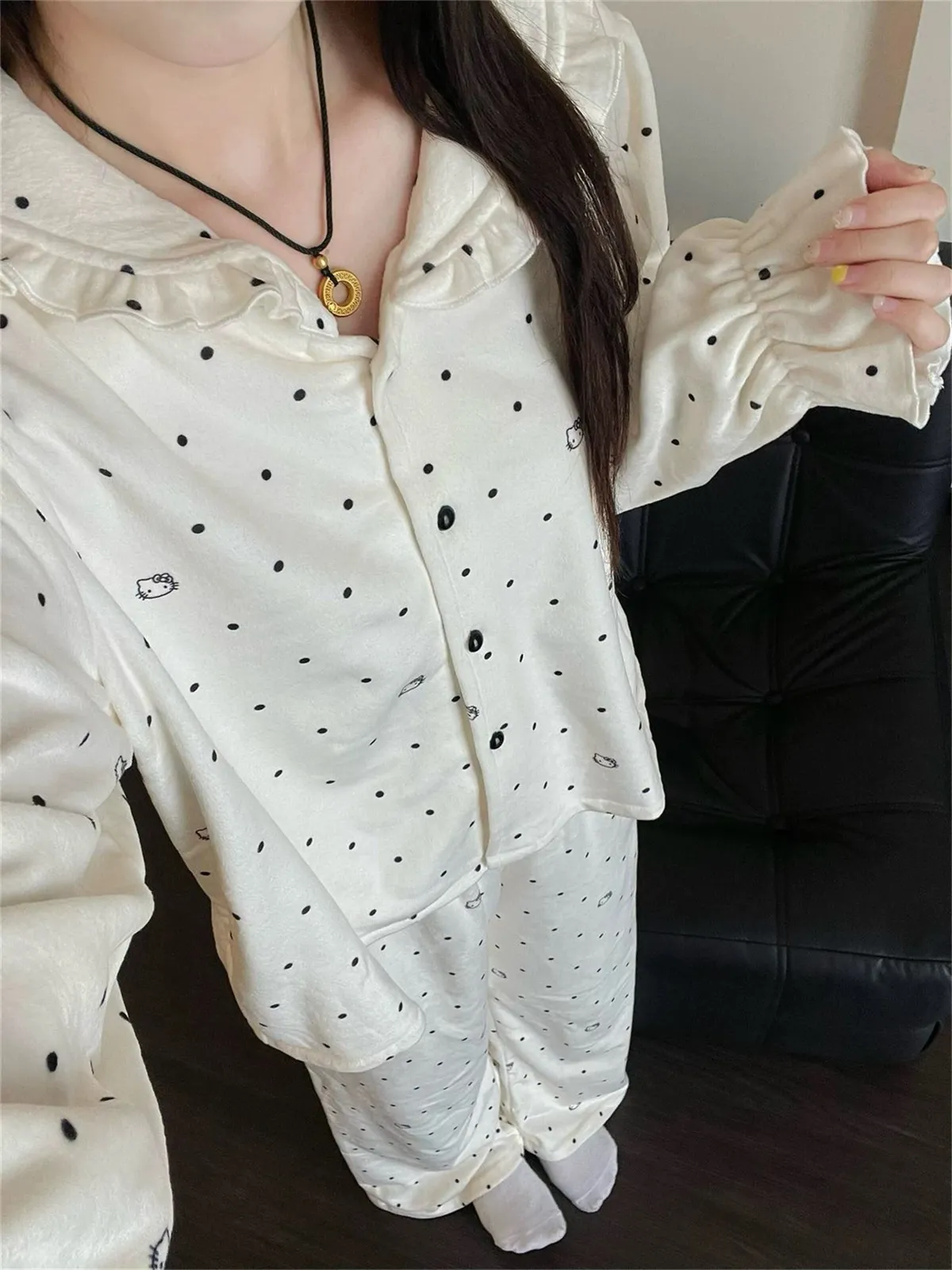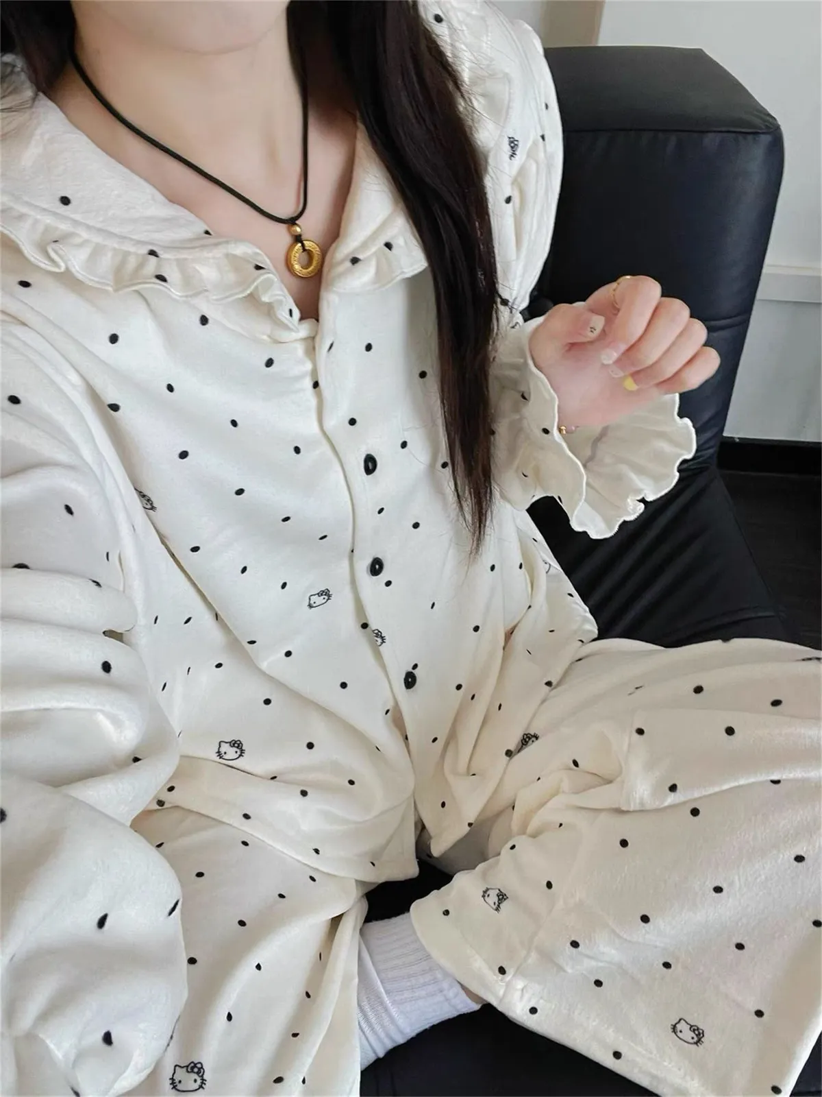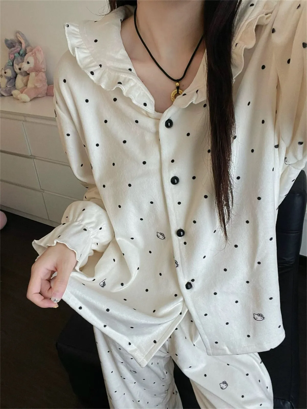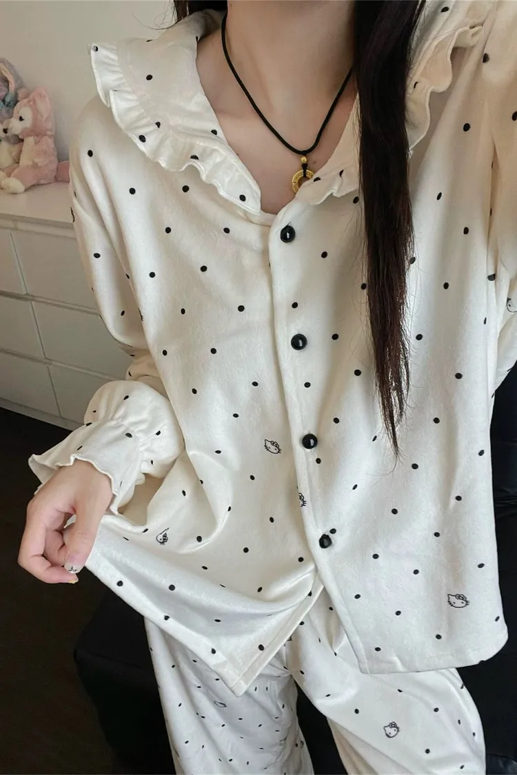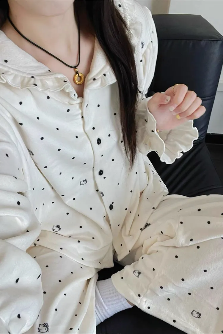 白色點點KT保暖居家服