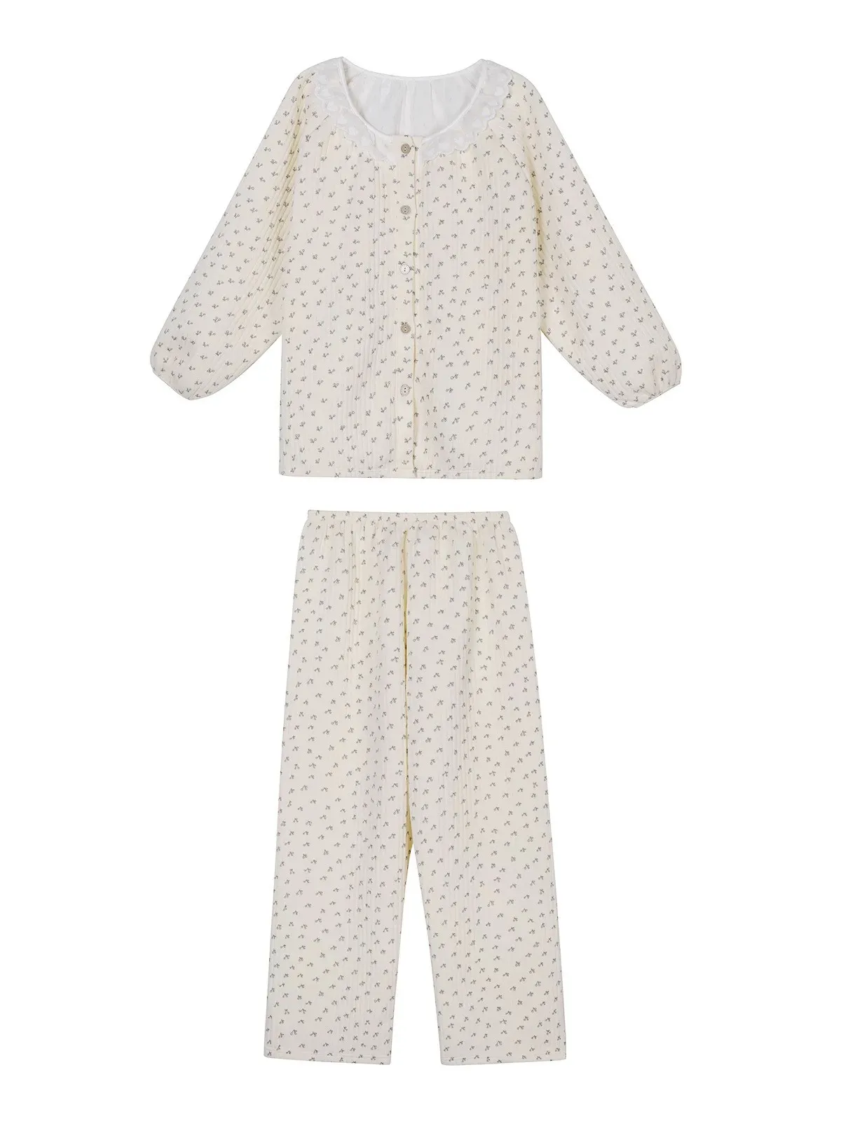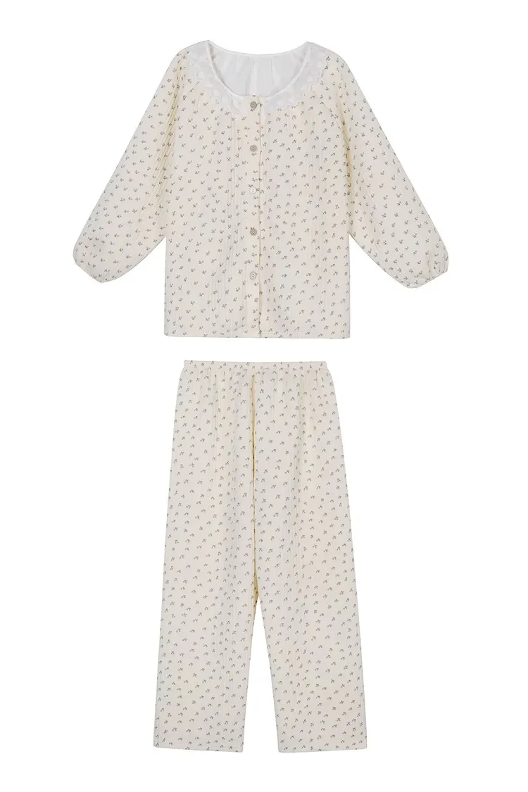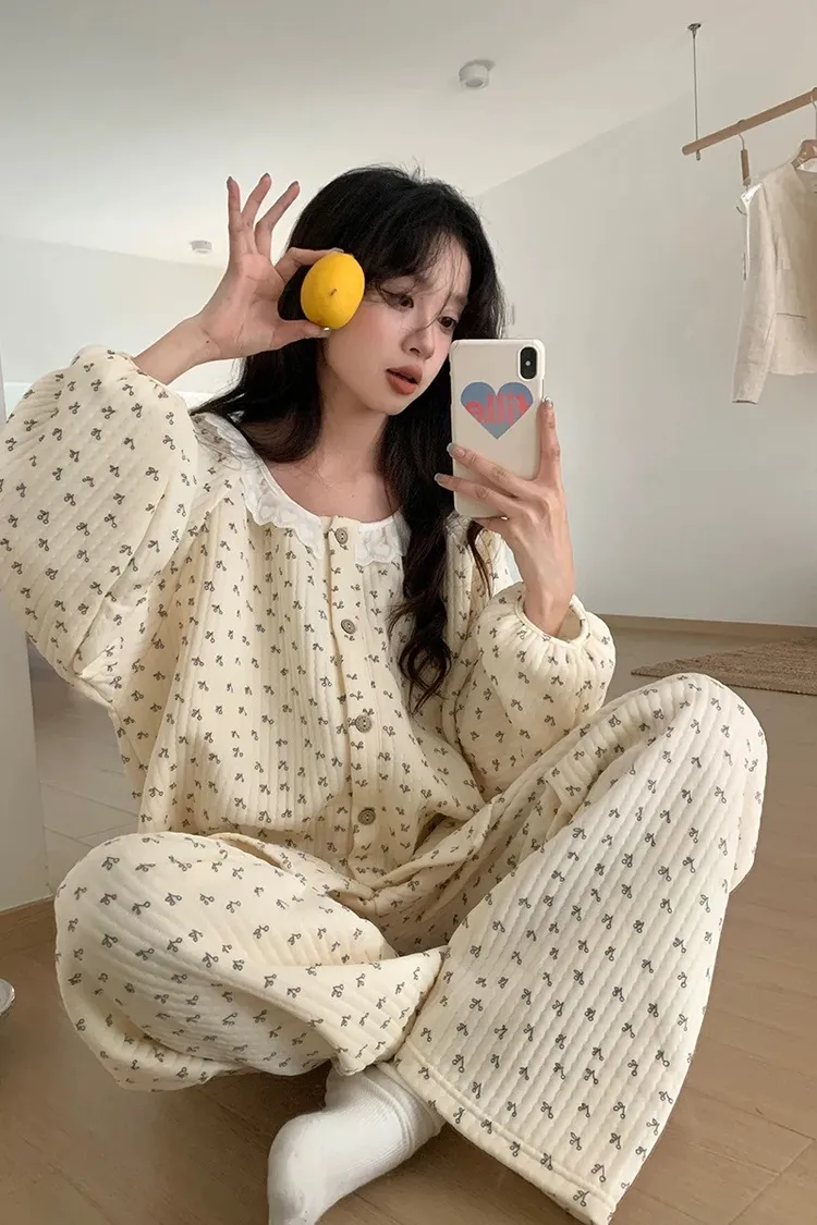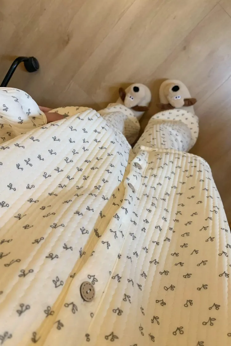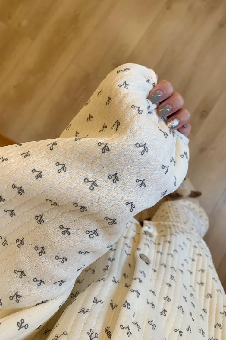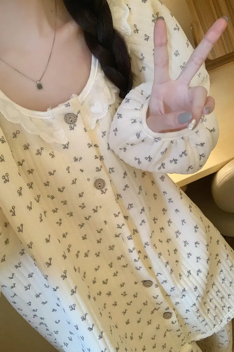 碎花櫻桃薄鋪棉睡衣
