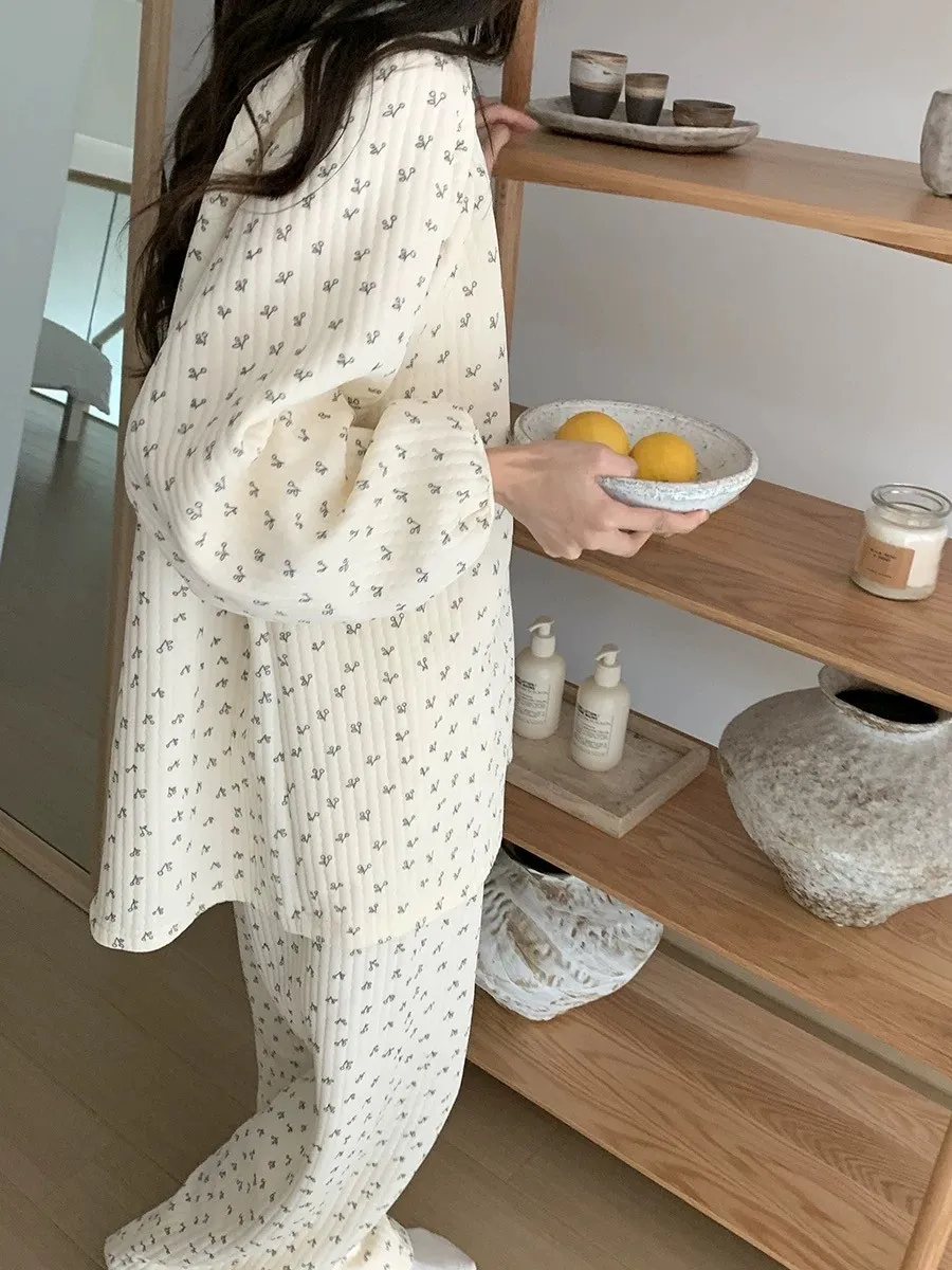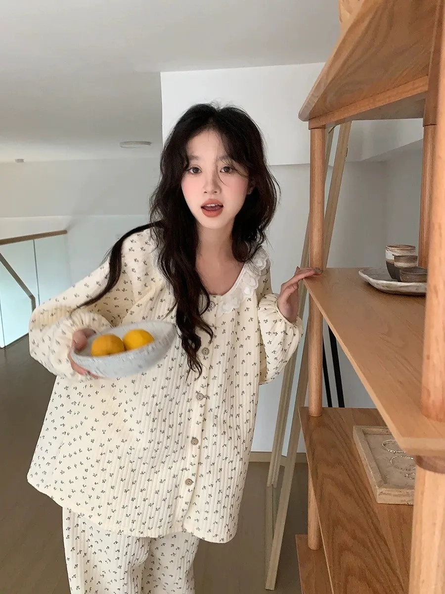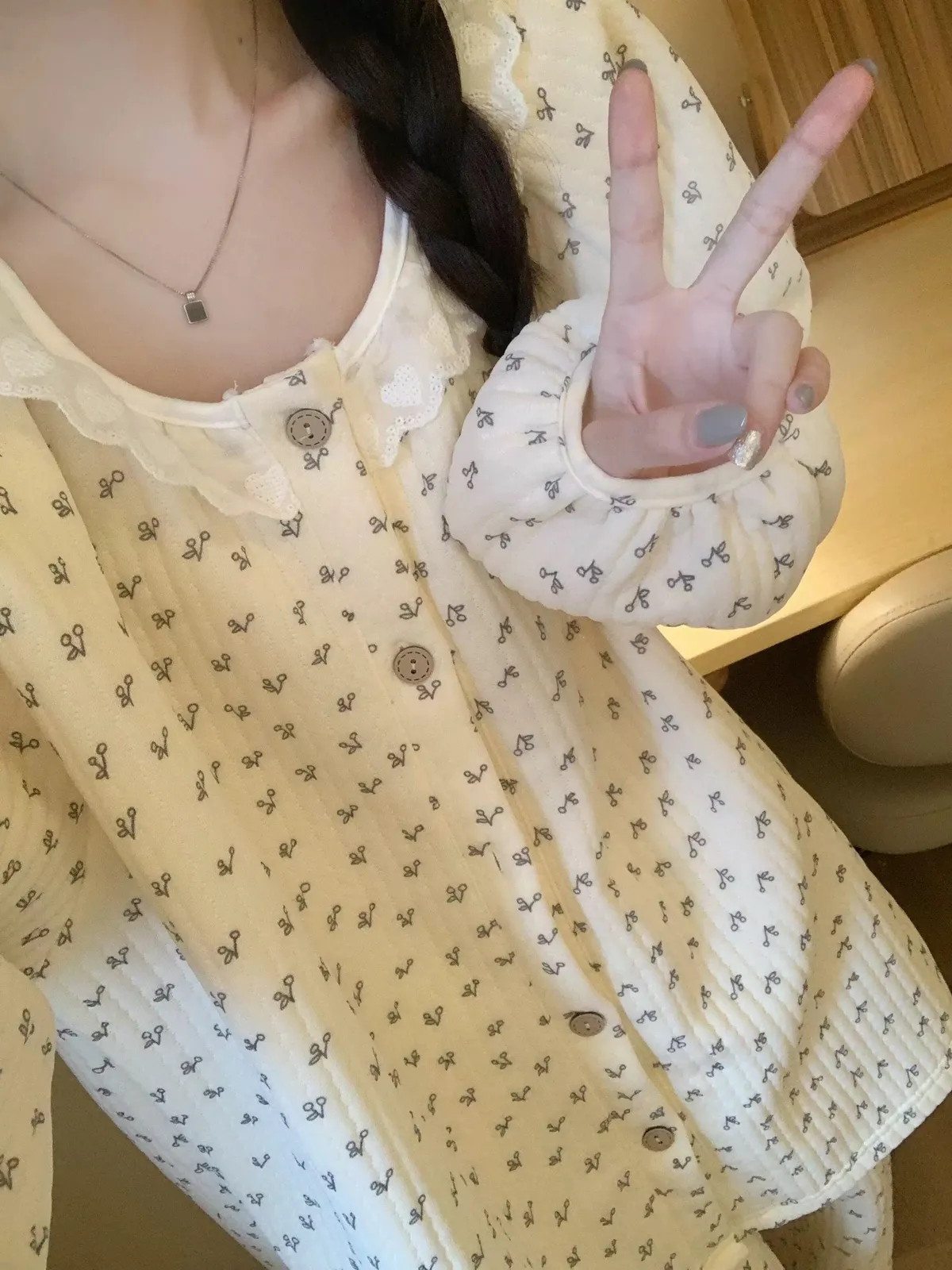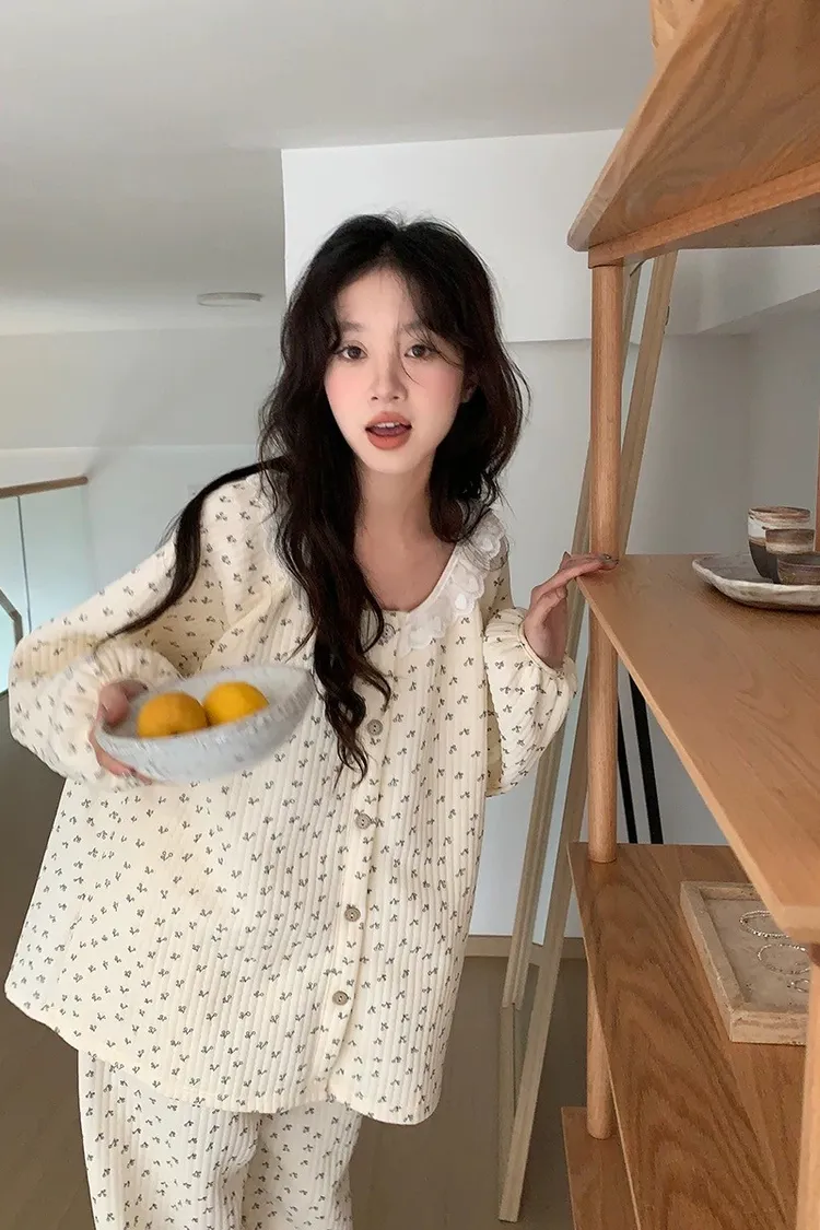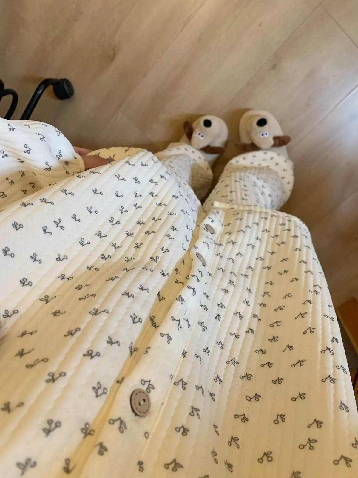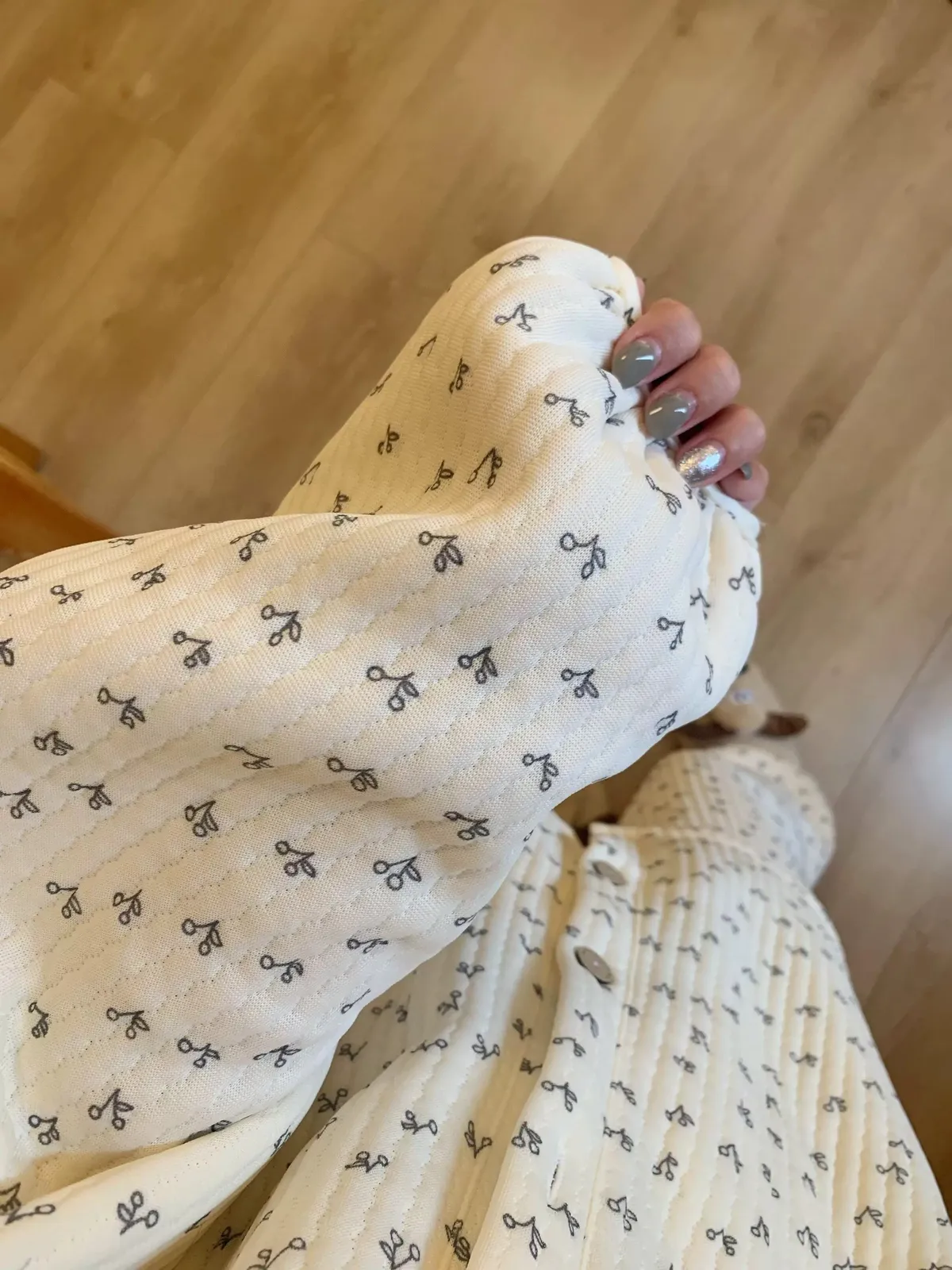 碎花櫻桃薄鋪棉睡衣