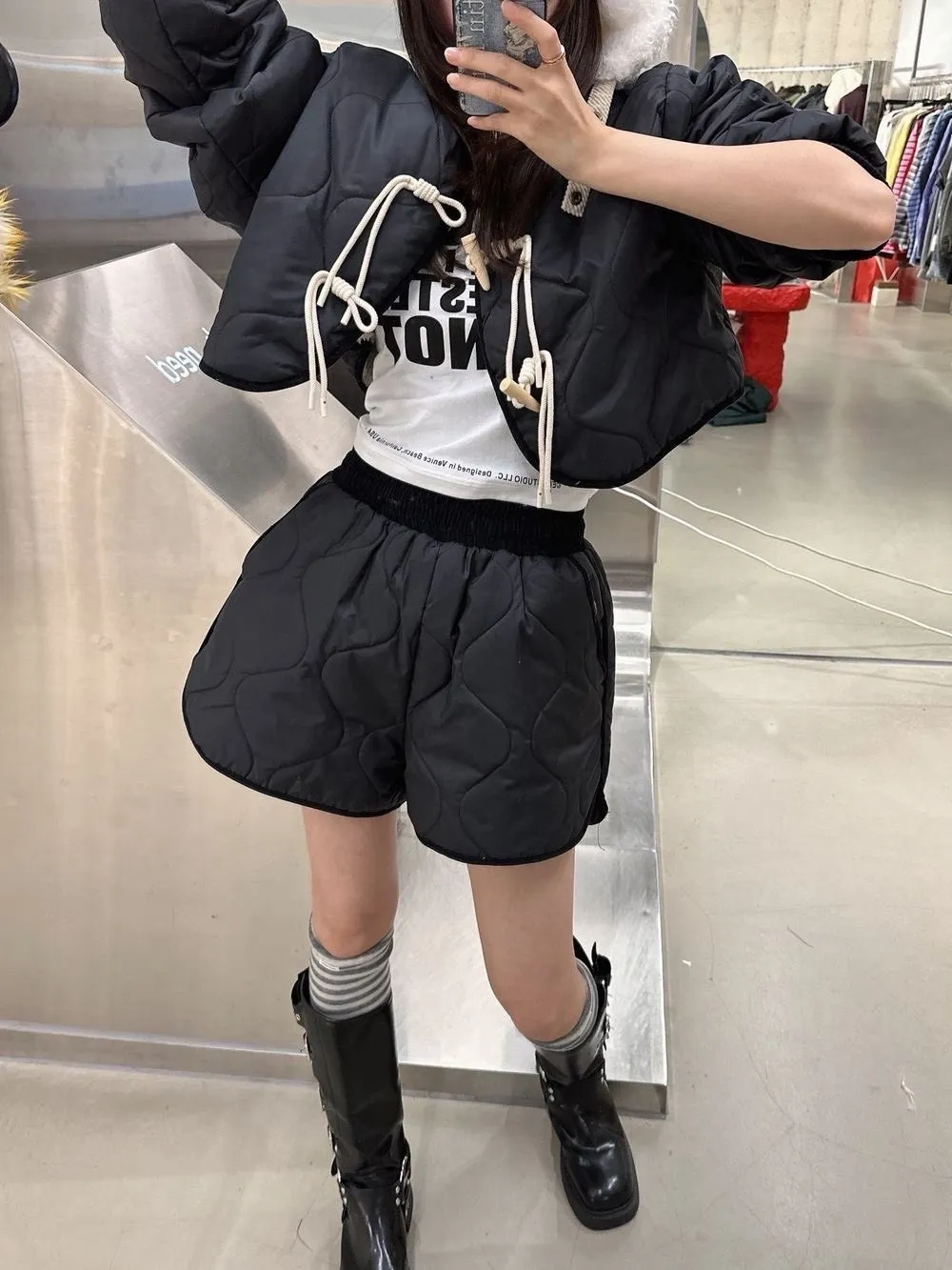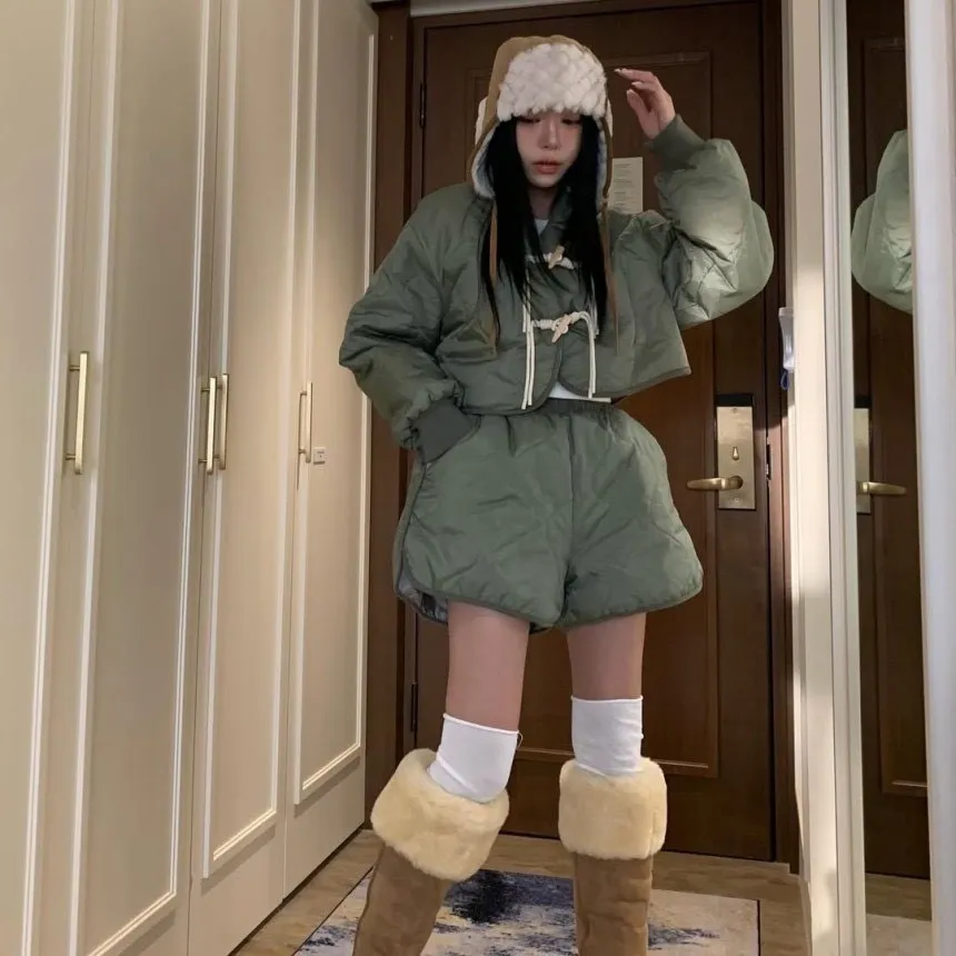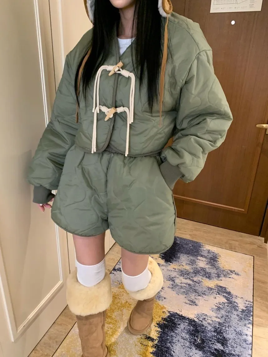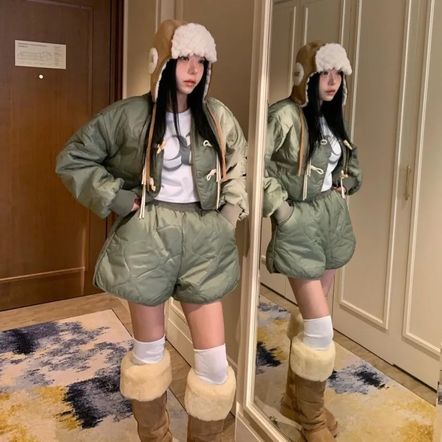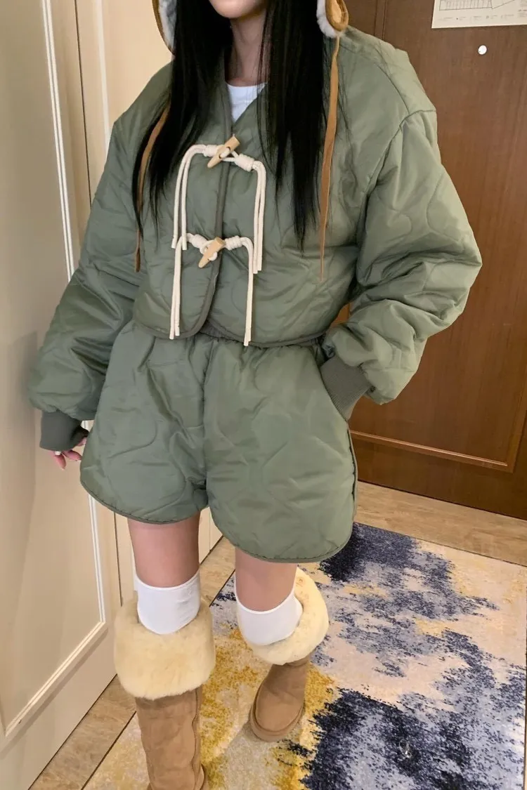 菱格紋外套短褲內刷毛套裝