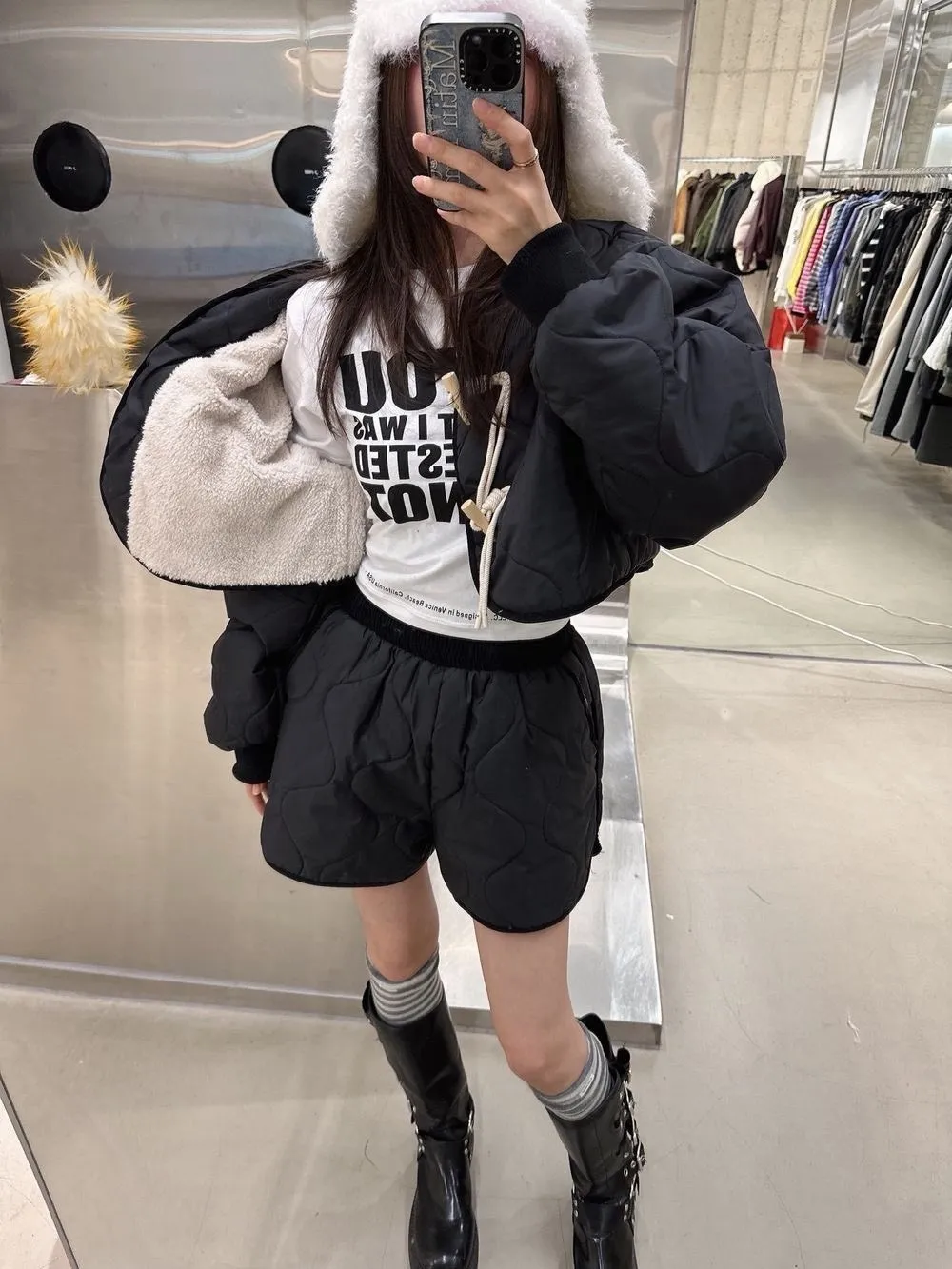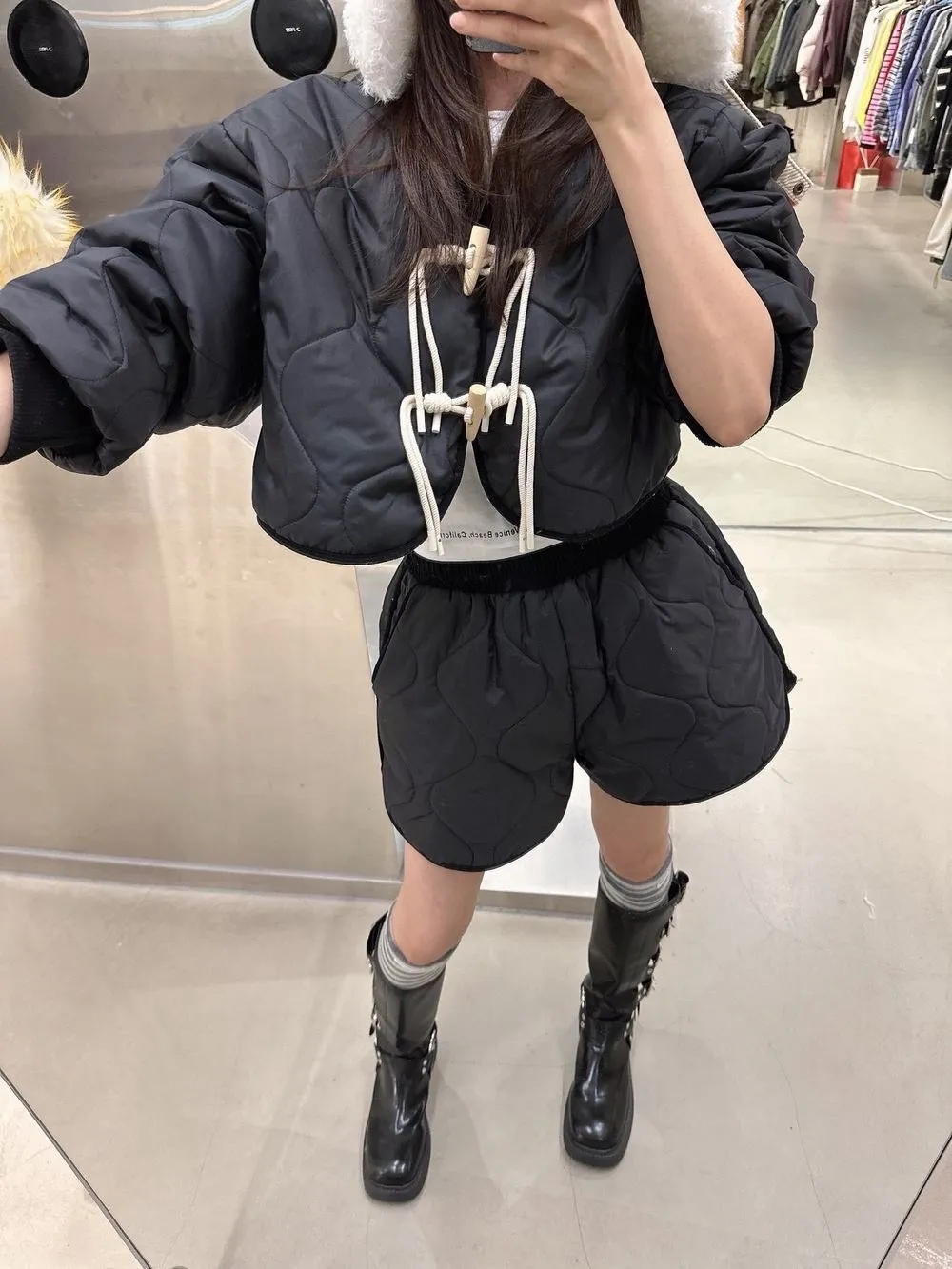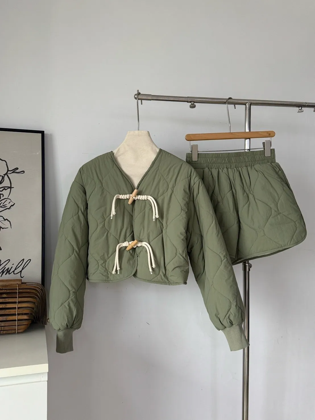 菱格紋外套短褲內刷毛套裝