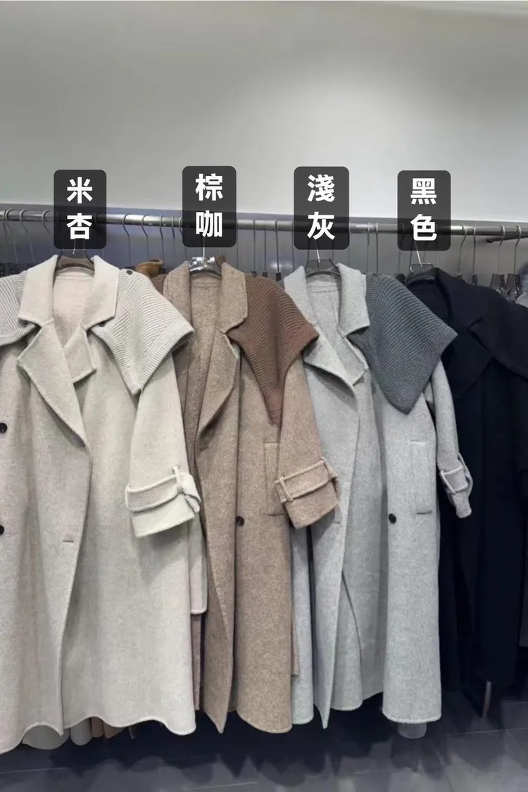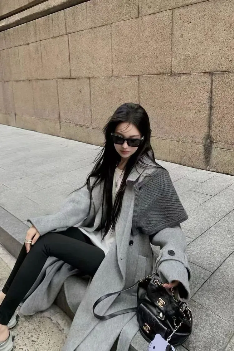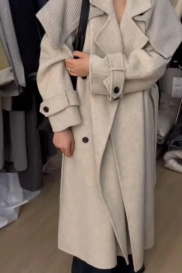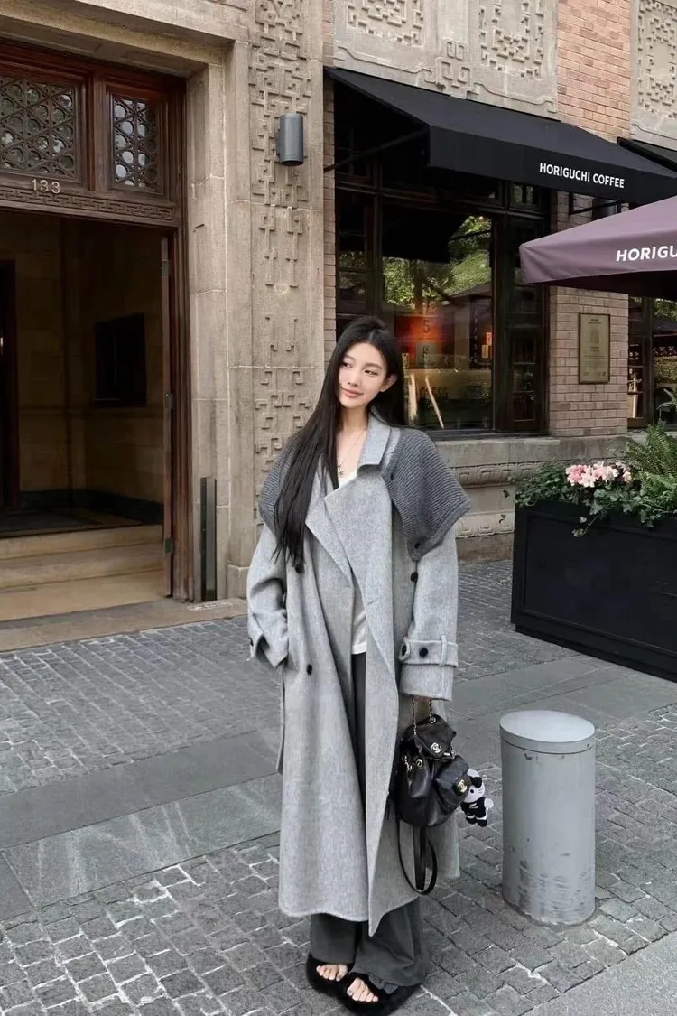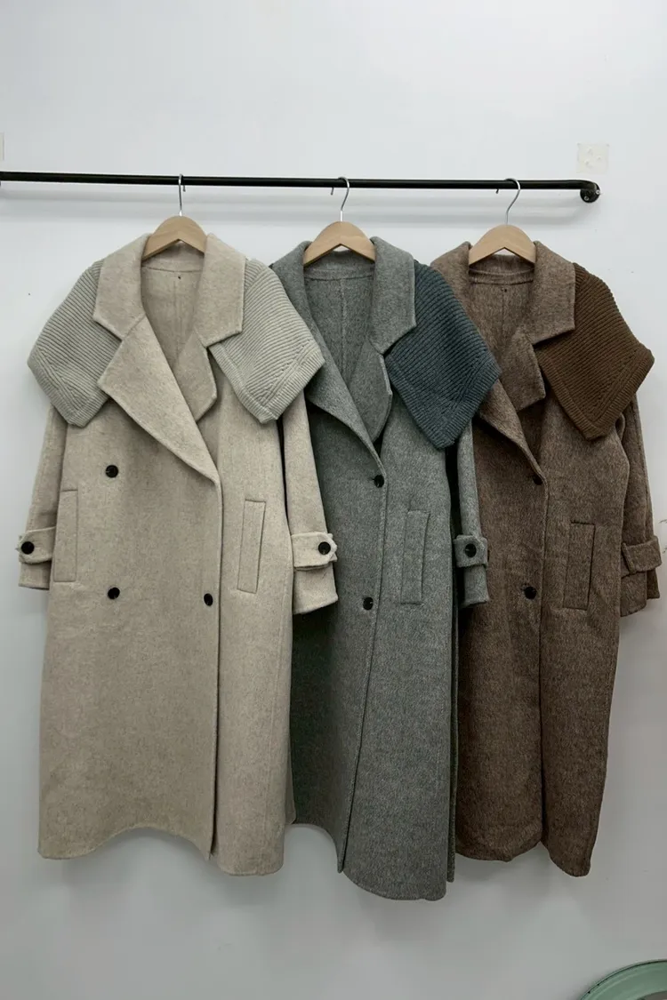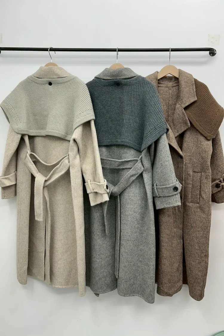 附披肩翻領羊毛長版外套
