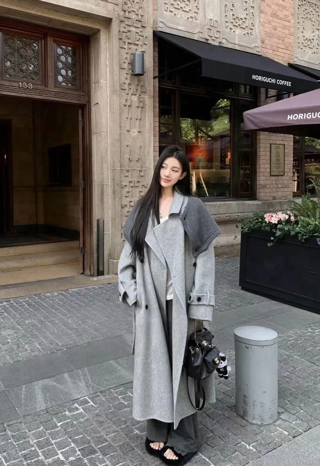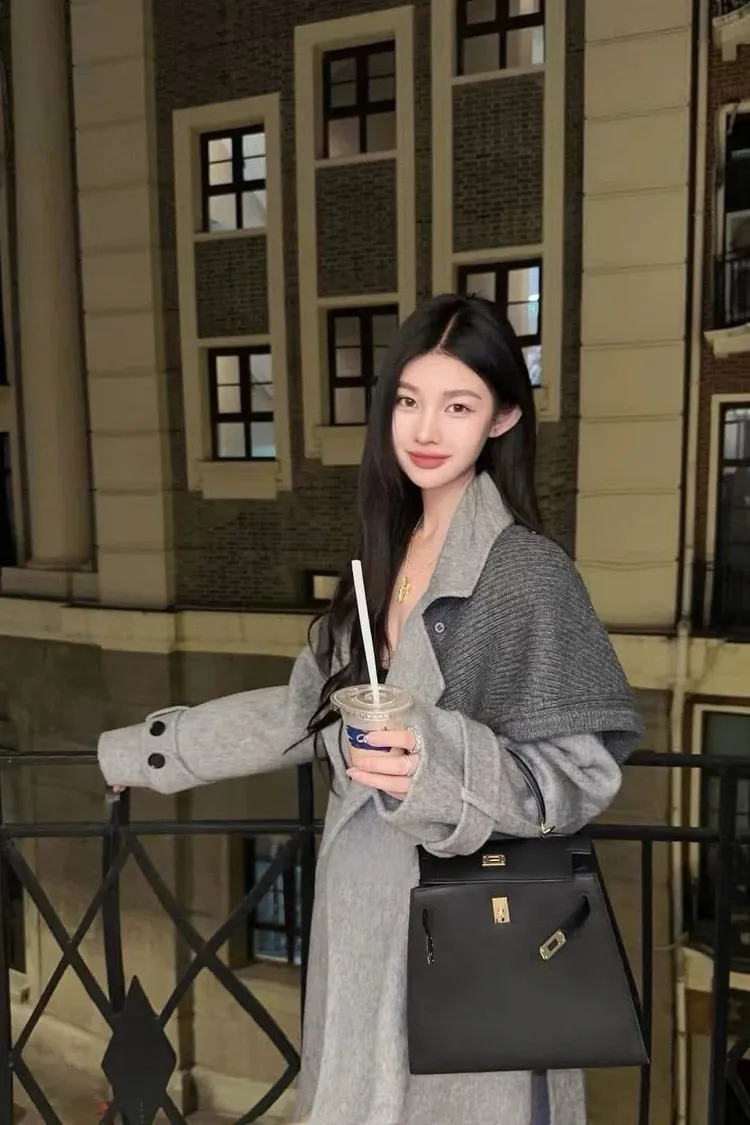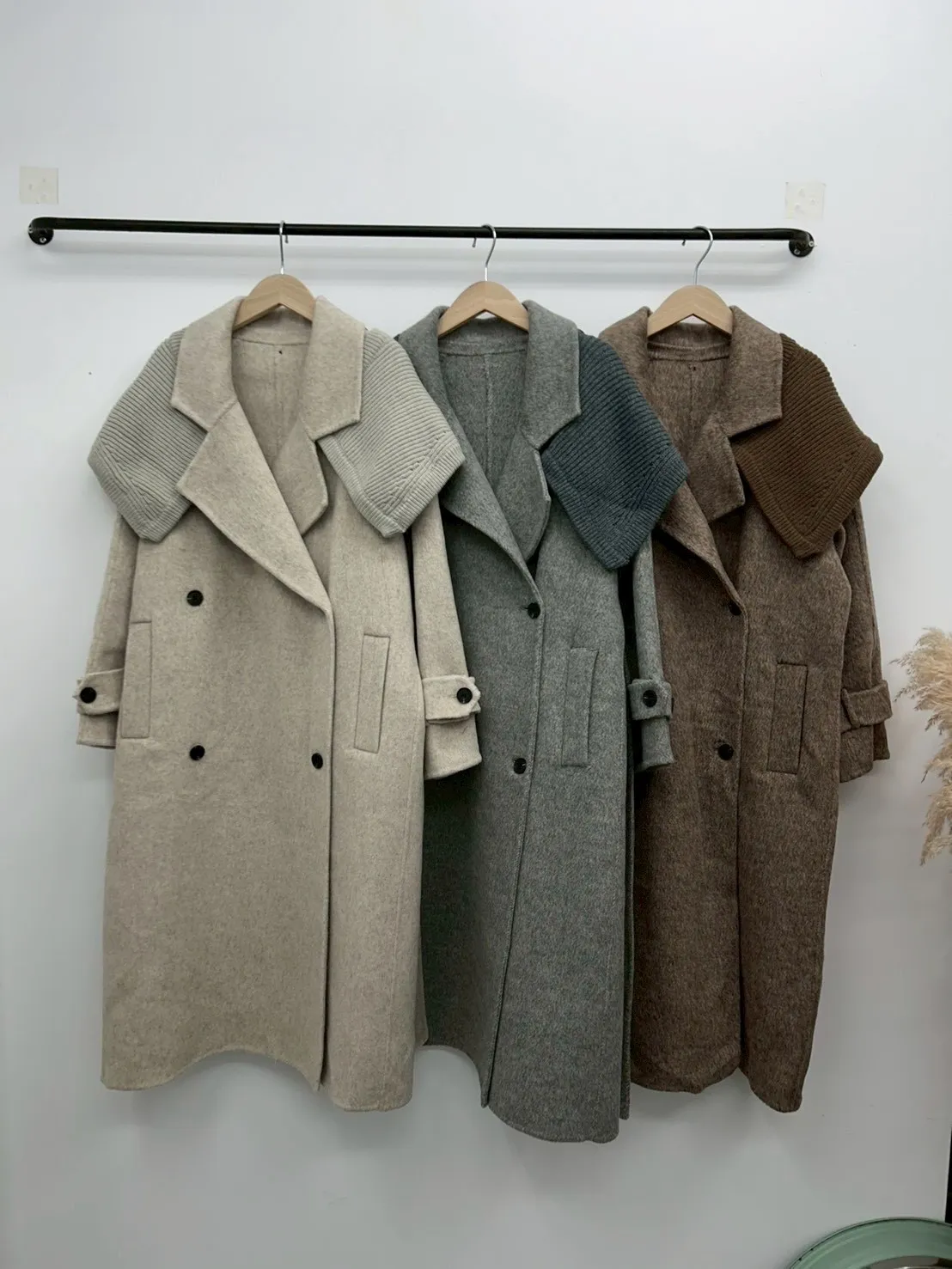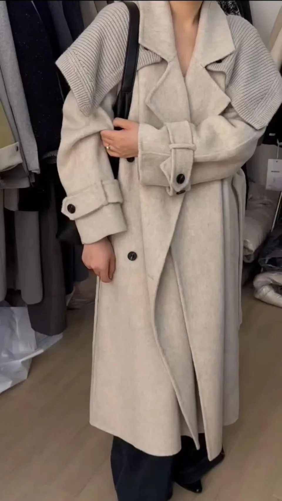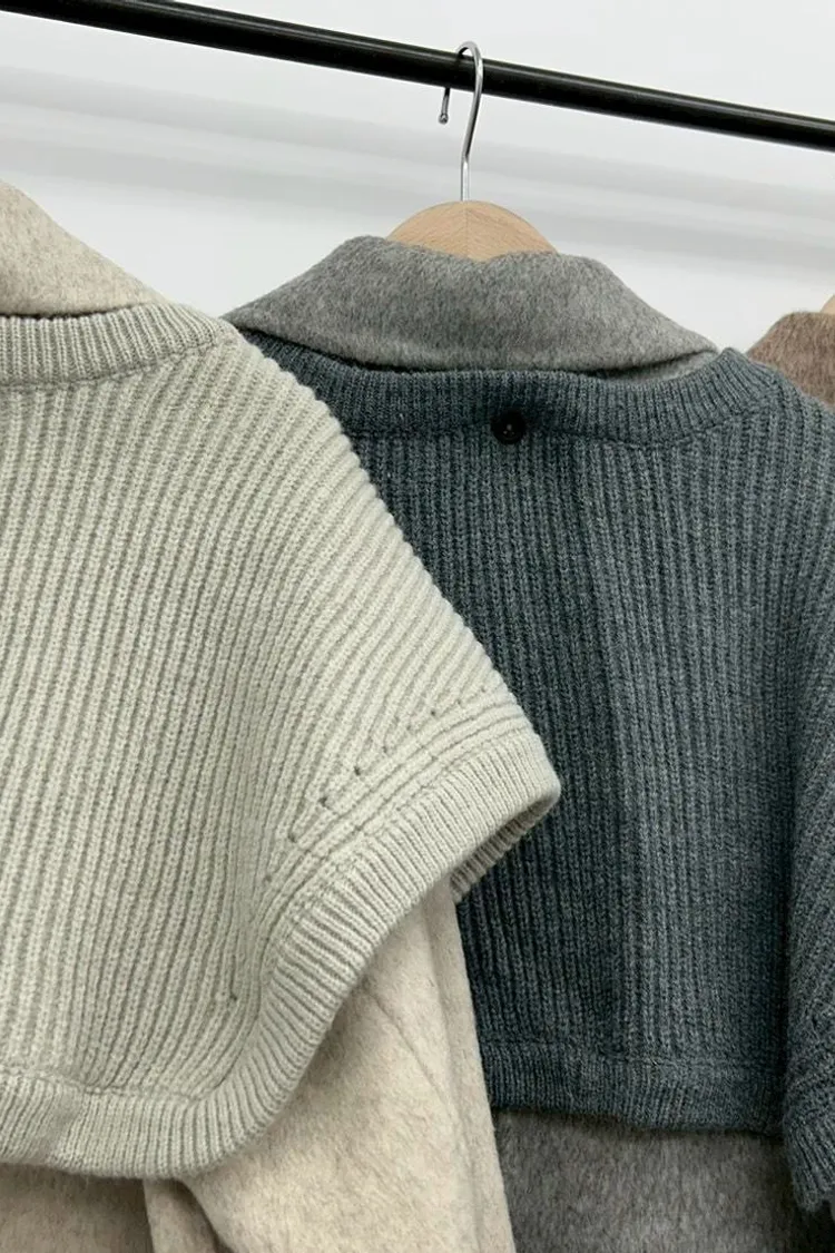 附披肩翻領羊毛長版外套