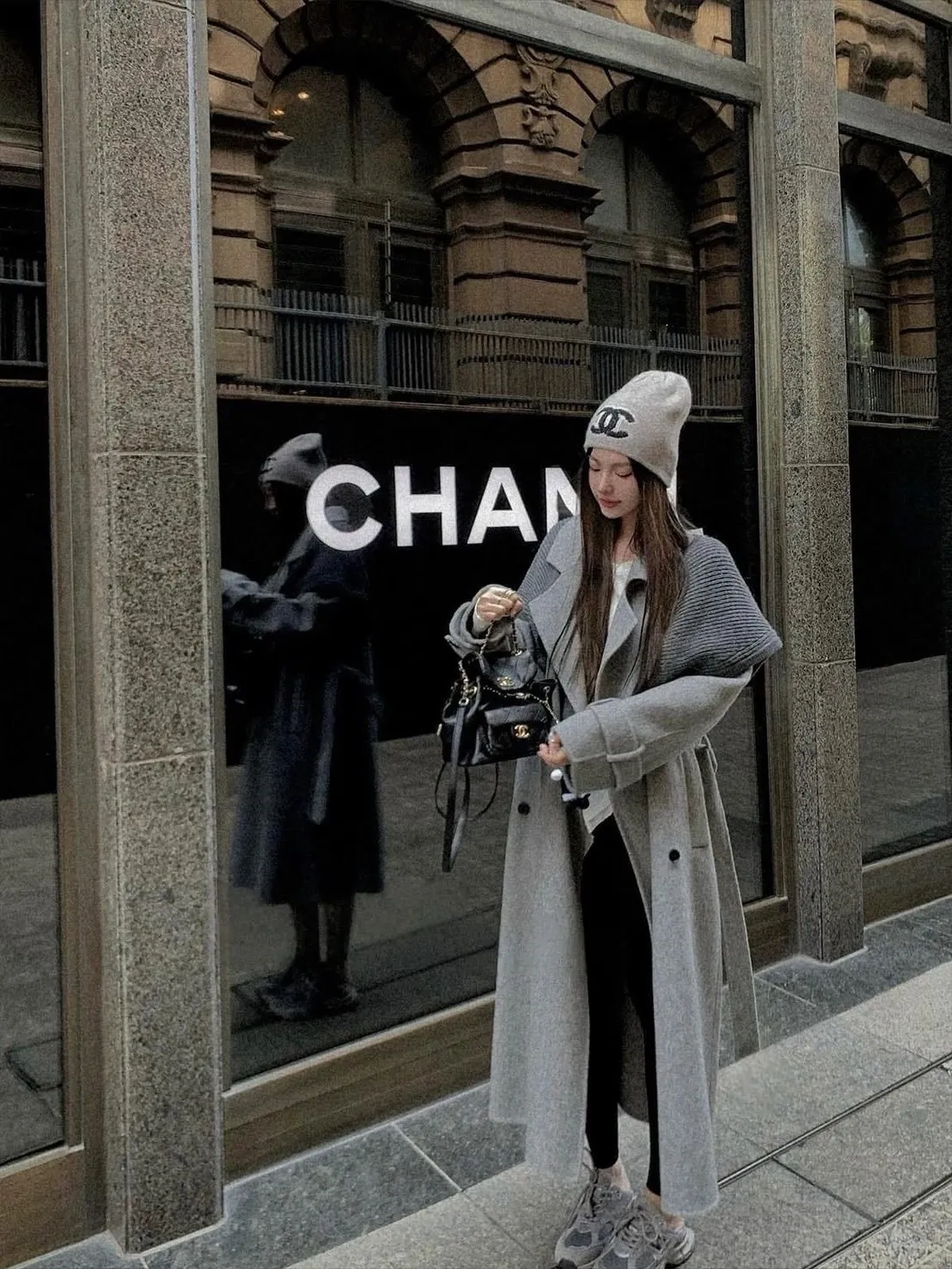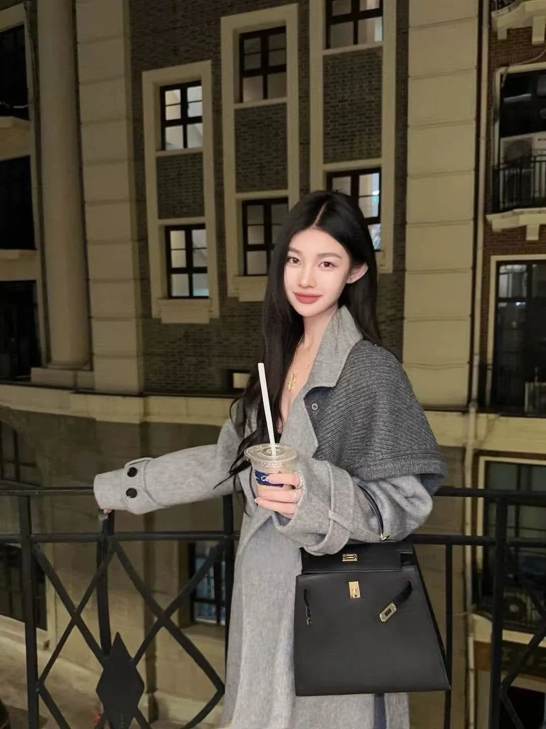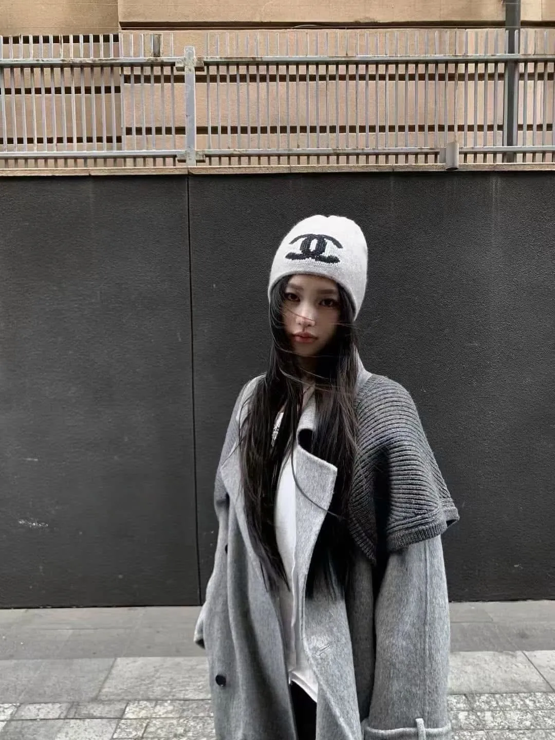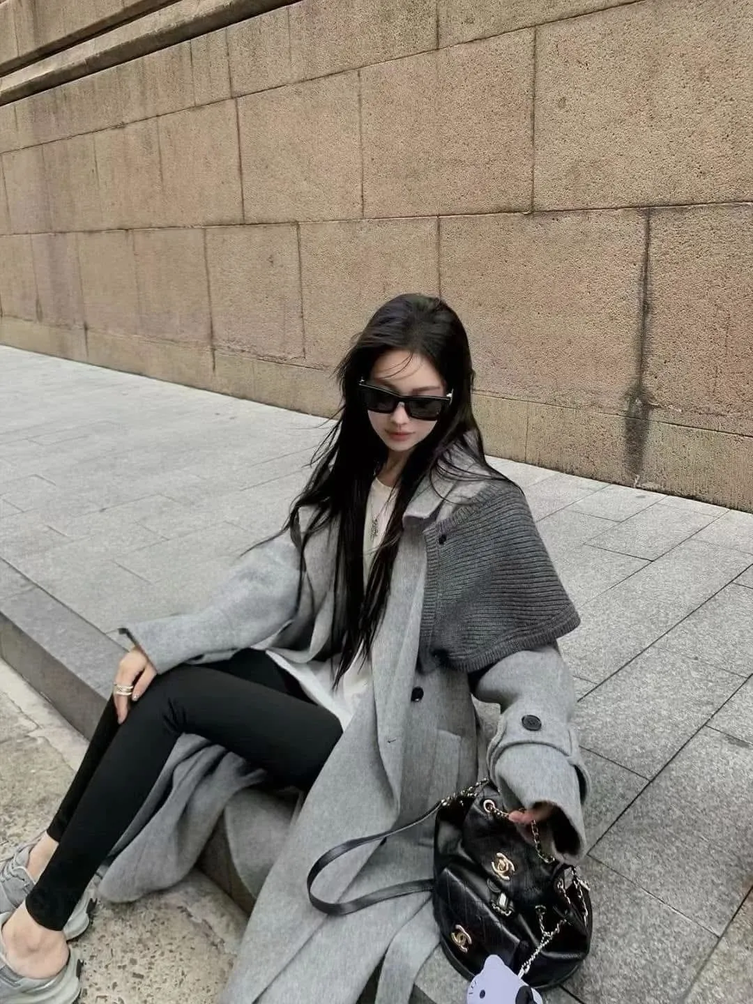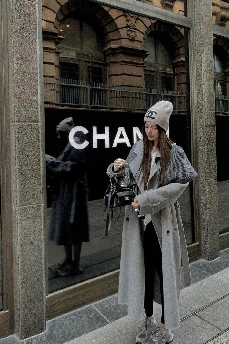 附披肩翻領羊毛長版外套