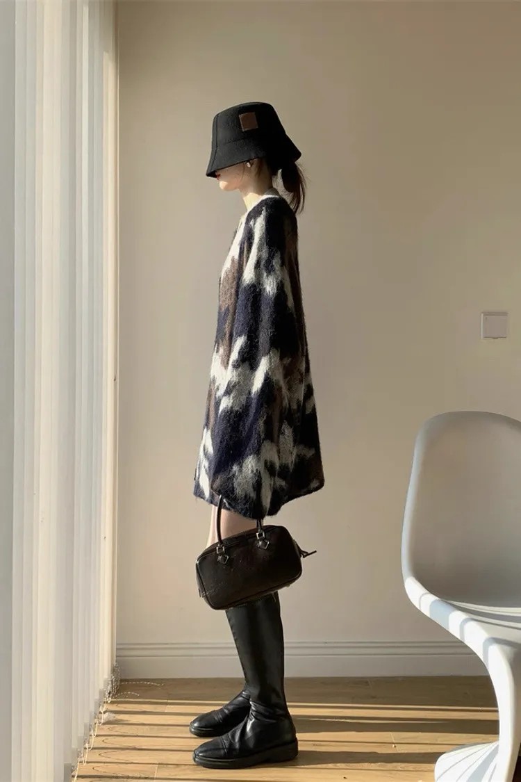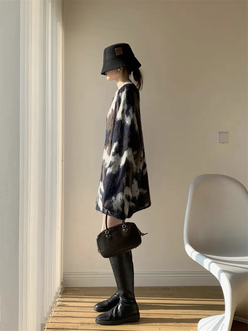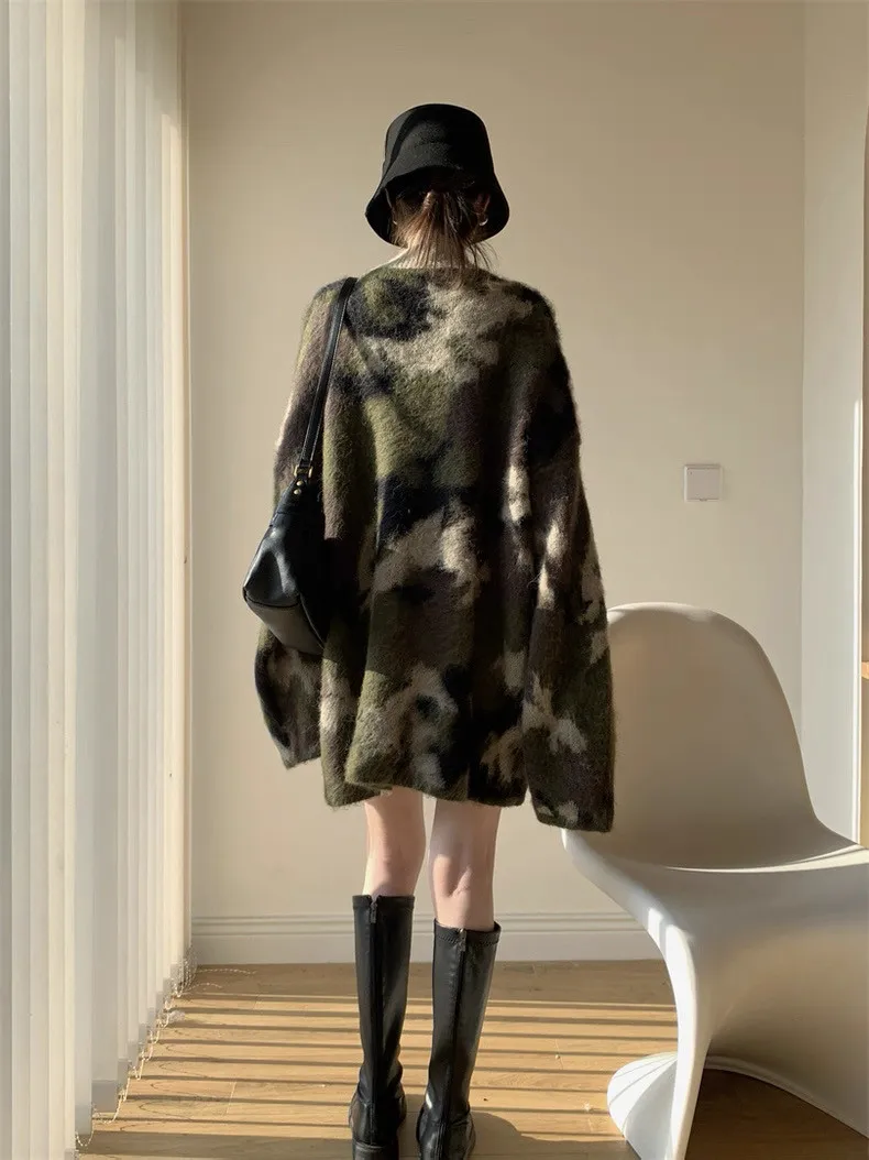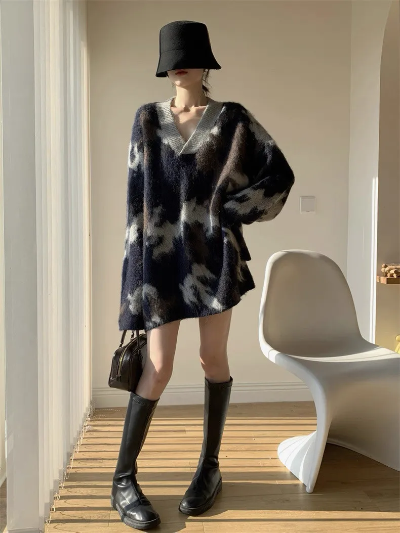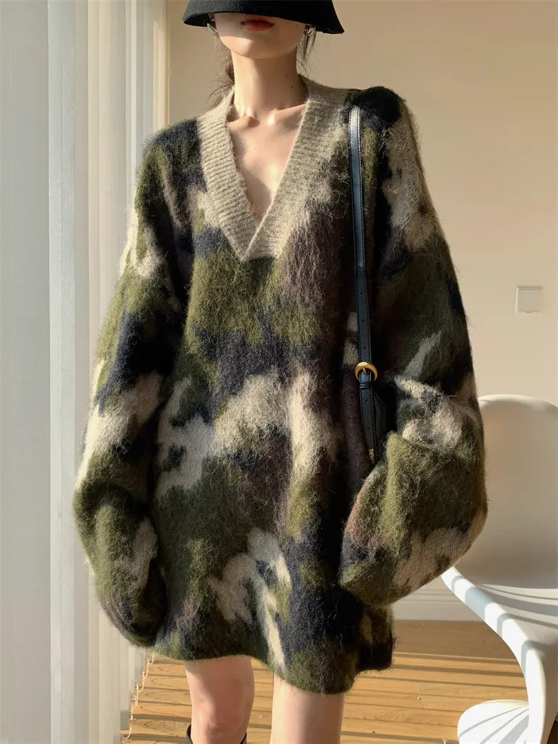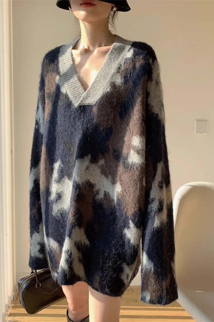 迷彩V領針織洋