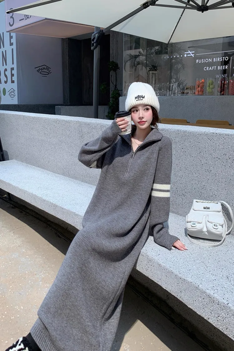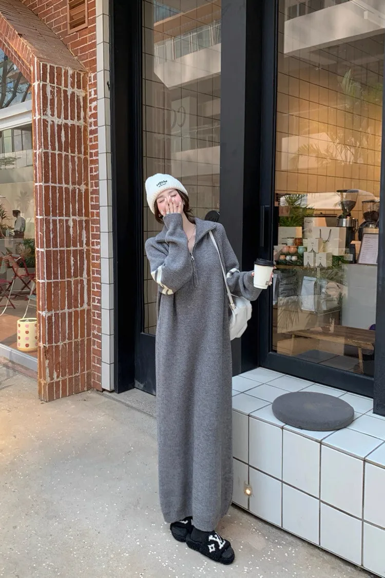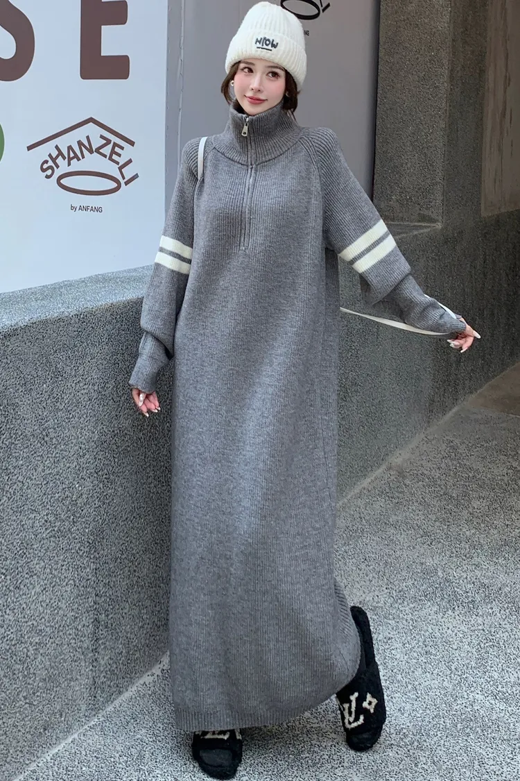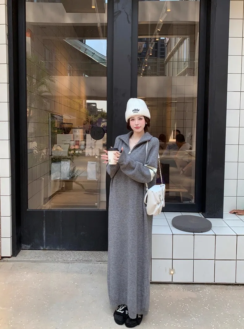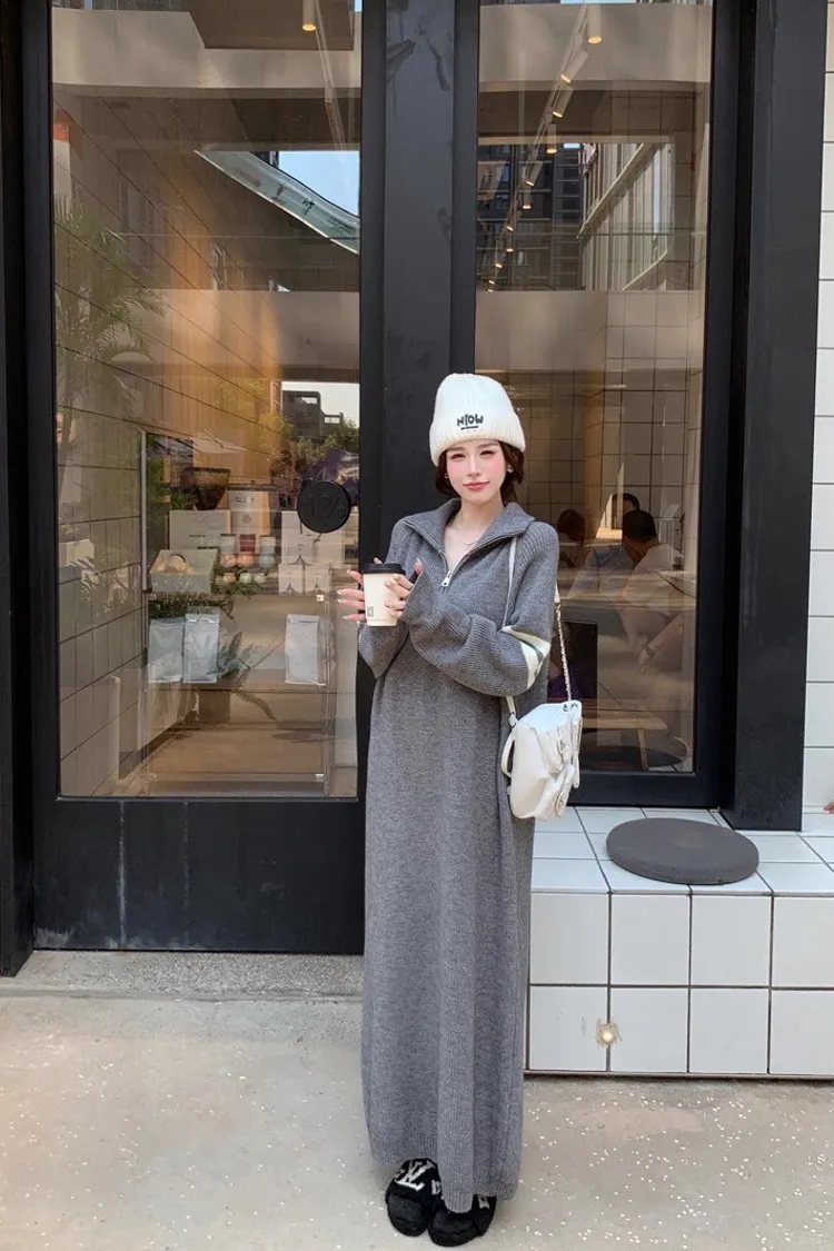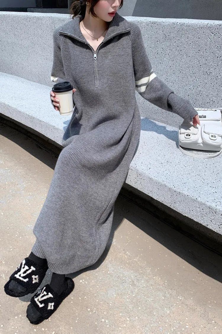 拉鏈針織修身連身長裙