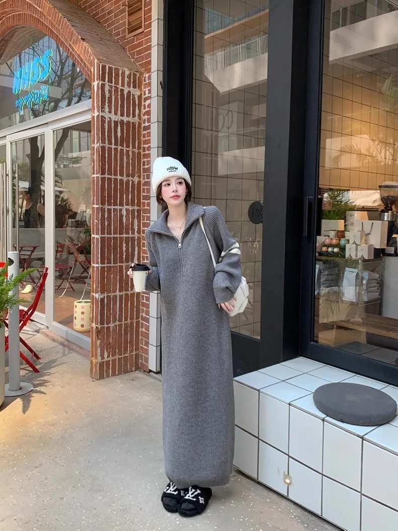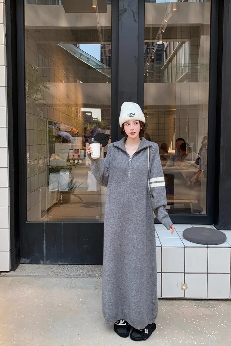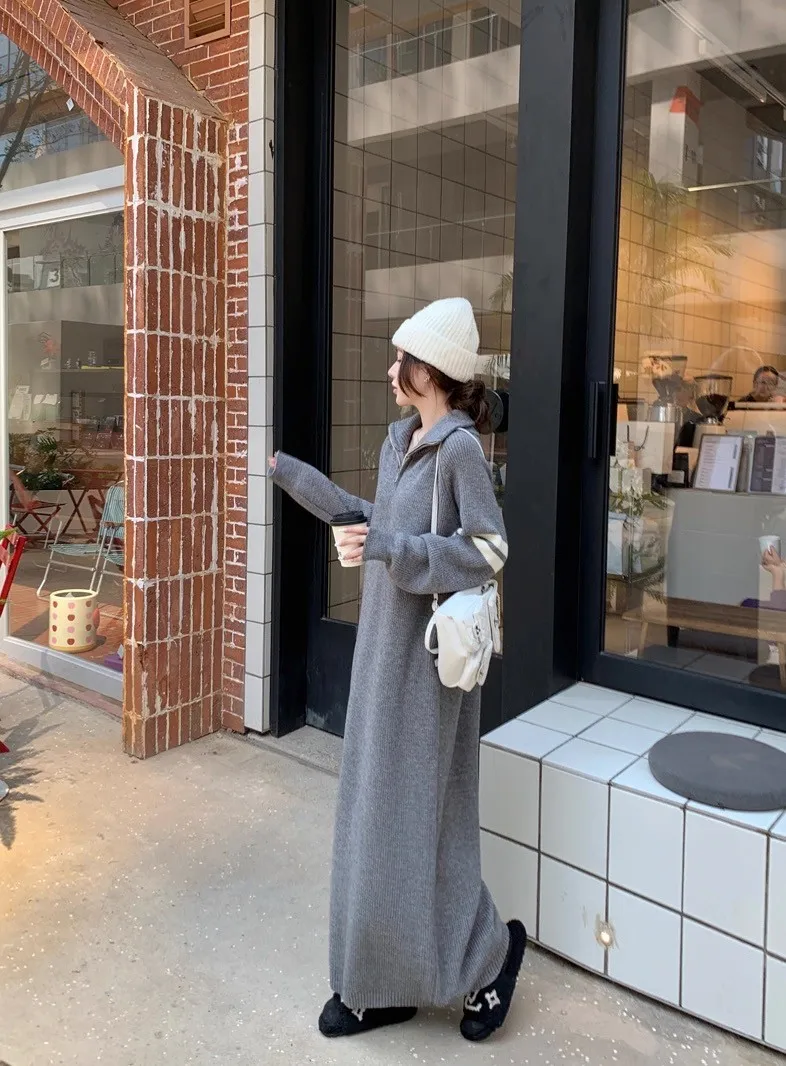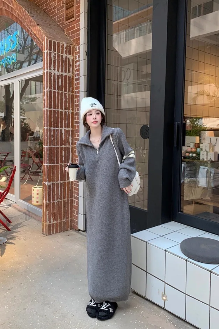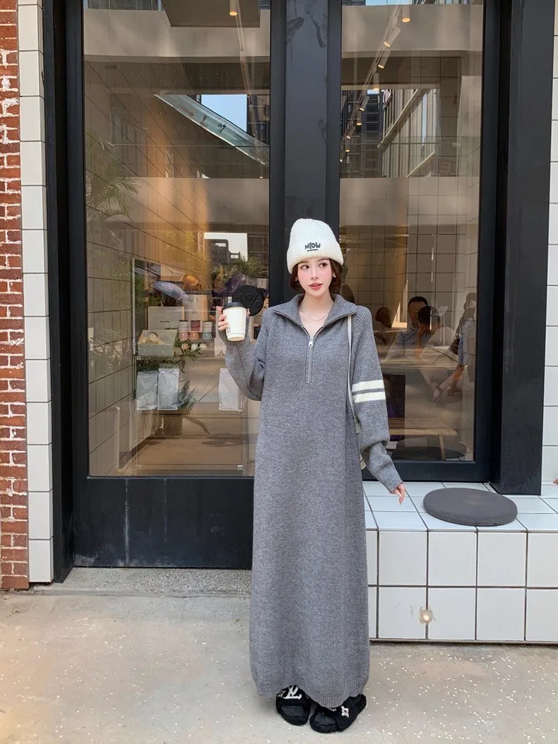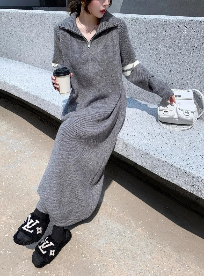 拉鏈針織修身連身長裙
