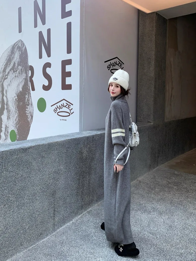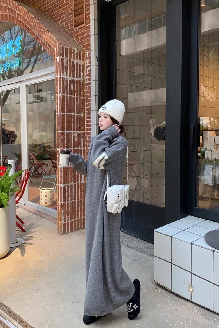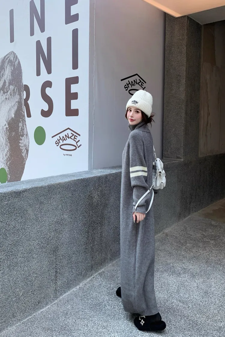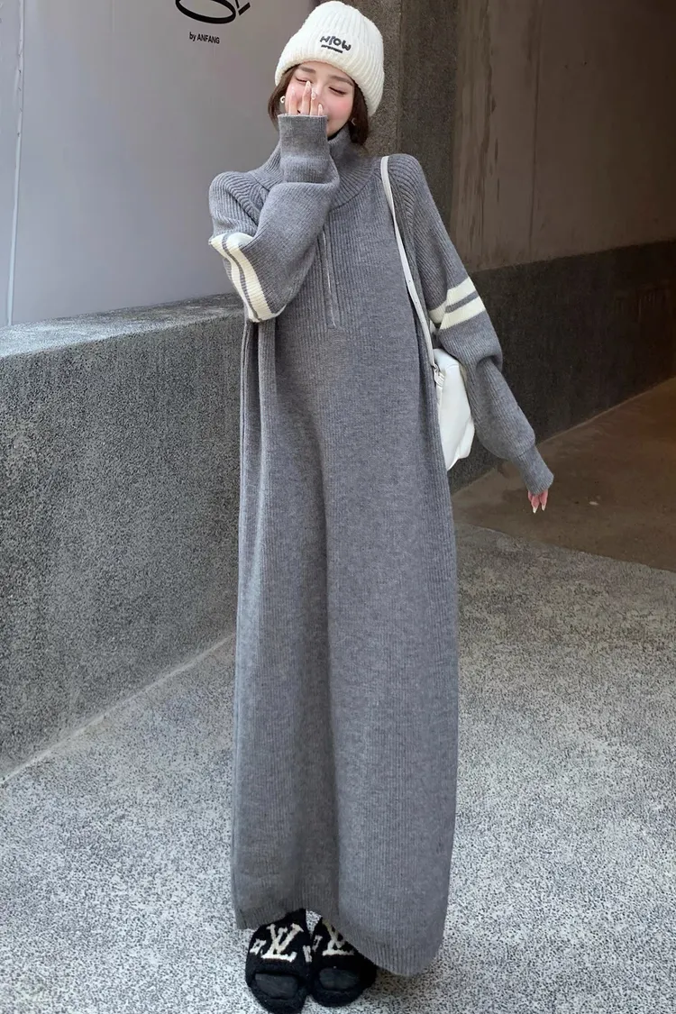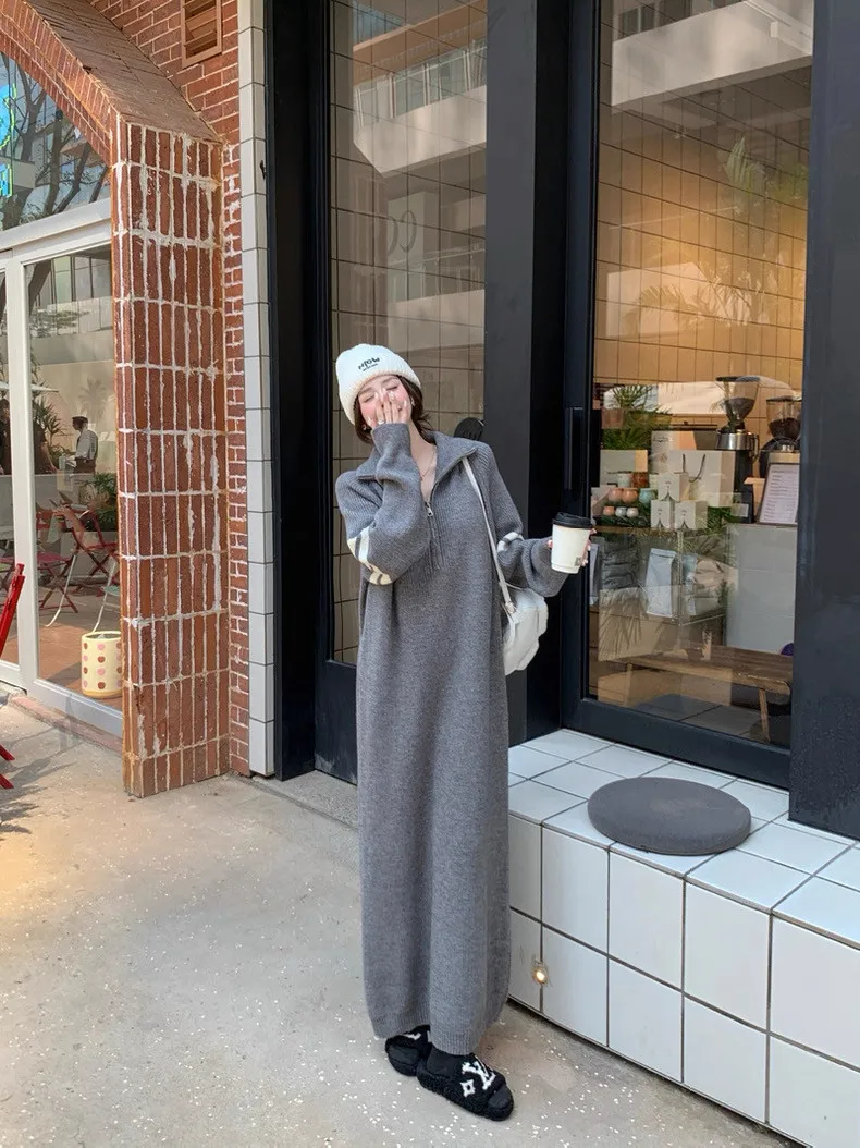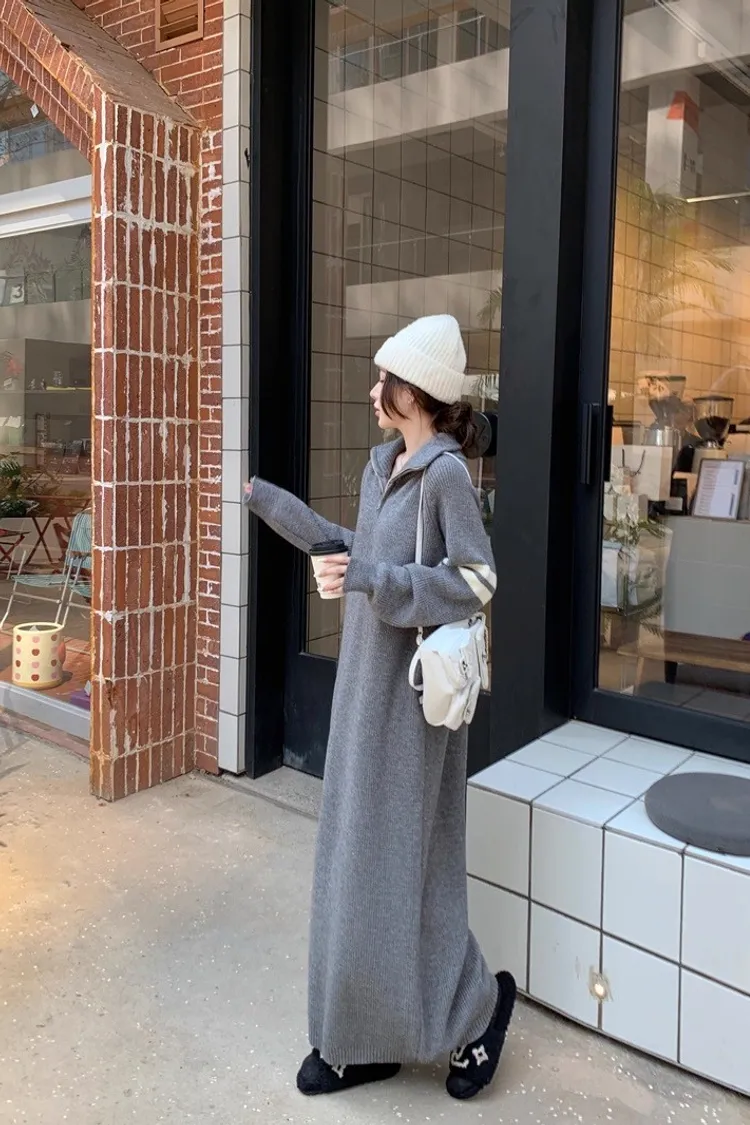 拉鏈針織修身連身長裙