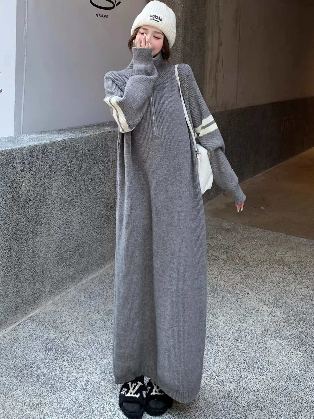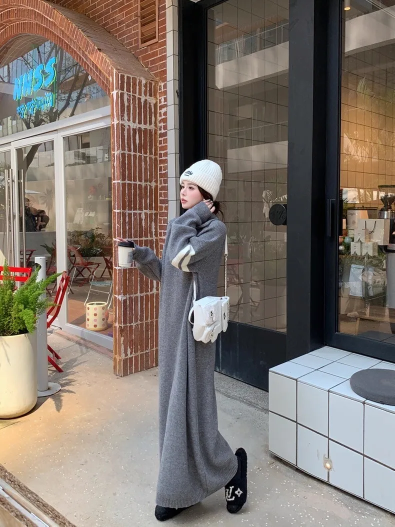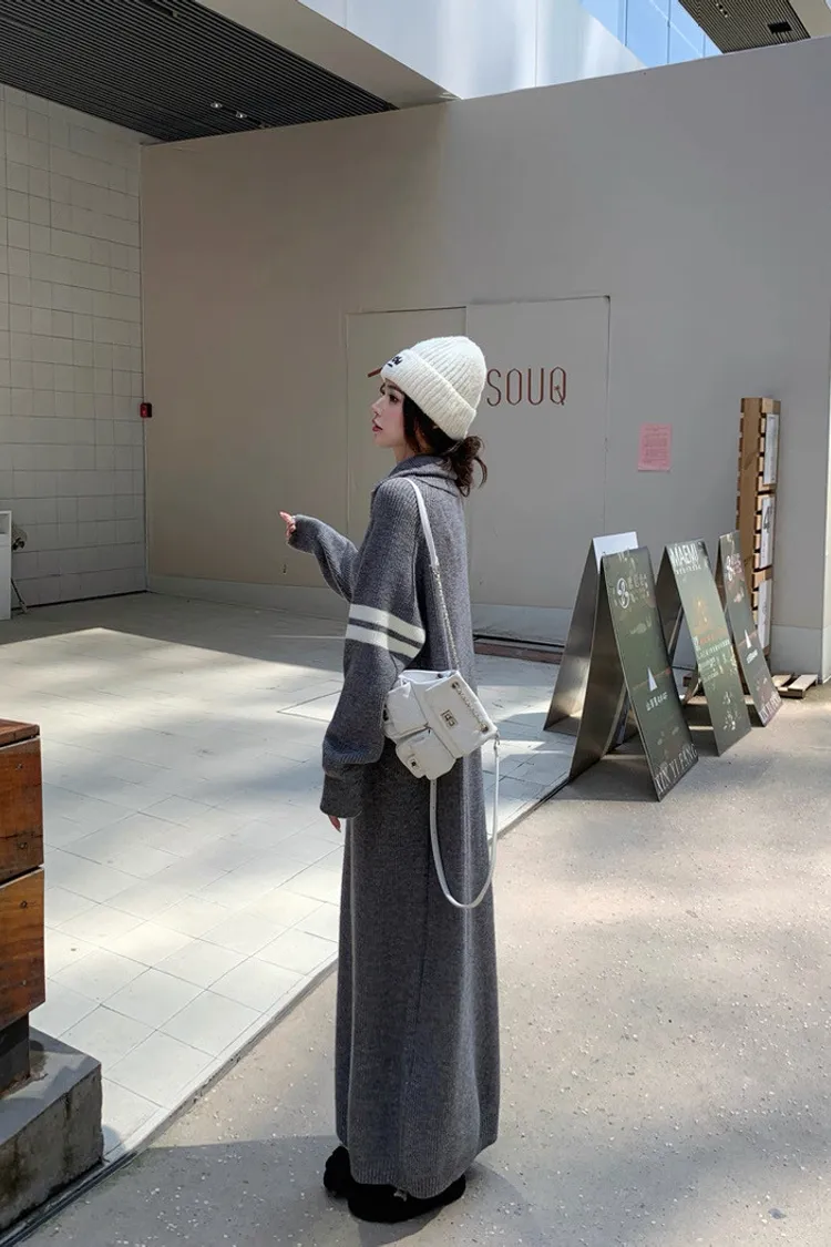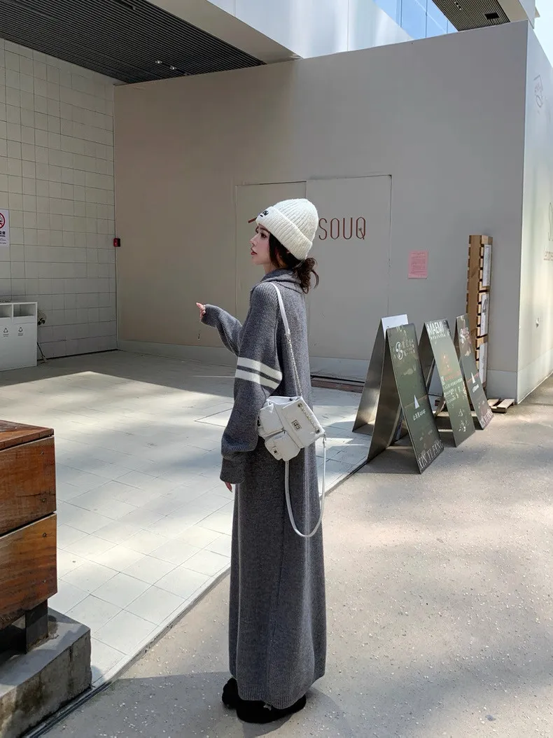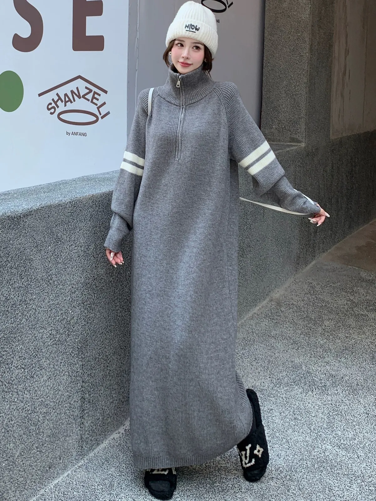 拉鏈針織修身連身長裙