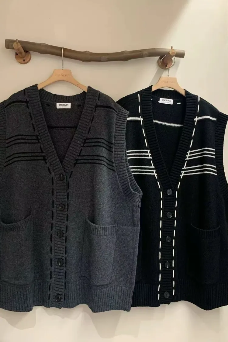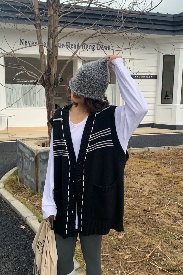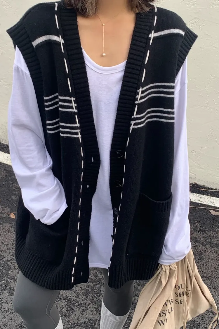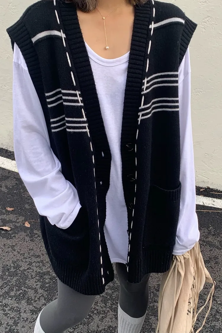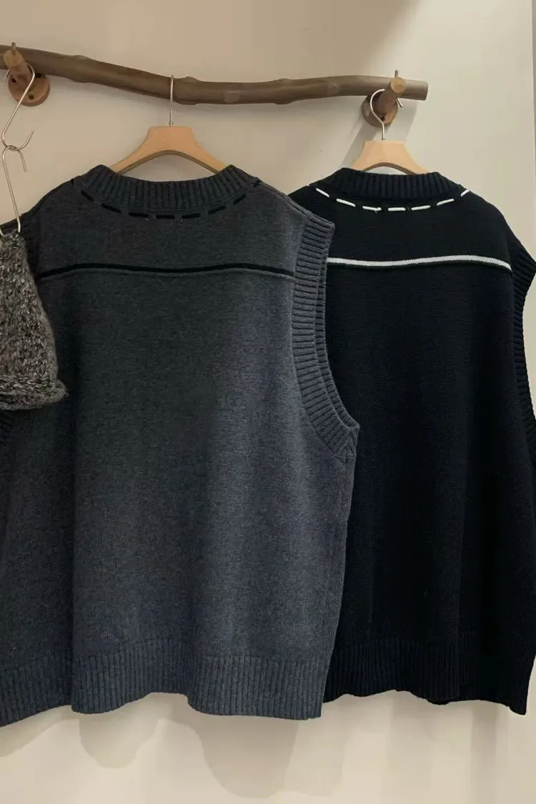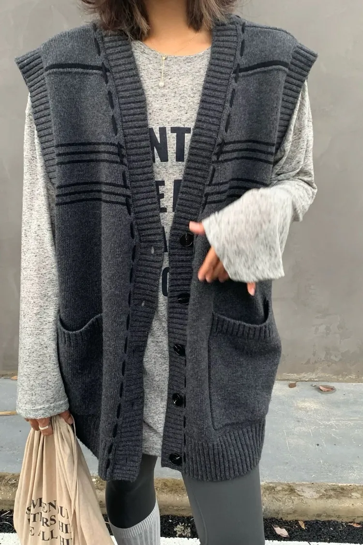 縫線感針織長版背心