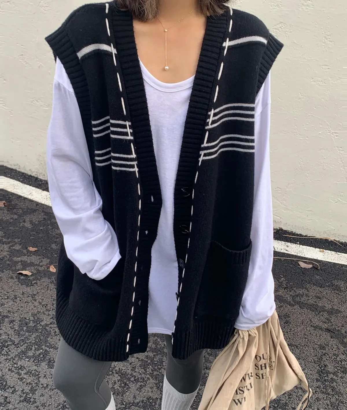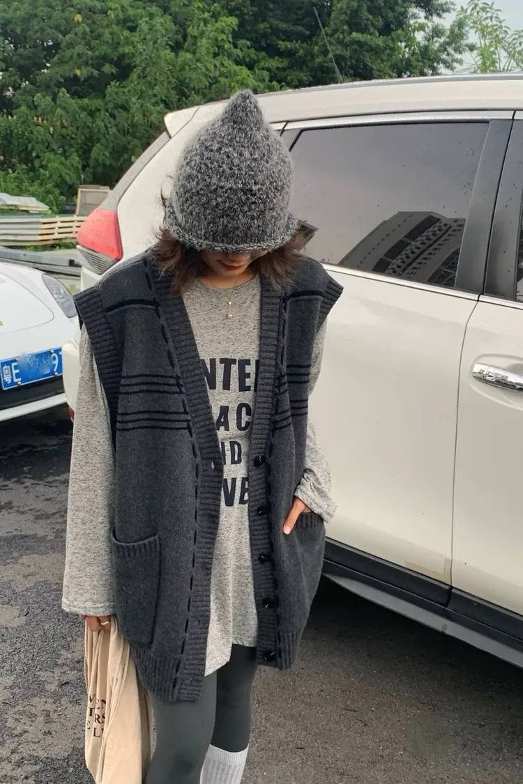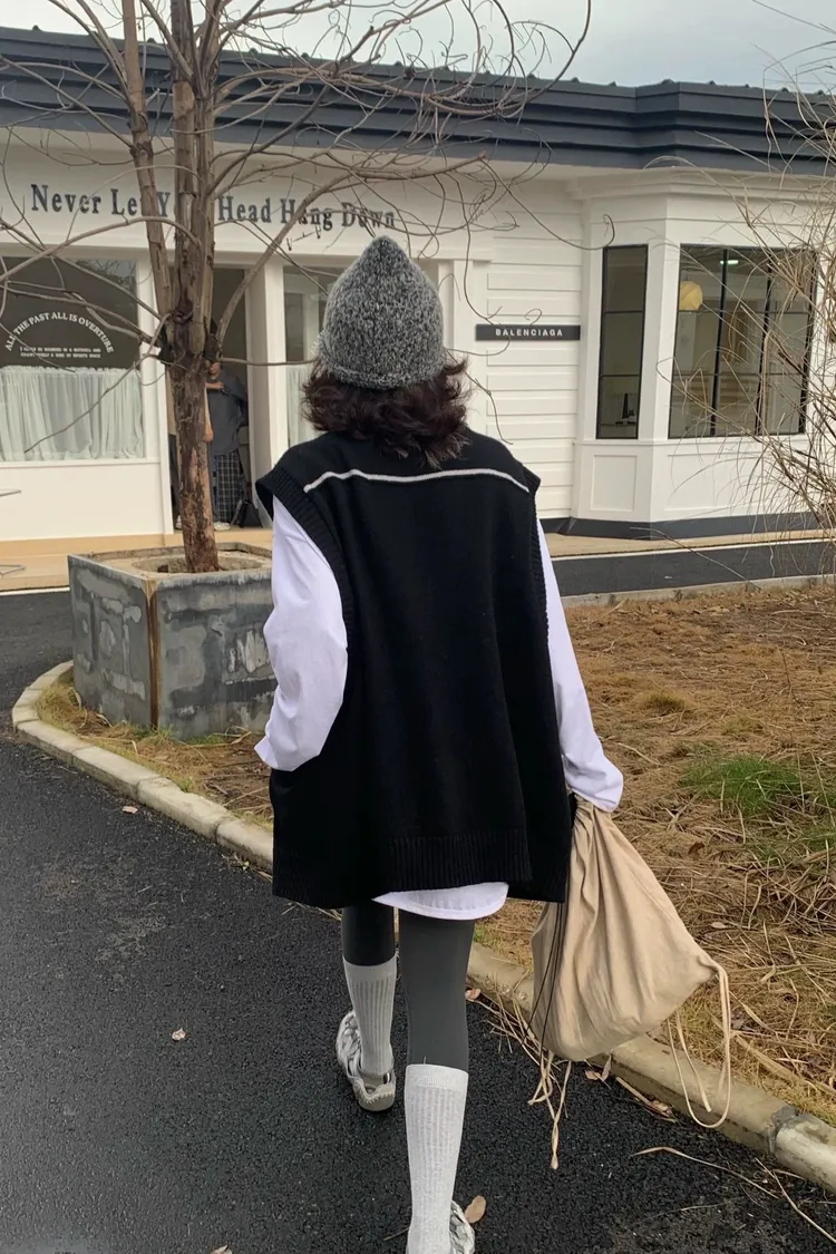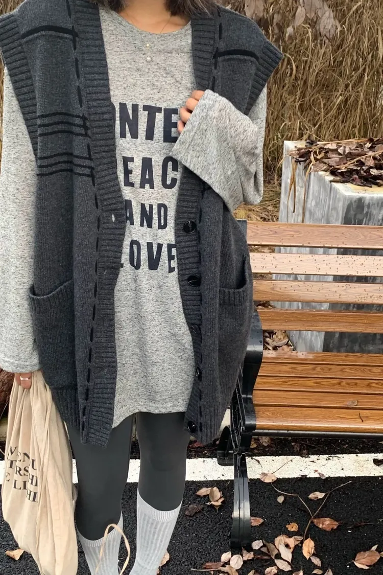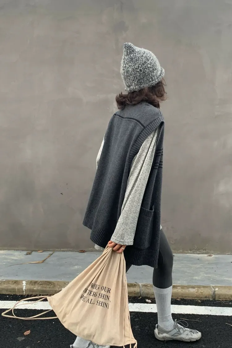 縫線感針織長版背心