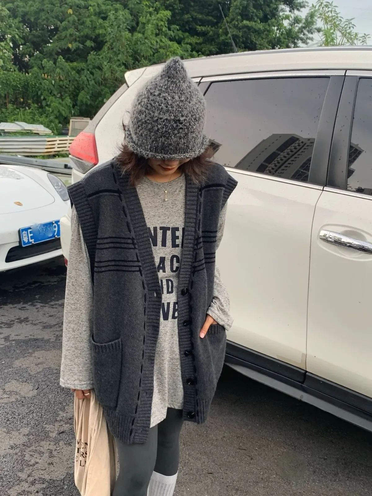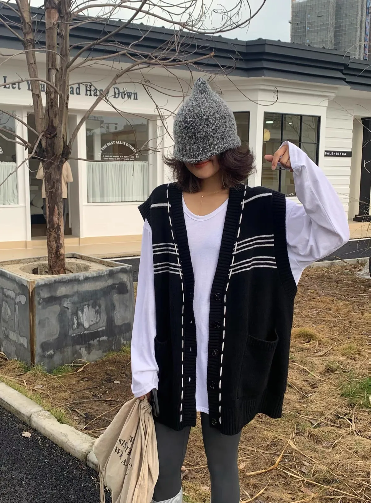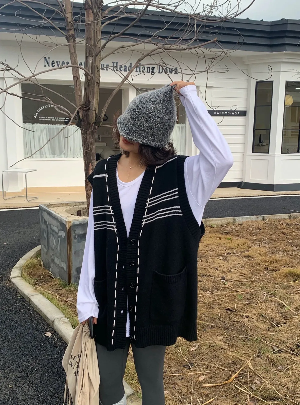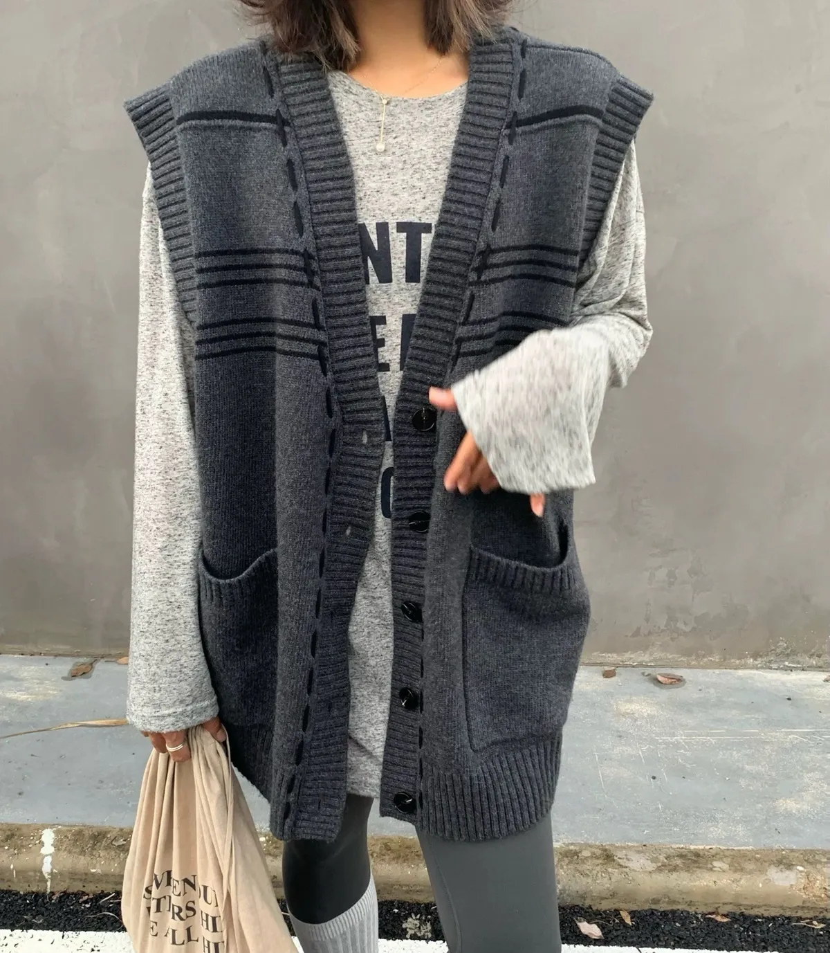 縫線感針織長版背心
