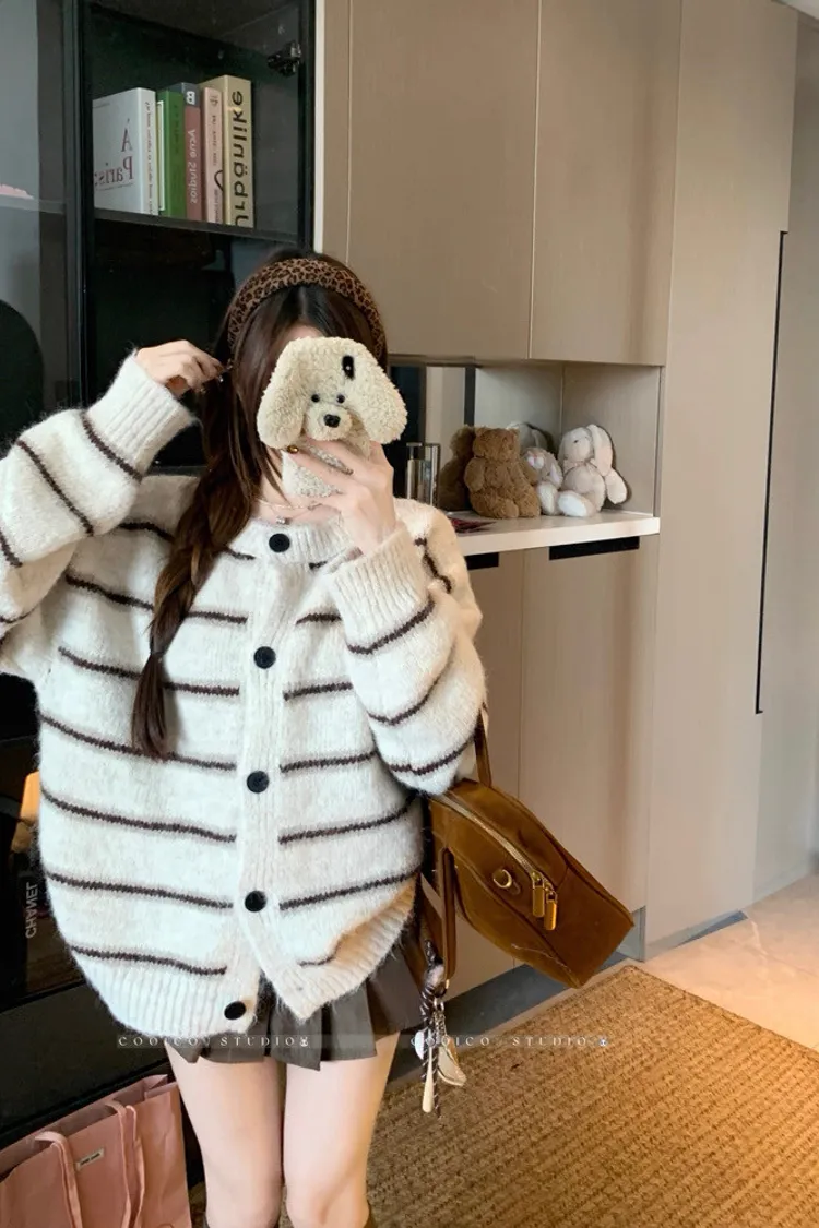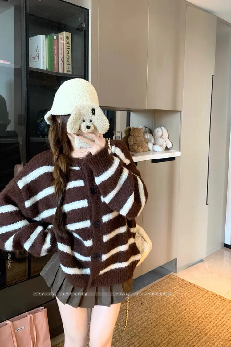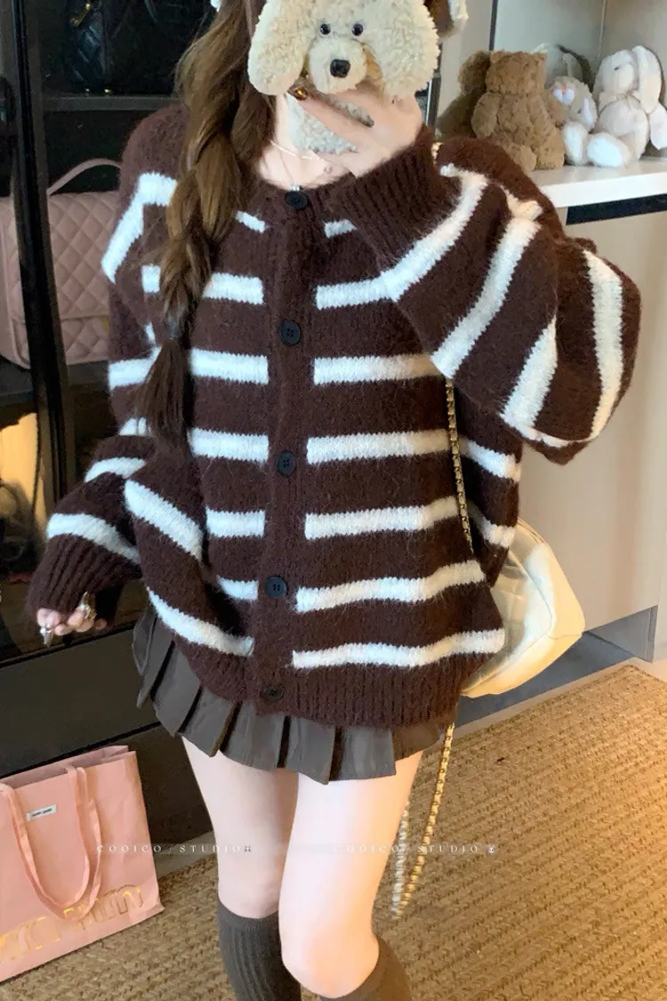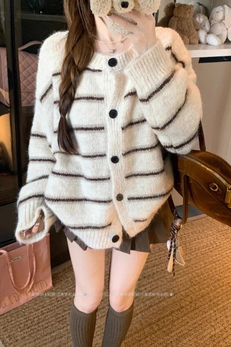 條紋開釦毛衣