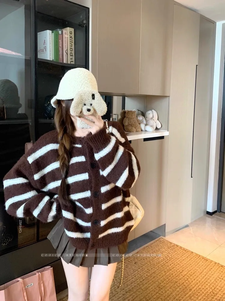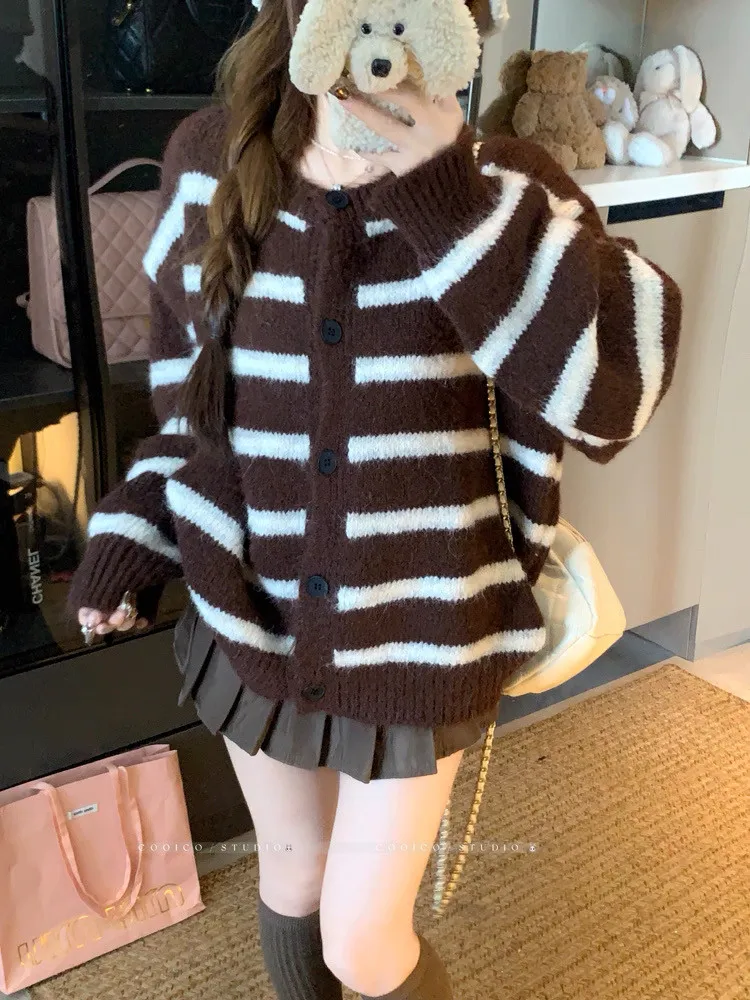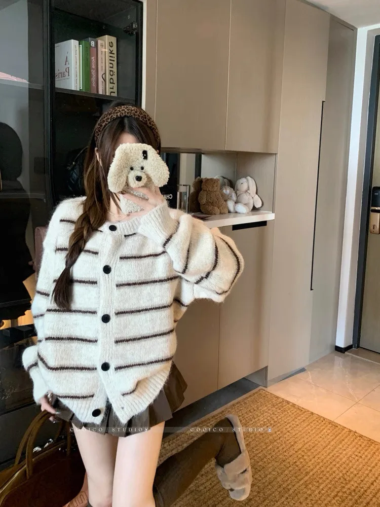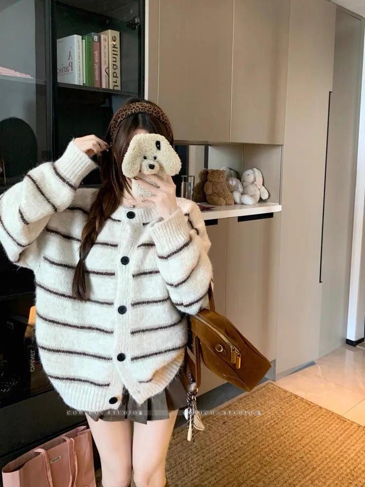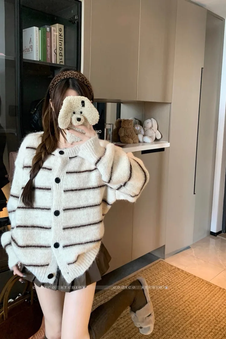條紋開釦毛衣