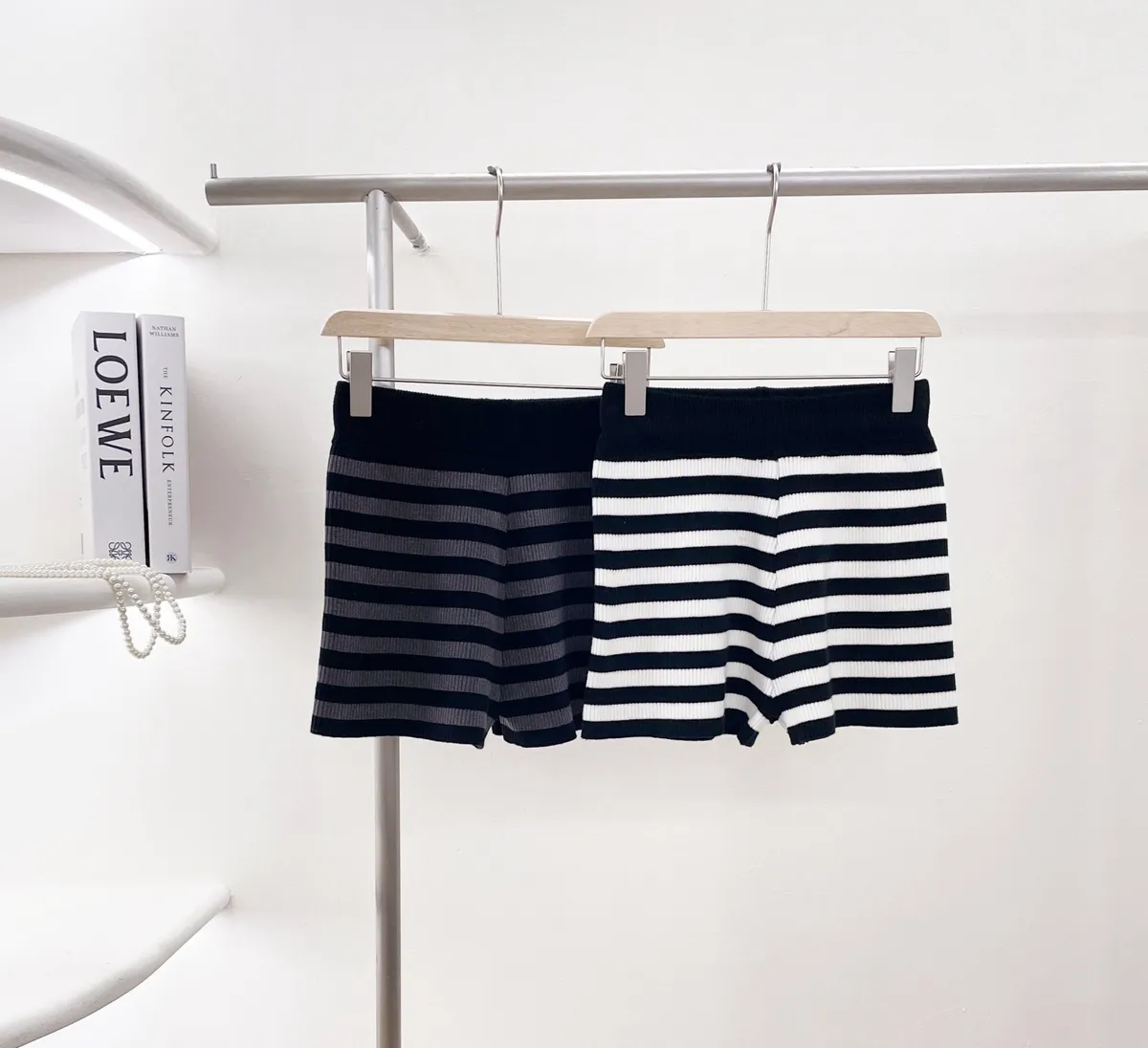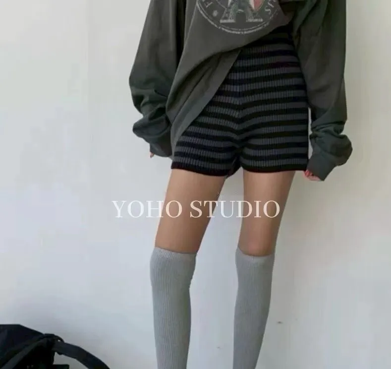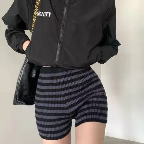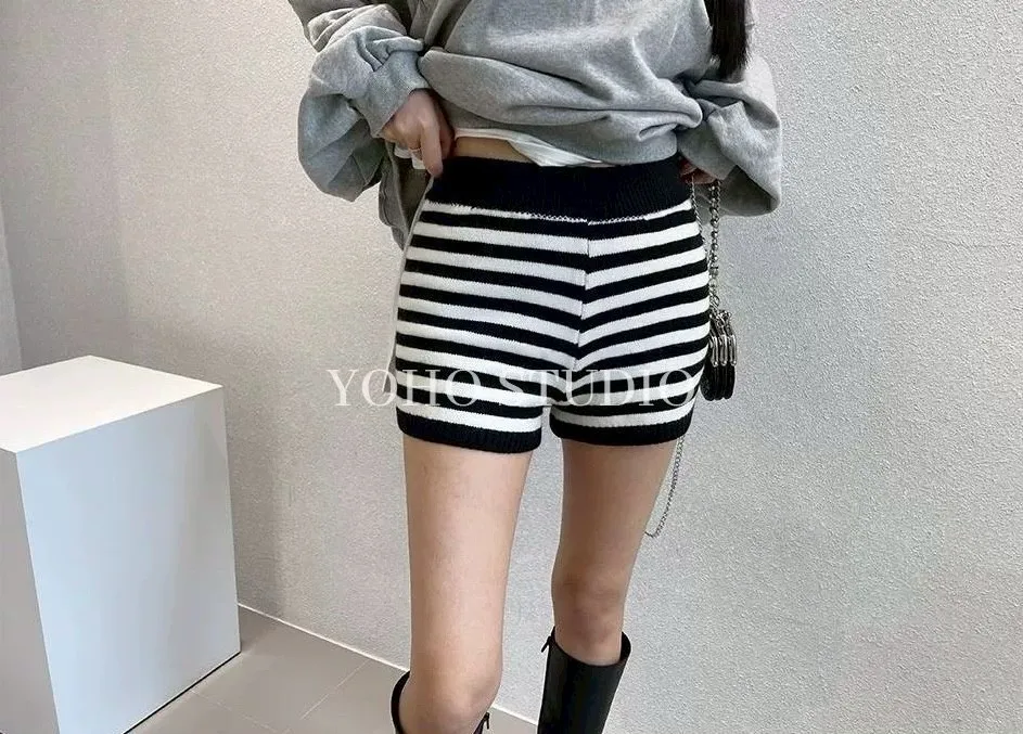 百搭高腰條紋針織短褲