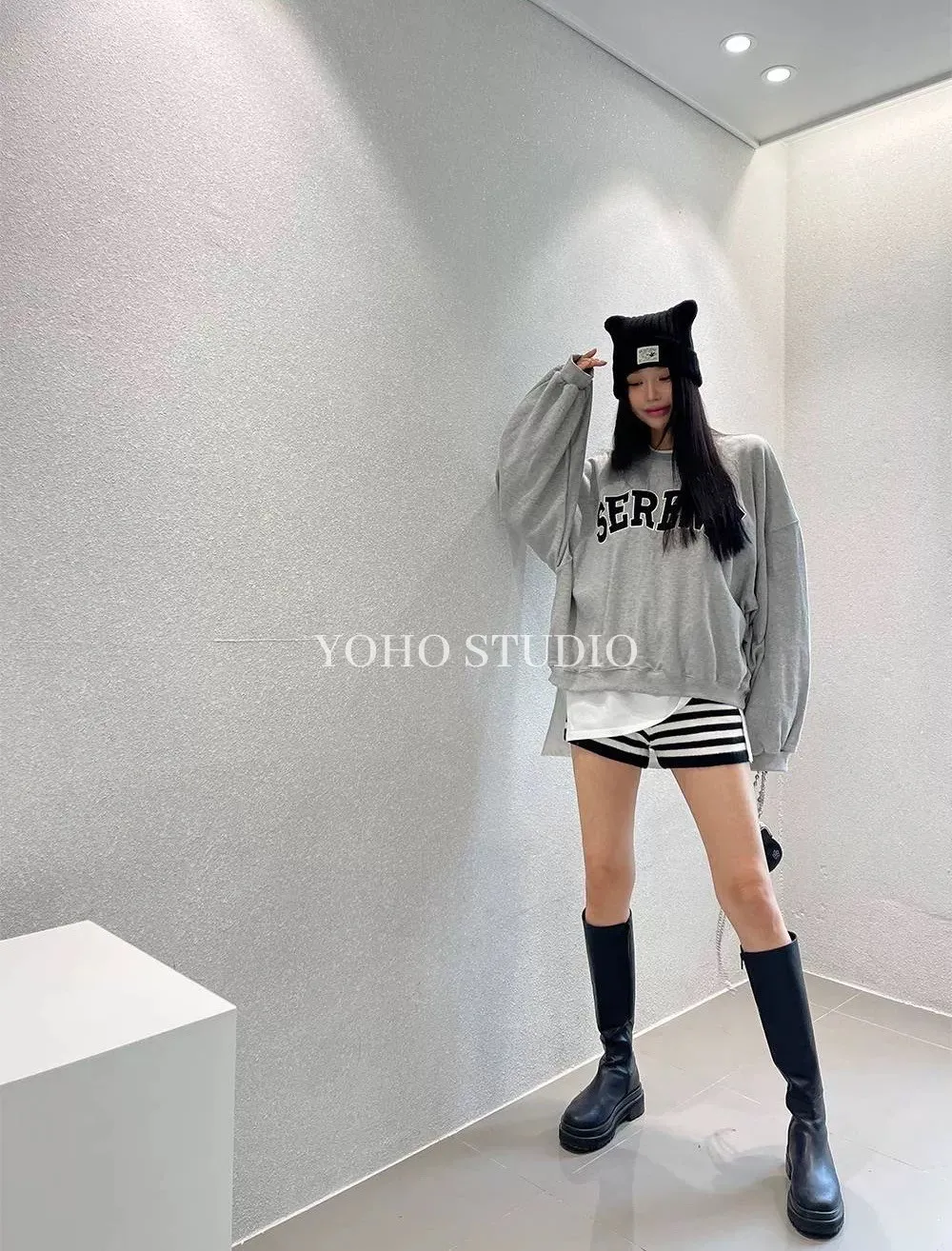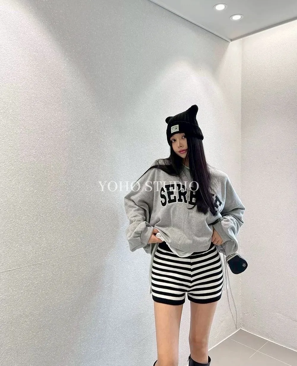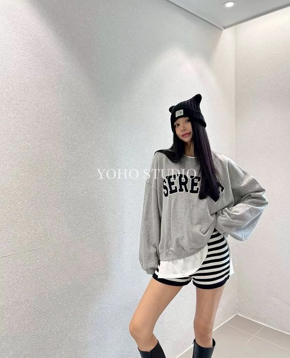 百搭高腰條紋針織短褲