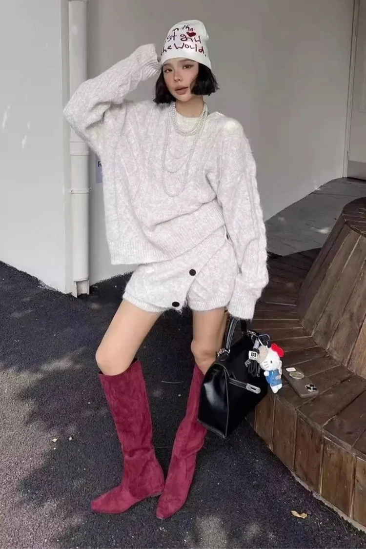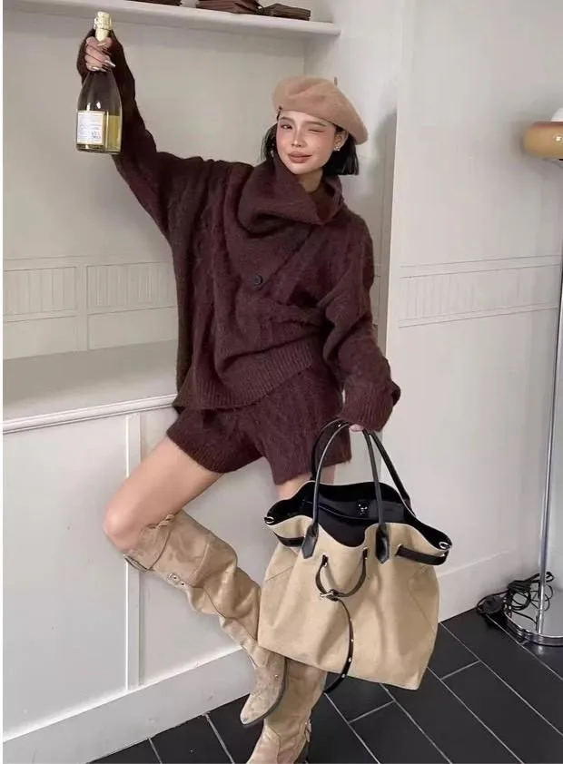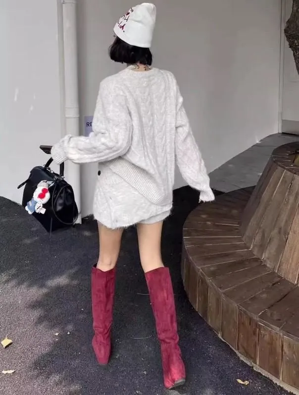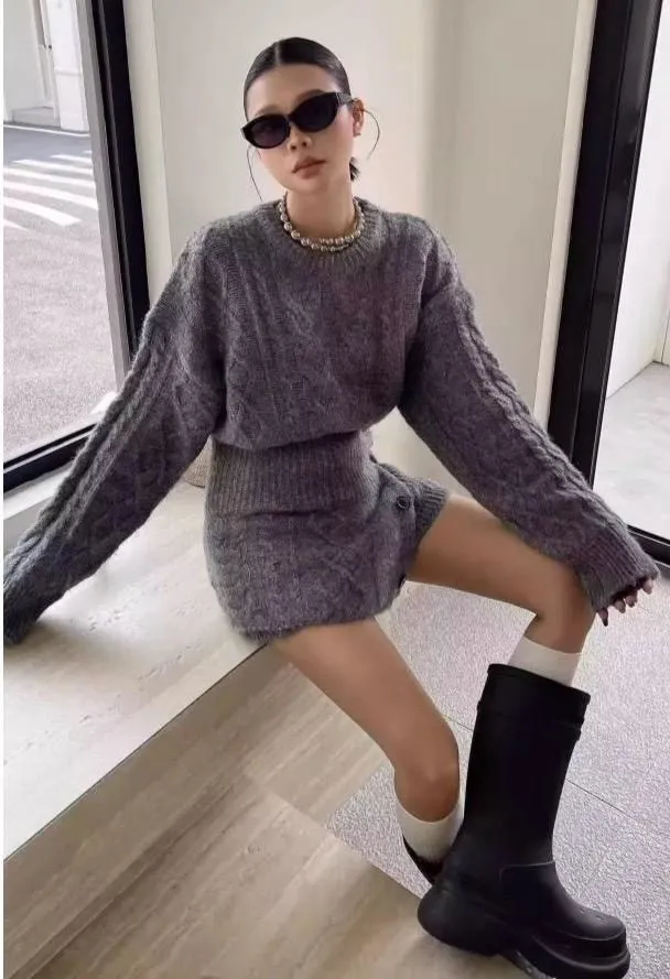 三件套麻花針織套裝