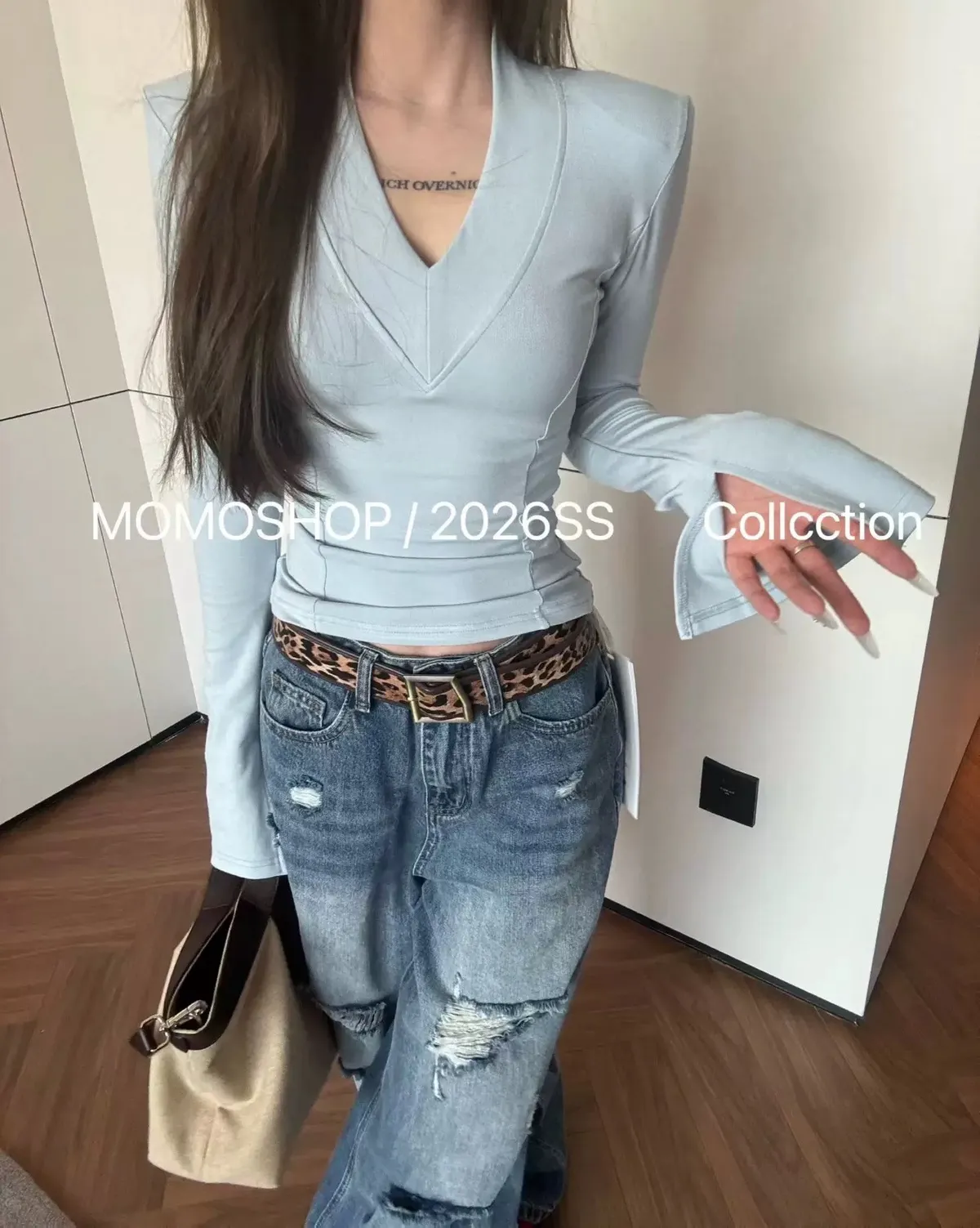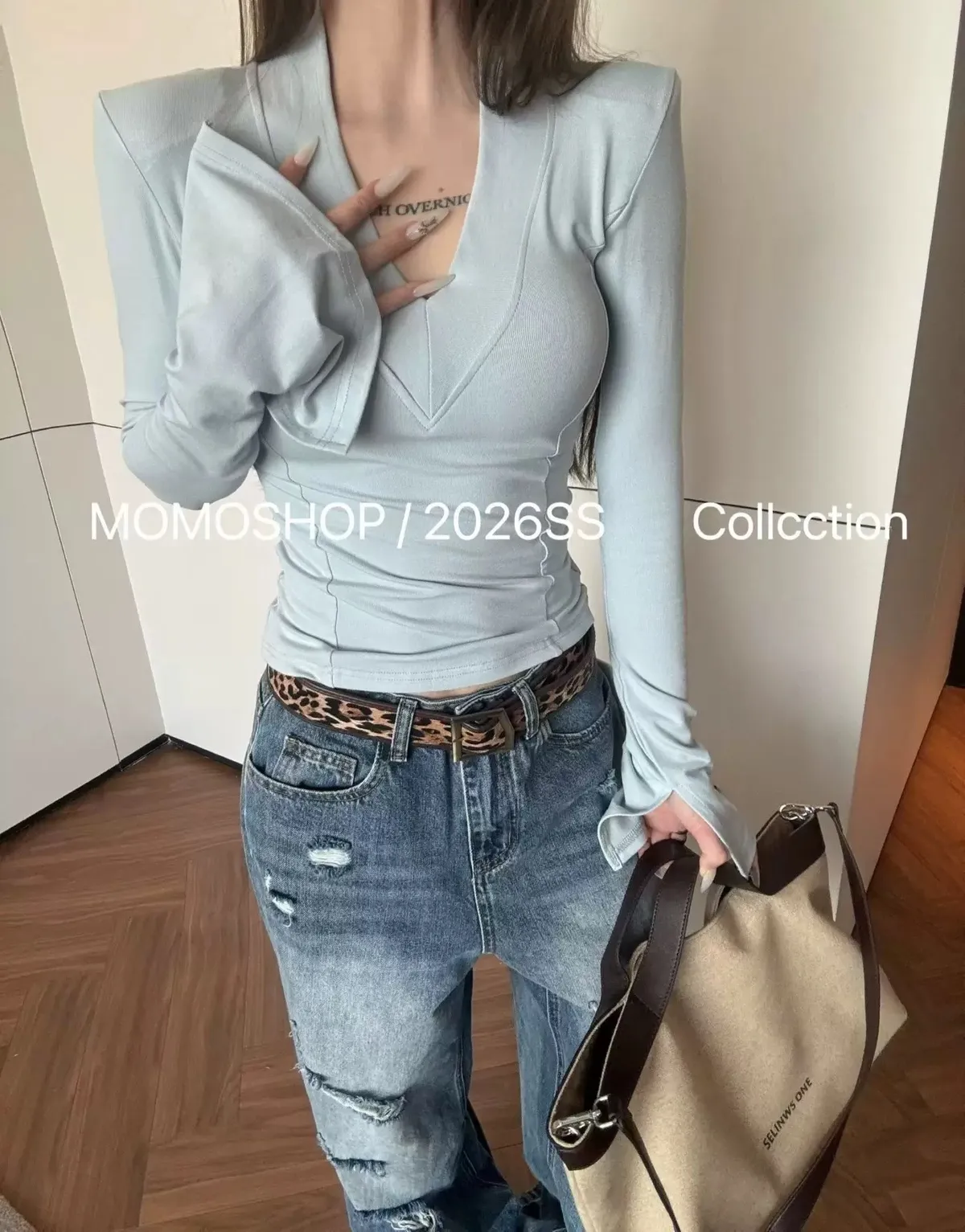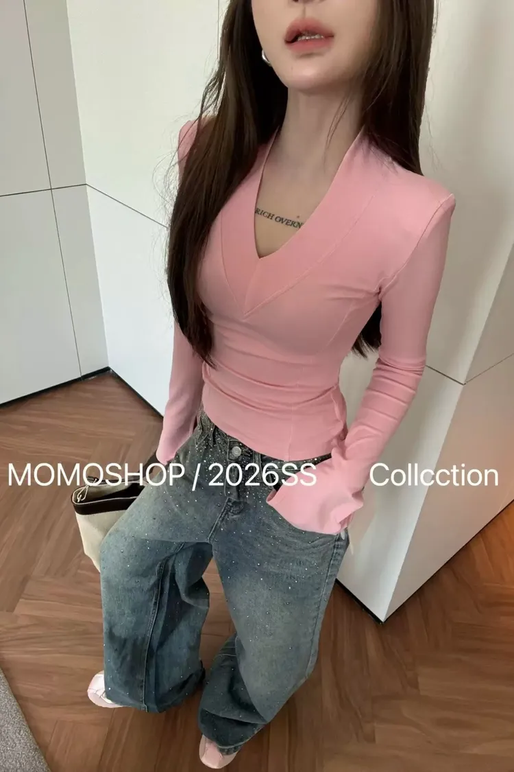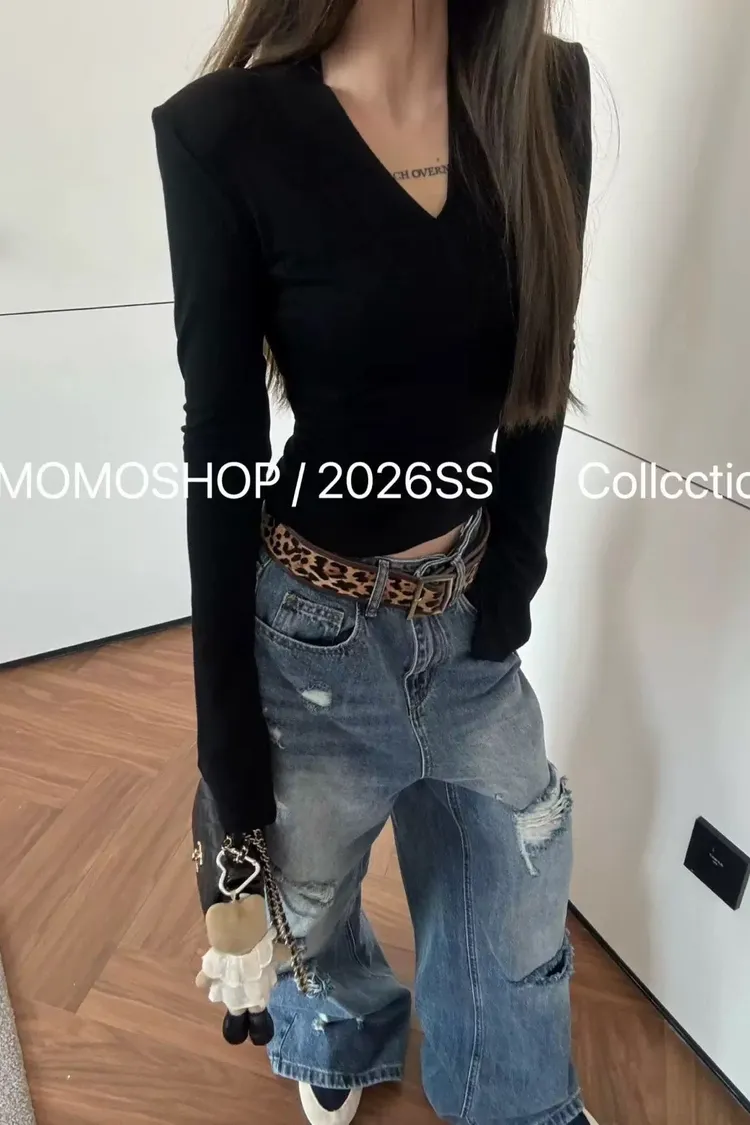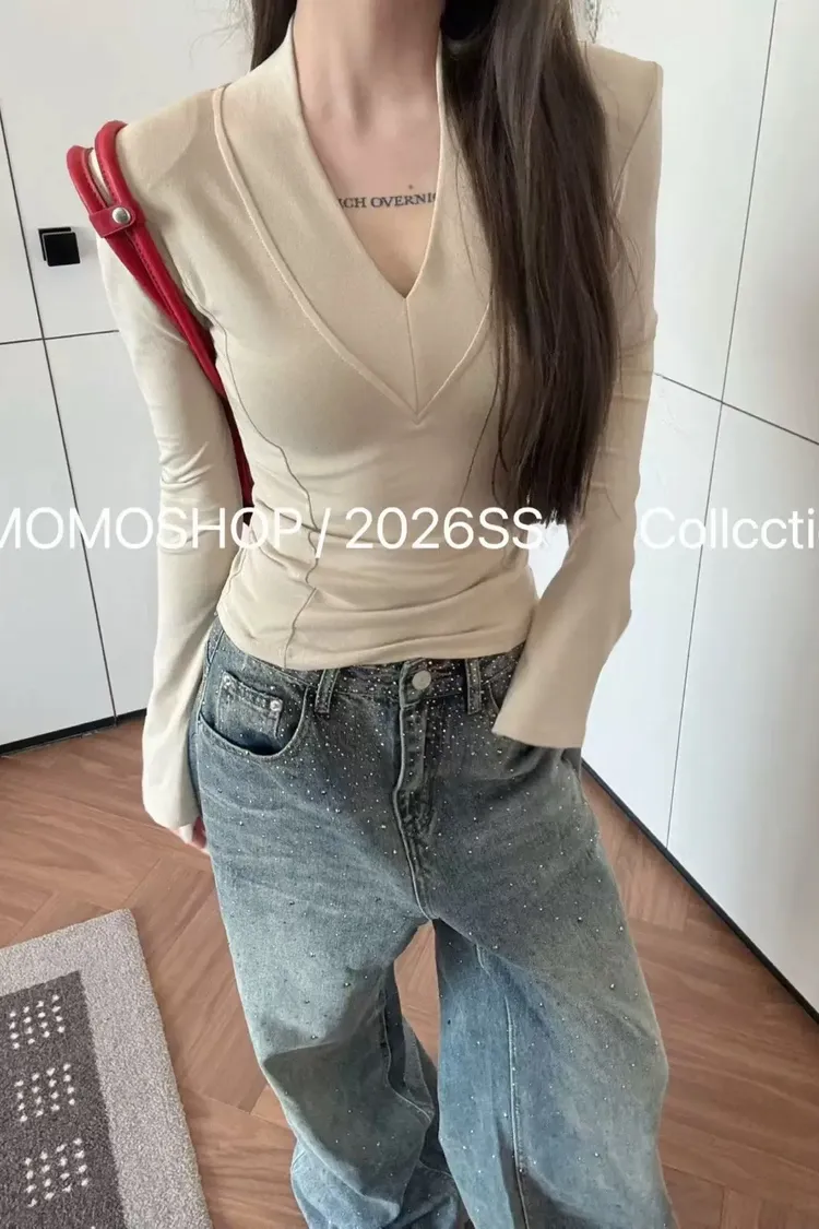 喇叭袖墊肩打底衣