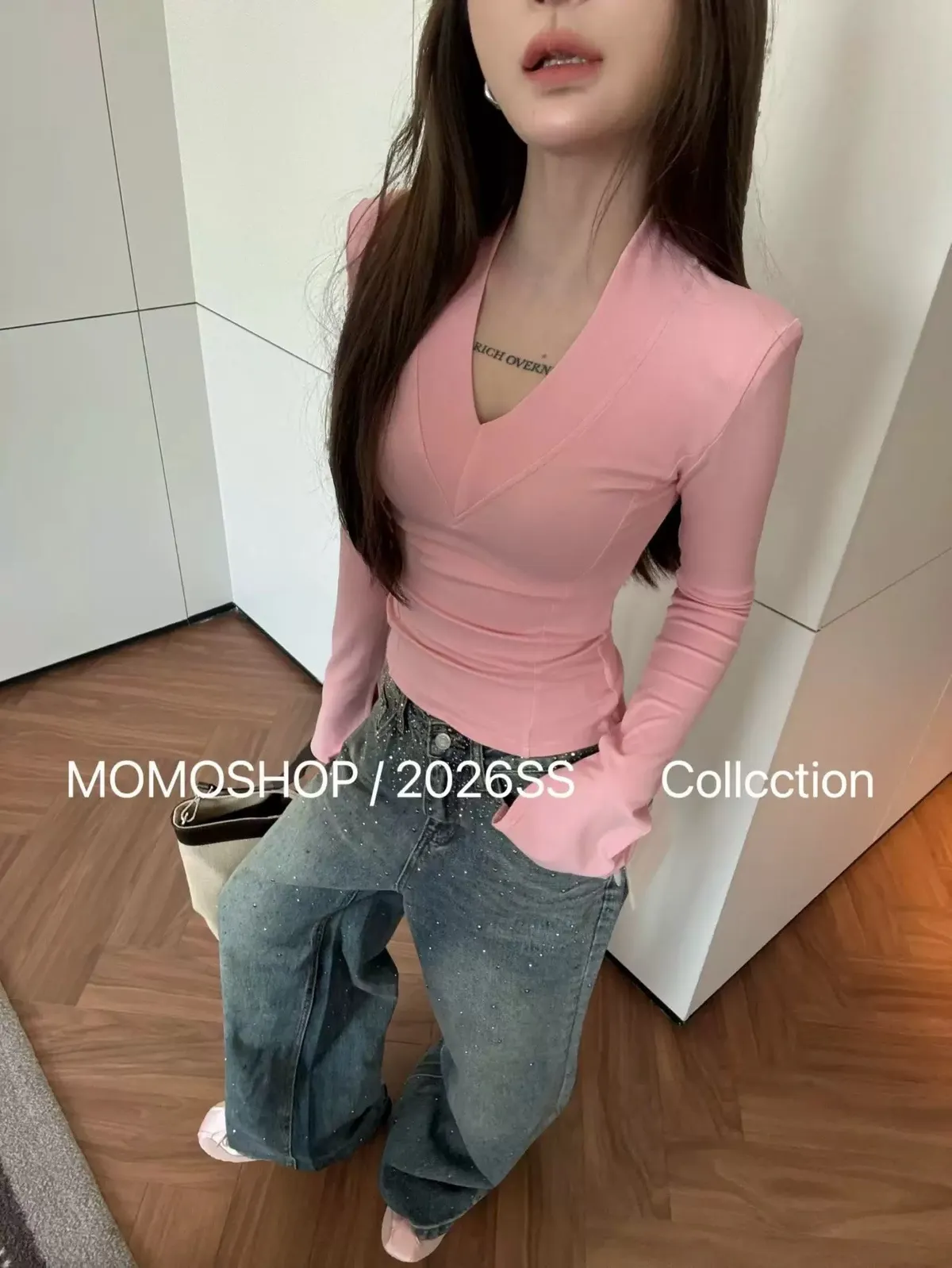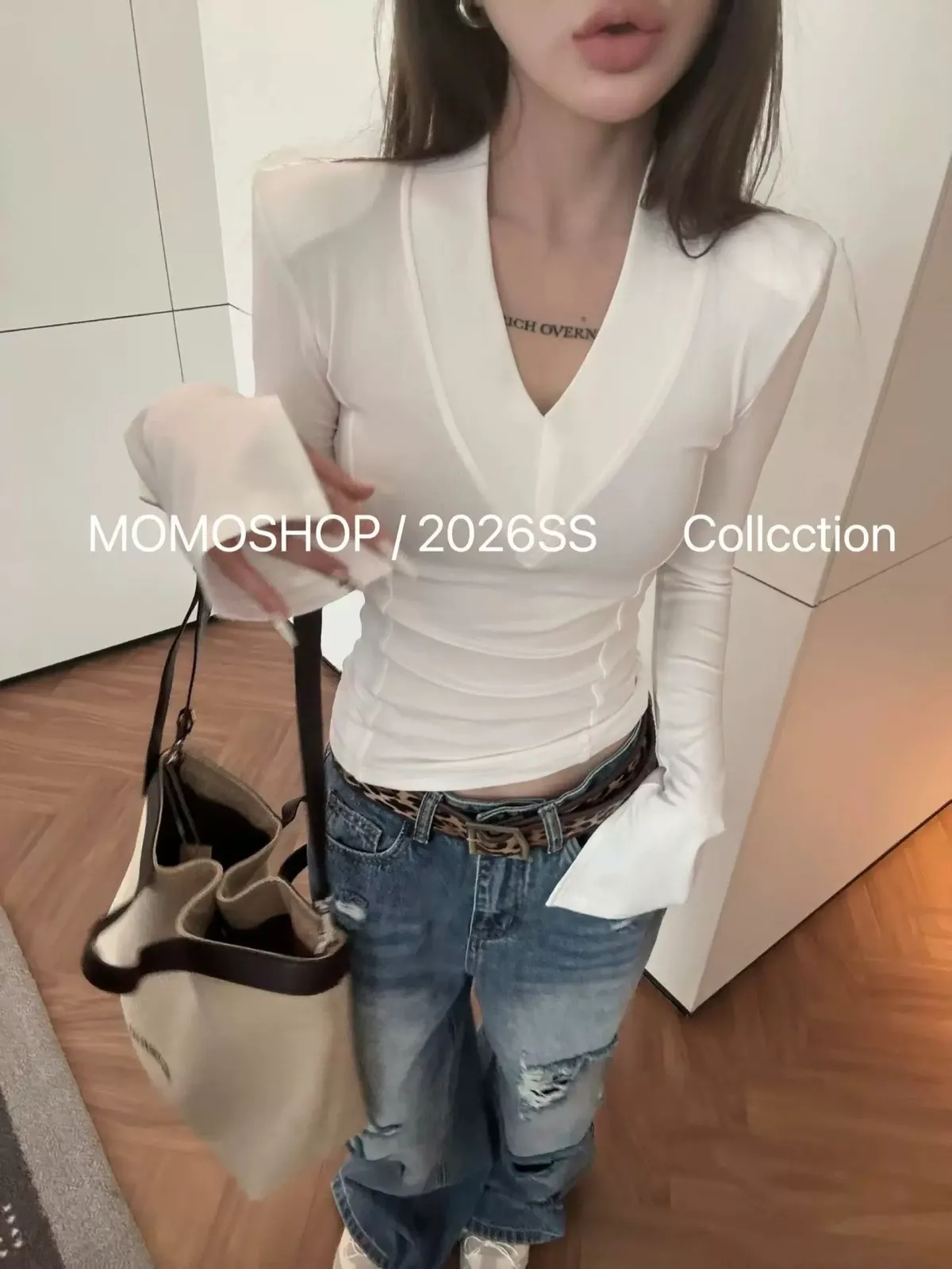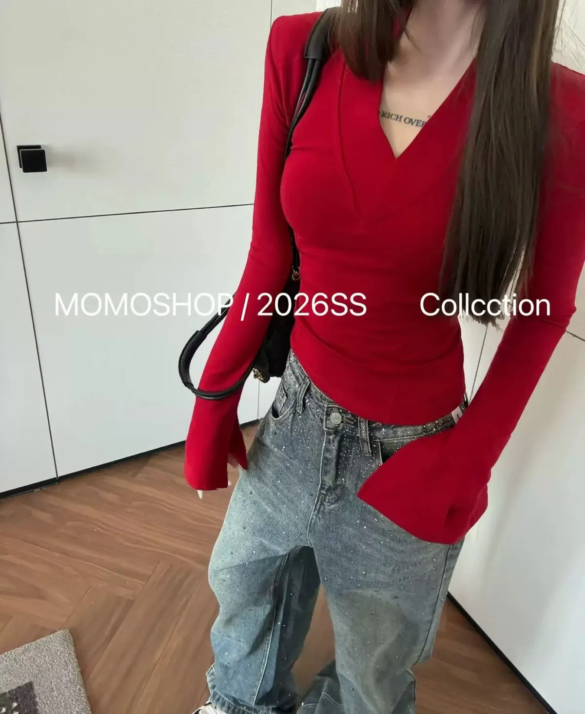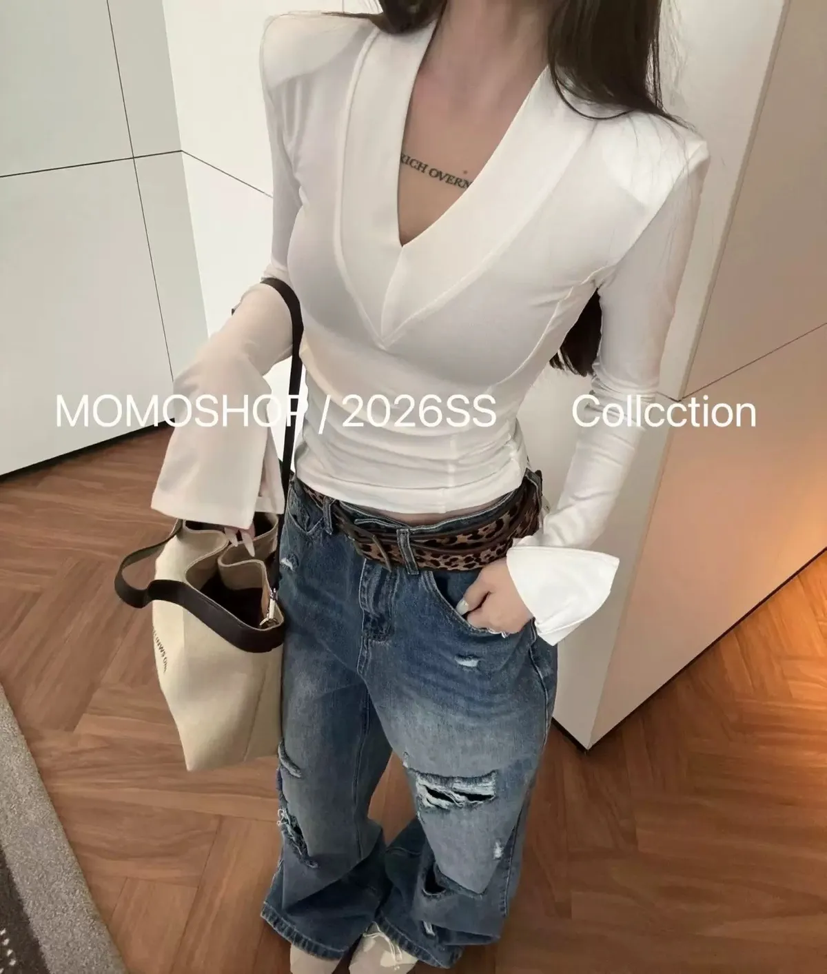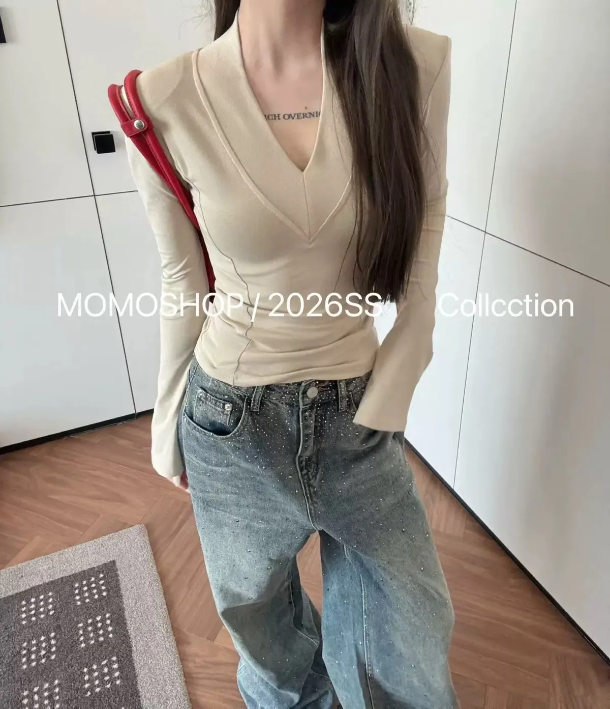 喇叭袖墊肩打底衣