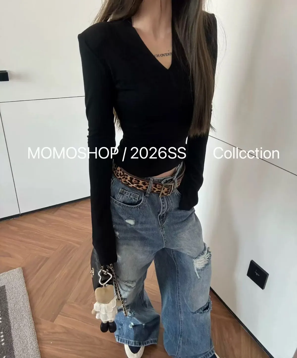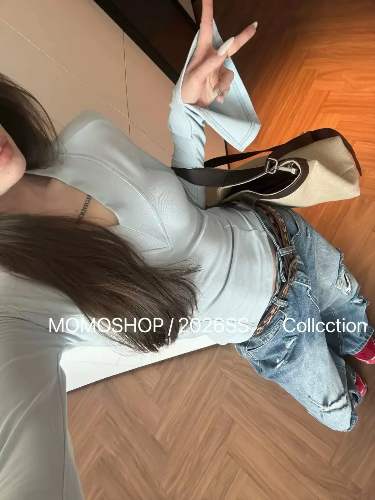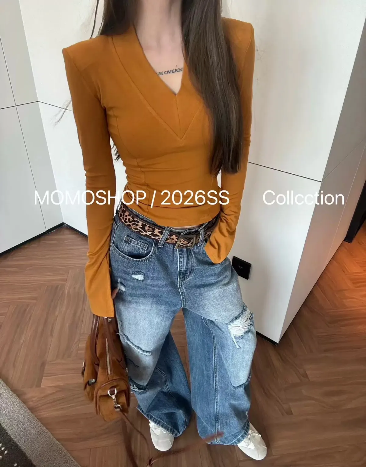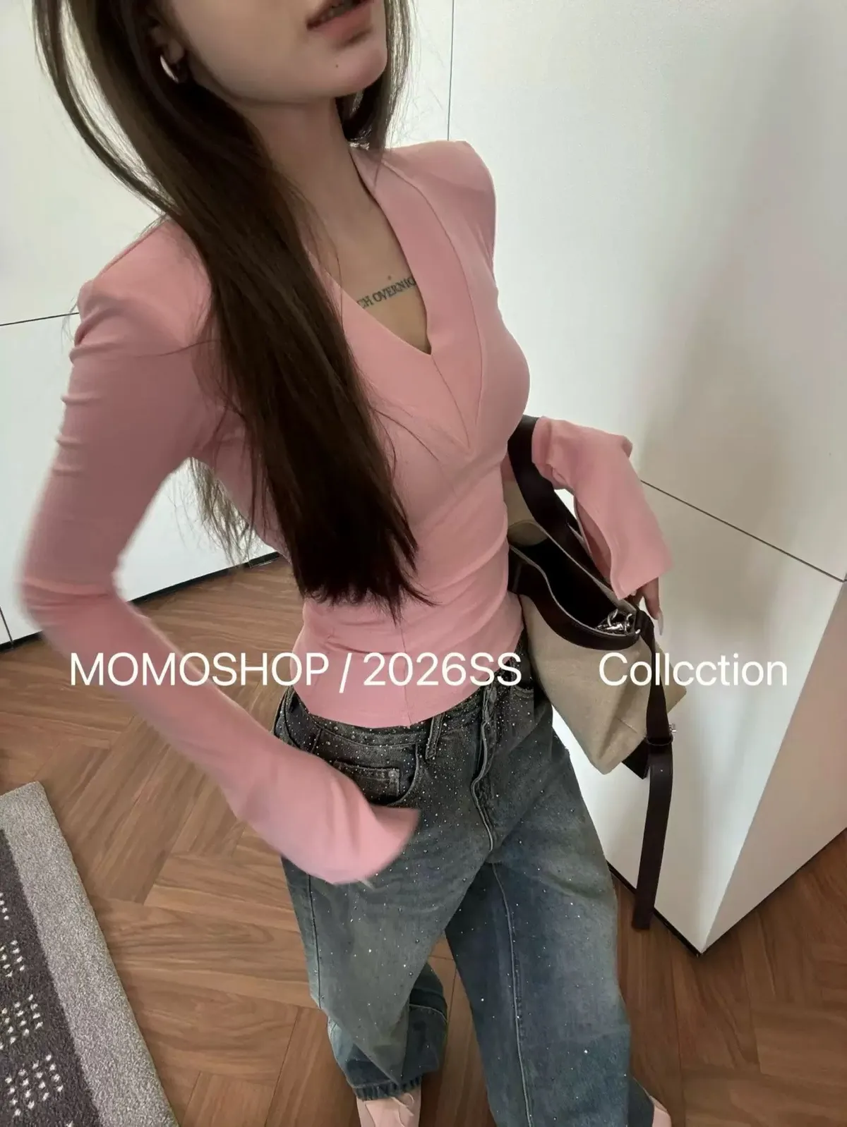 喇叭袖墊肩打底衣