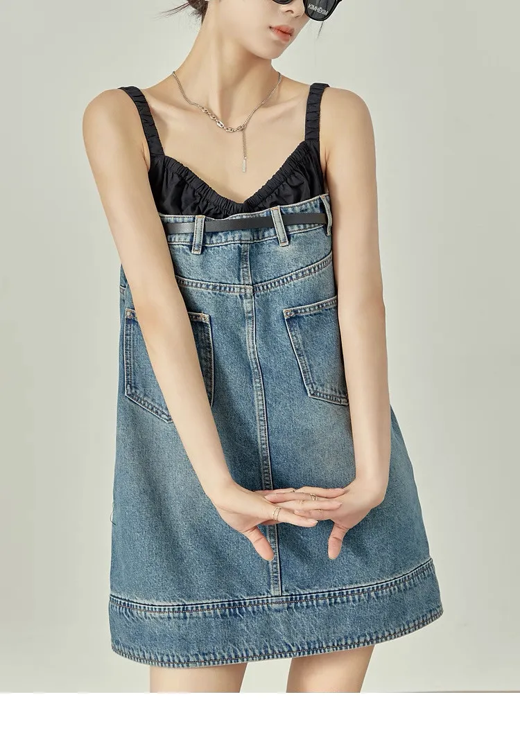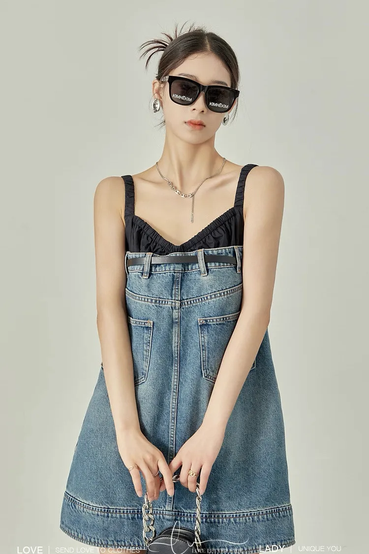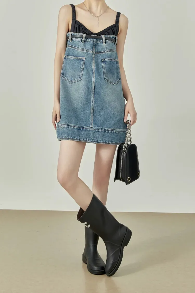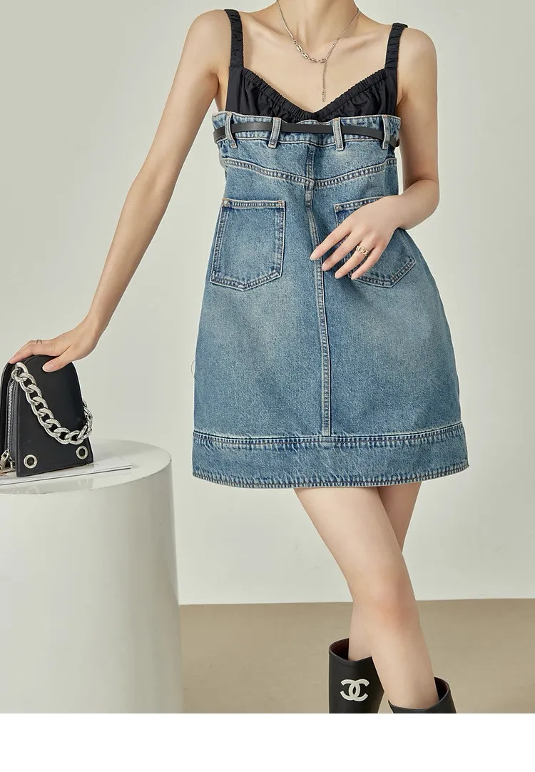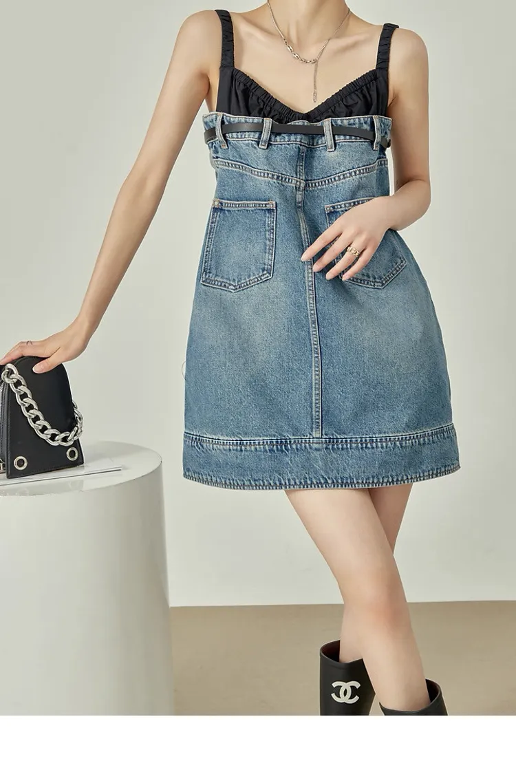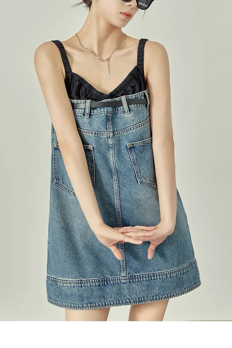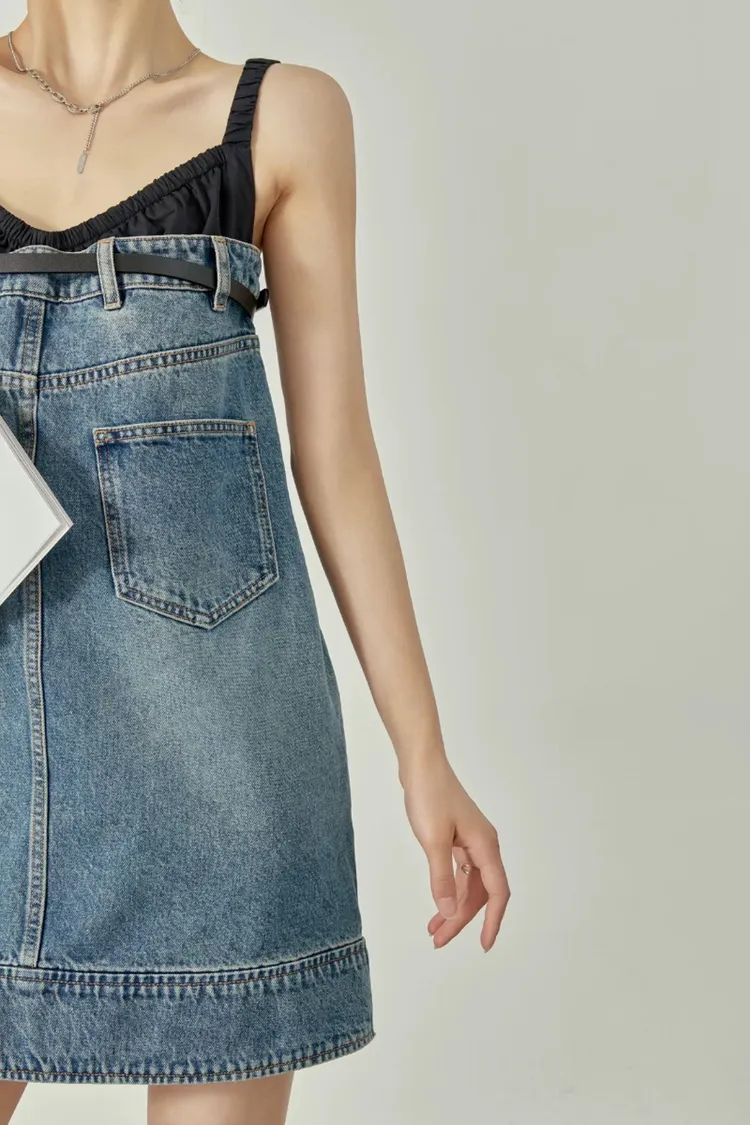 拼接牛仔洋