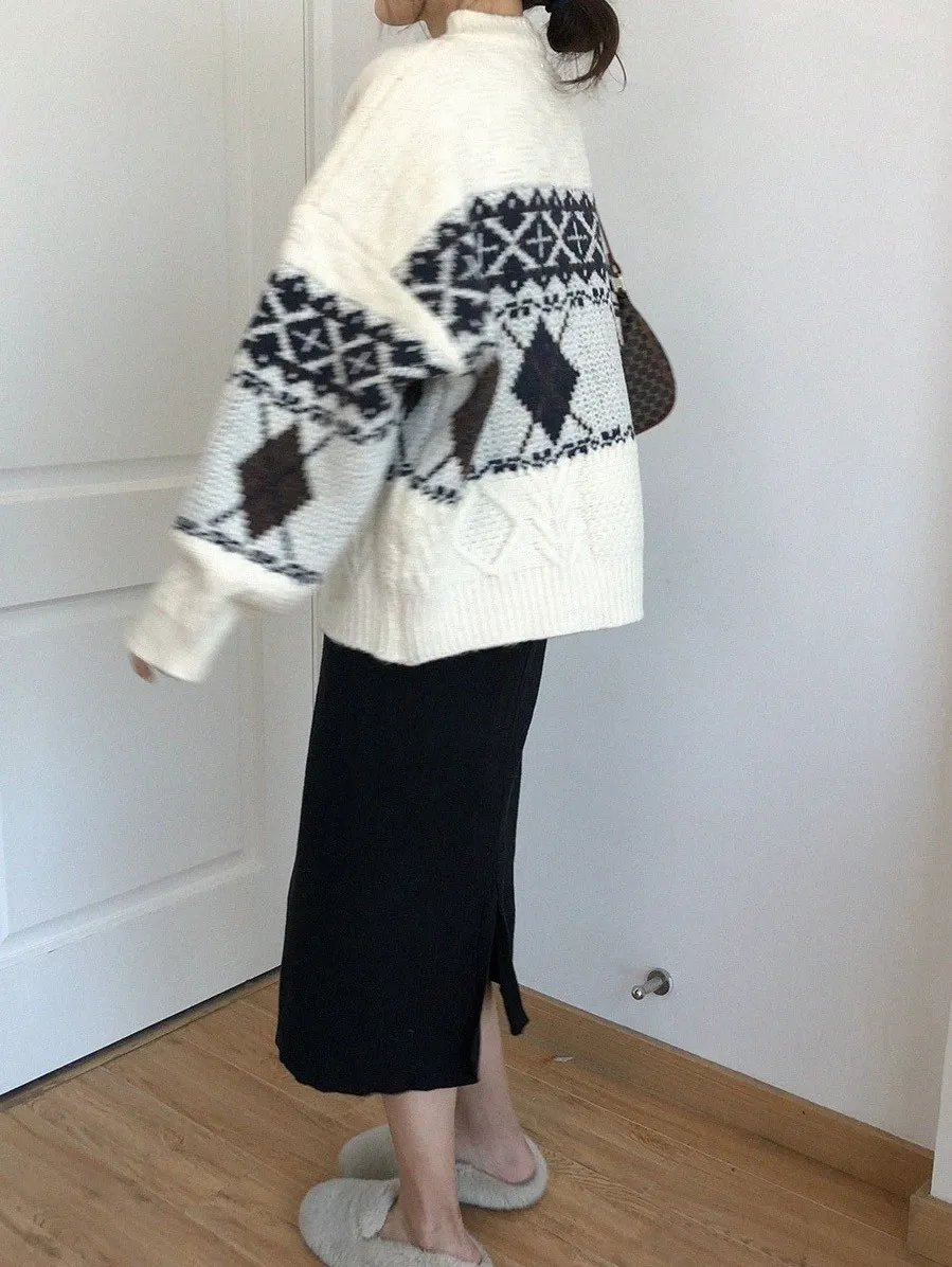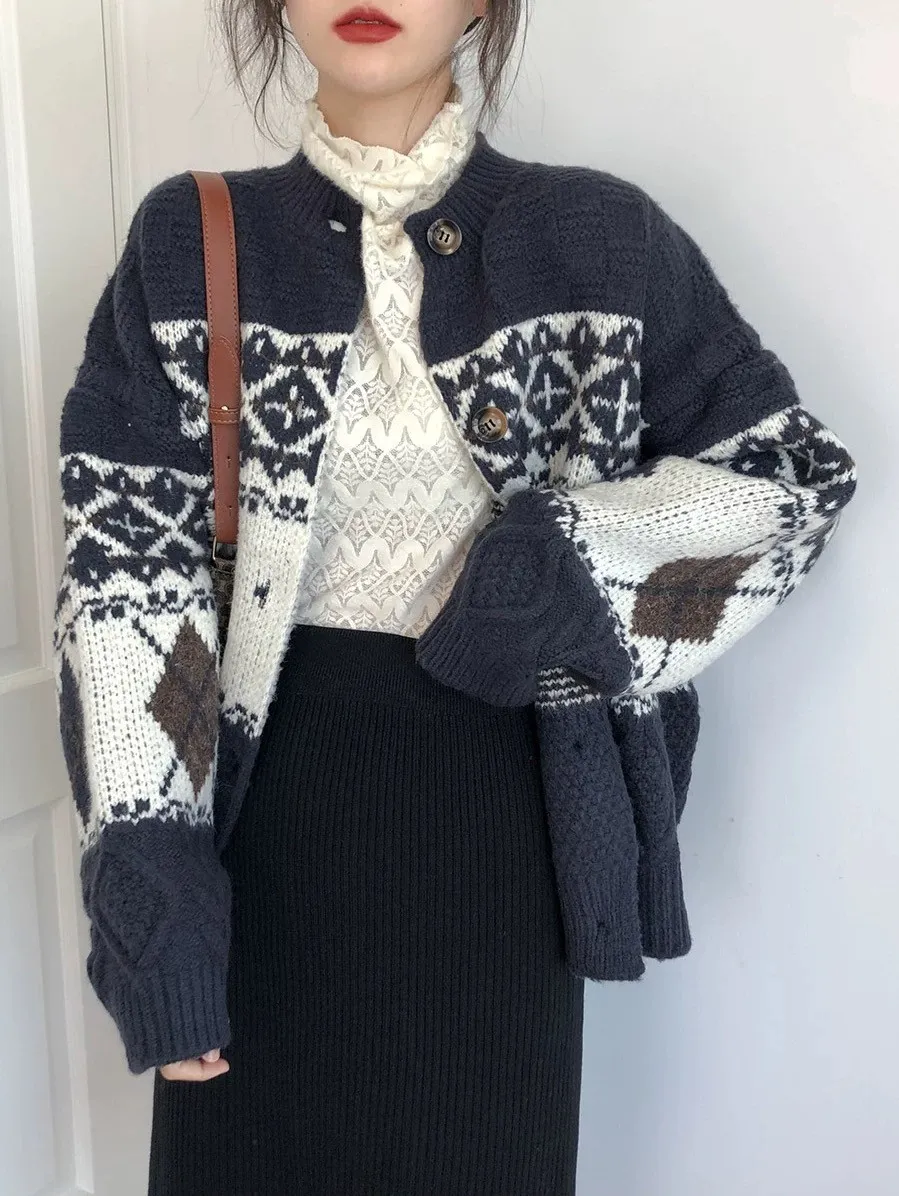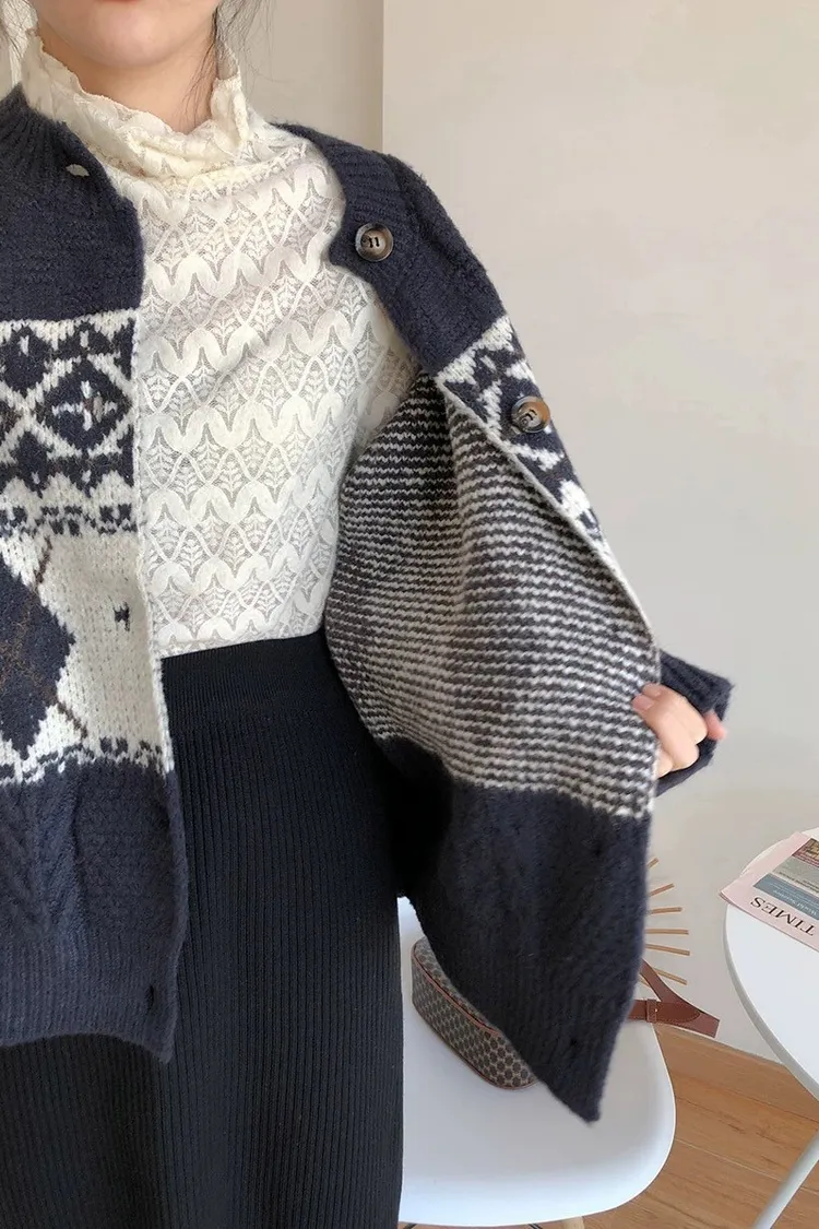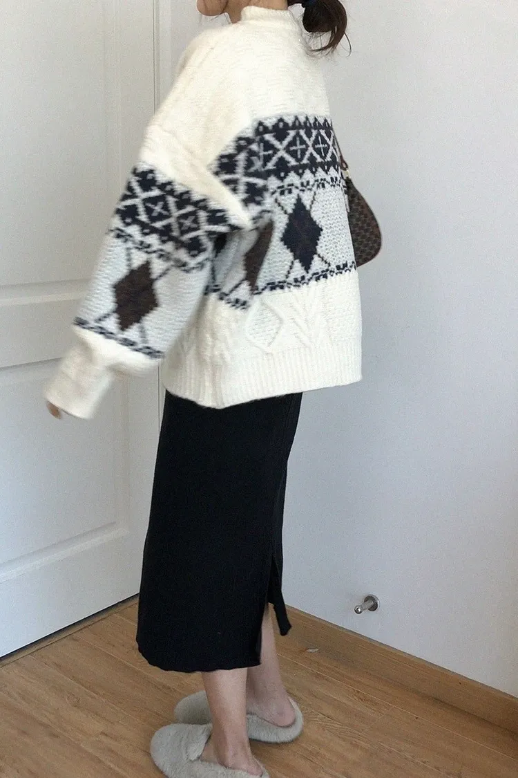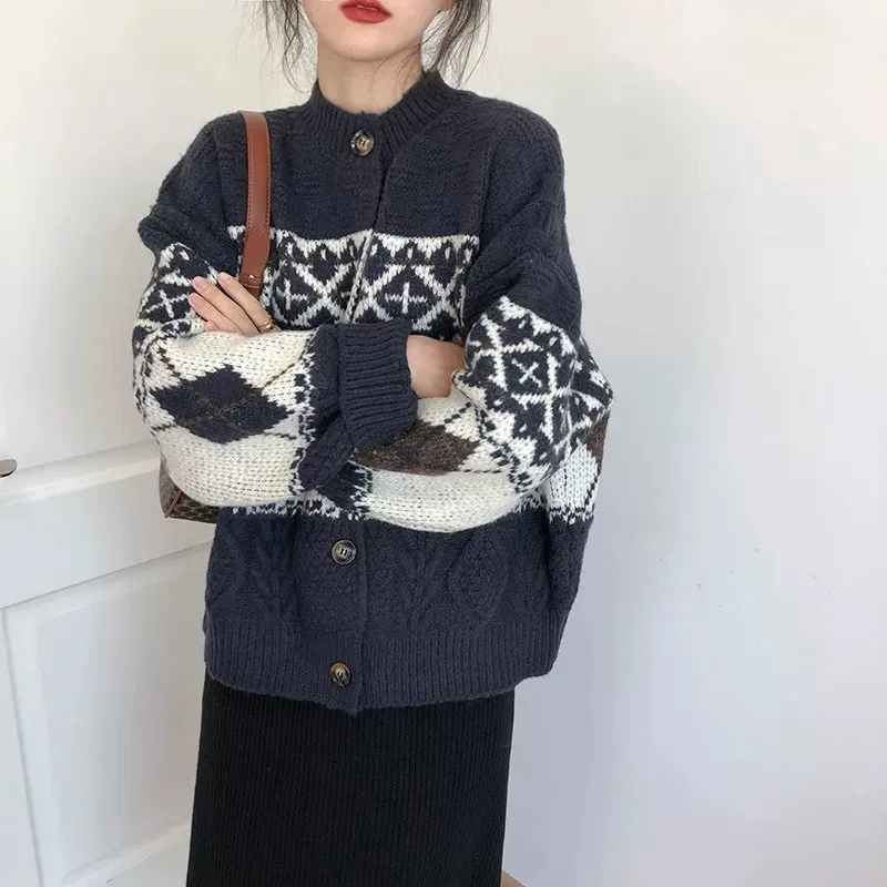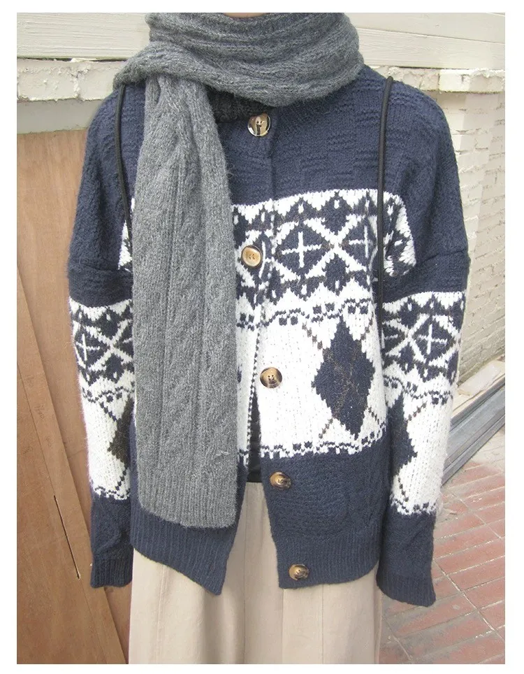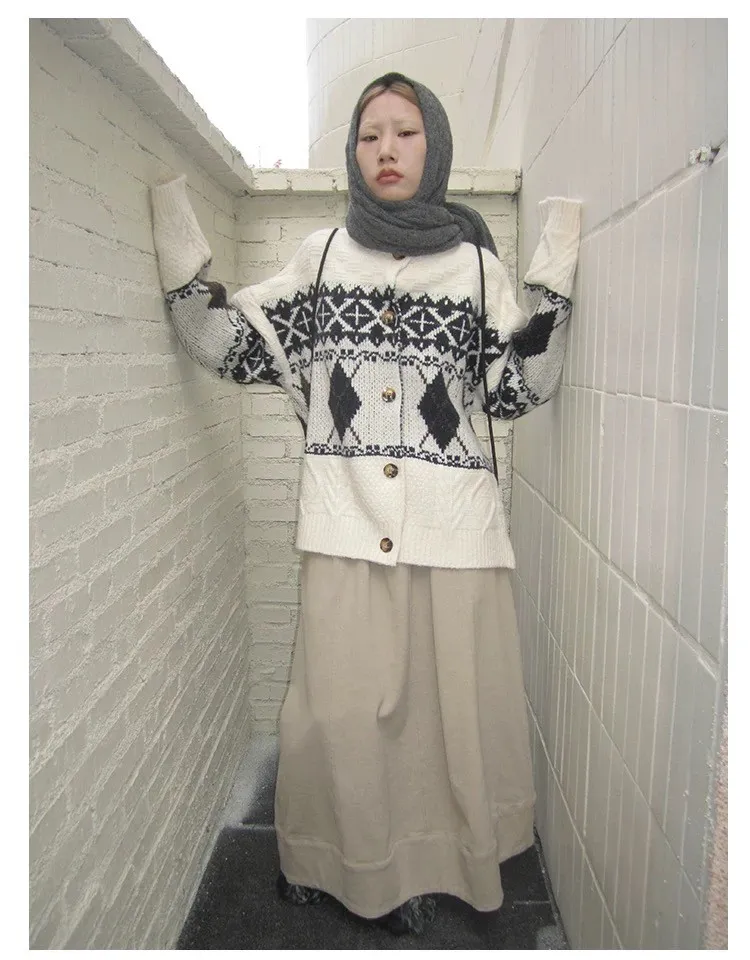 菱格紋開釦毛衣
