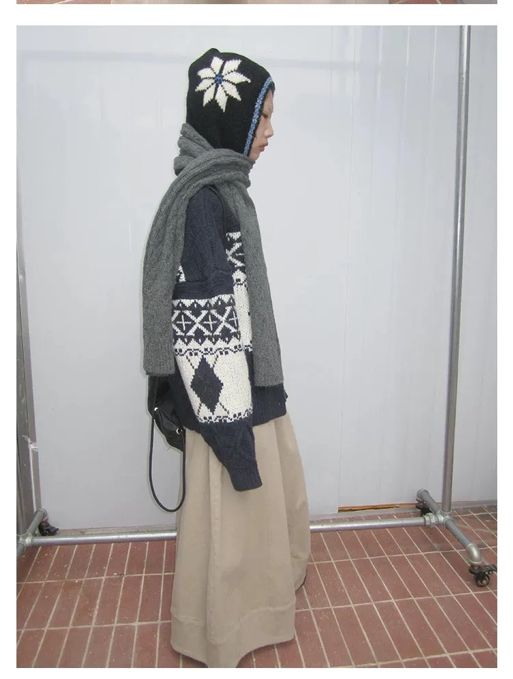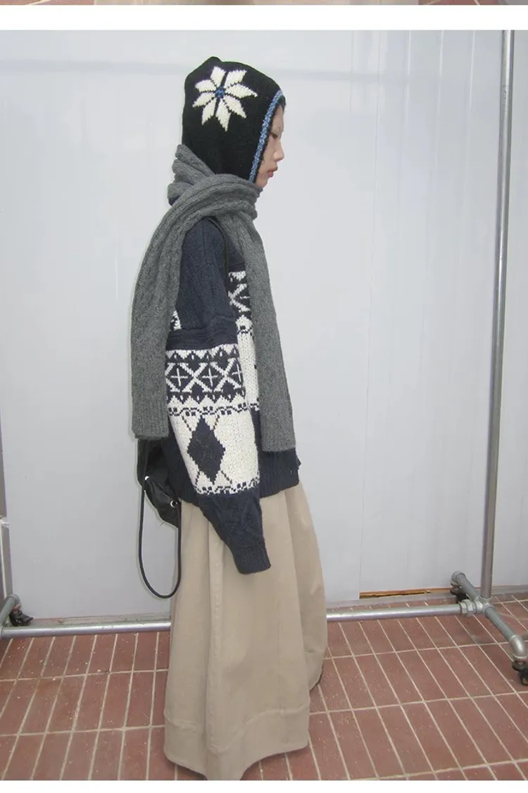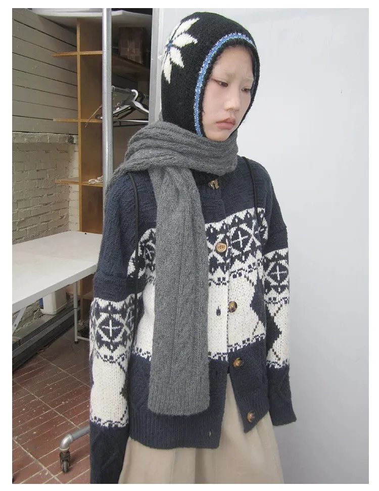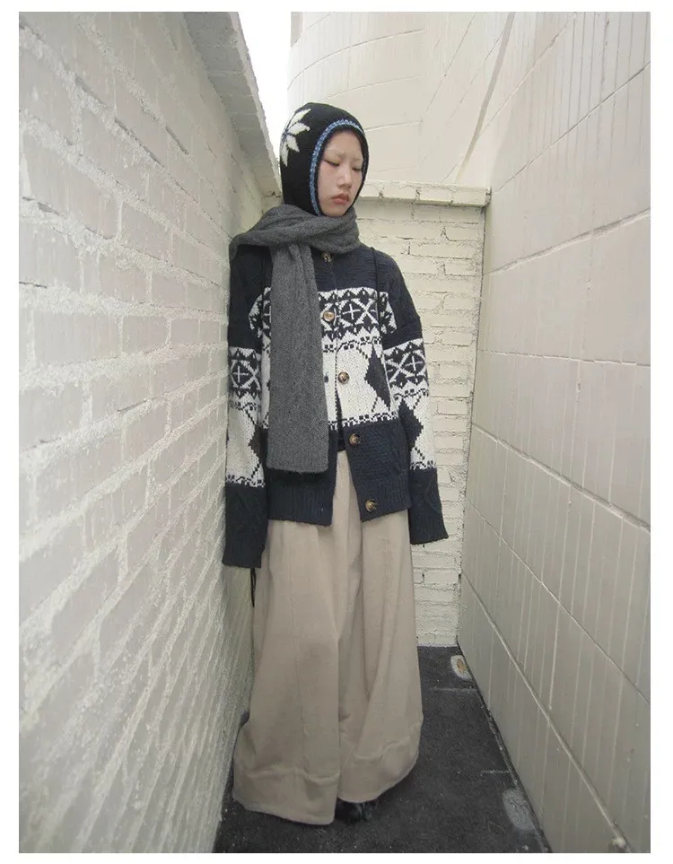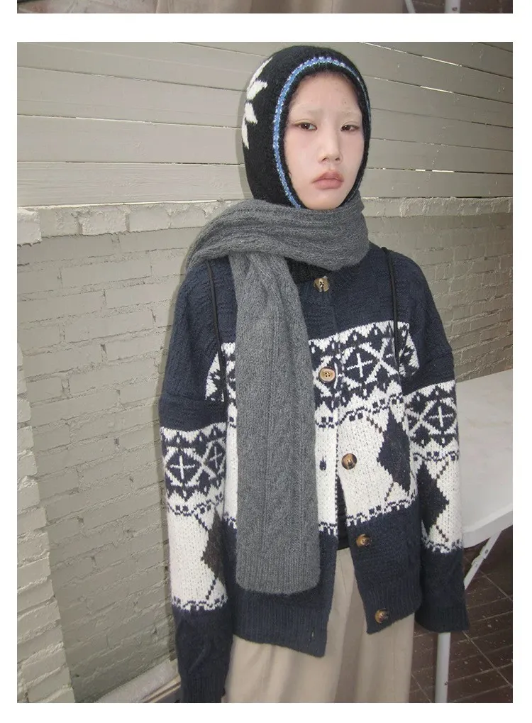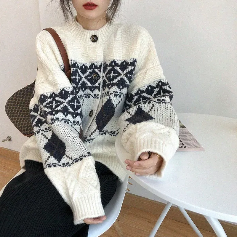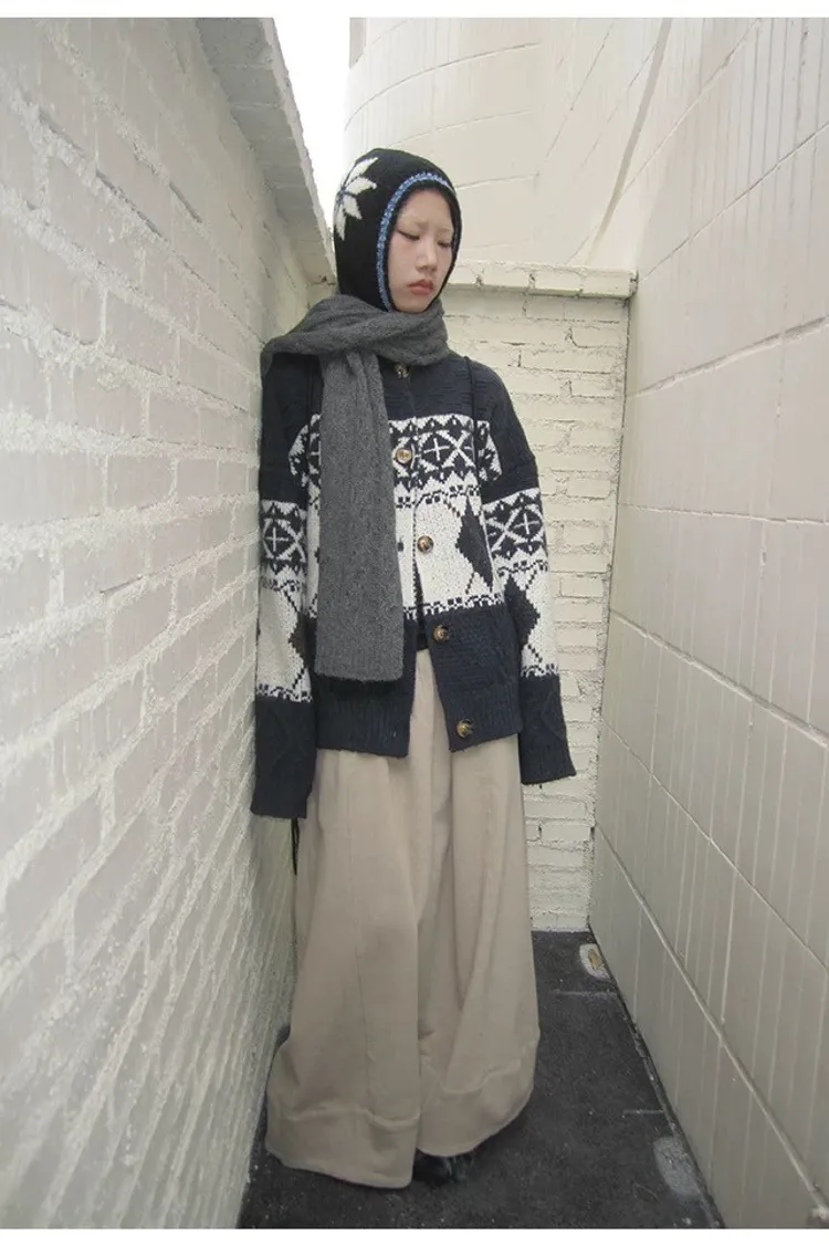 菱格紋開釦毛衣