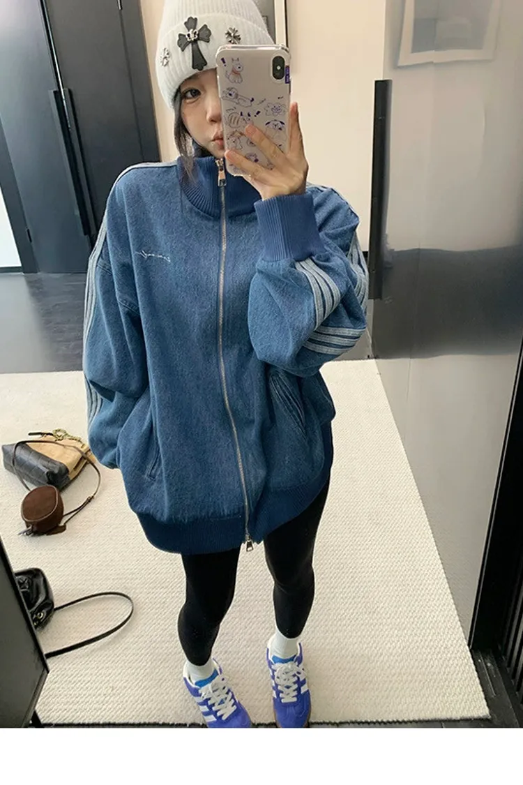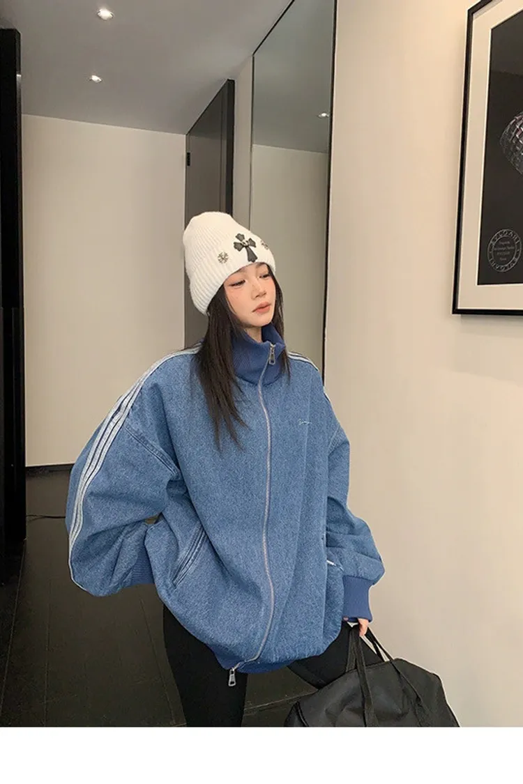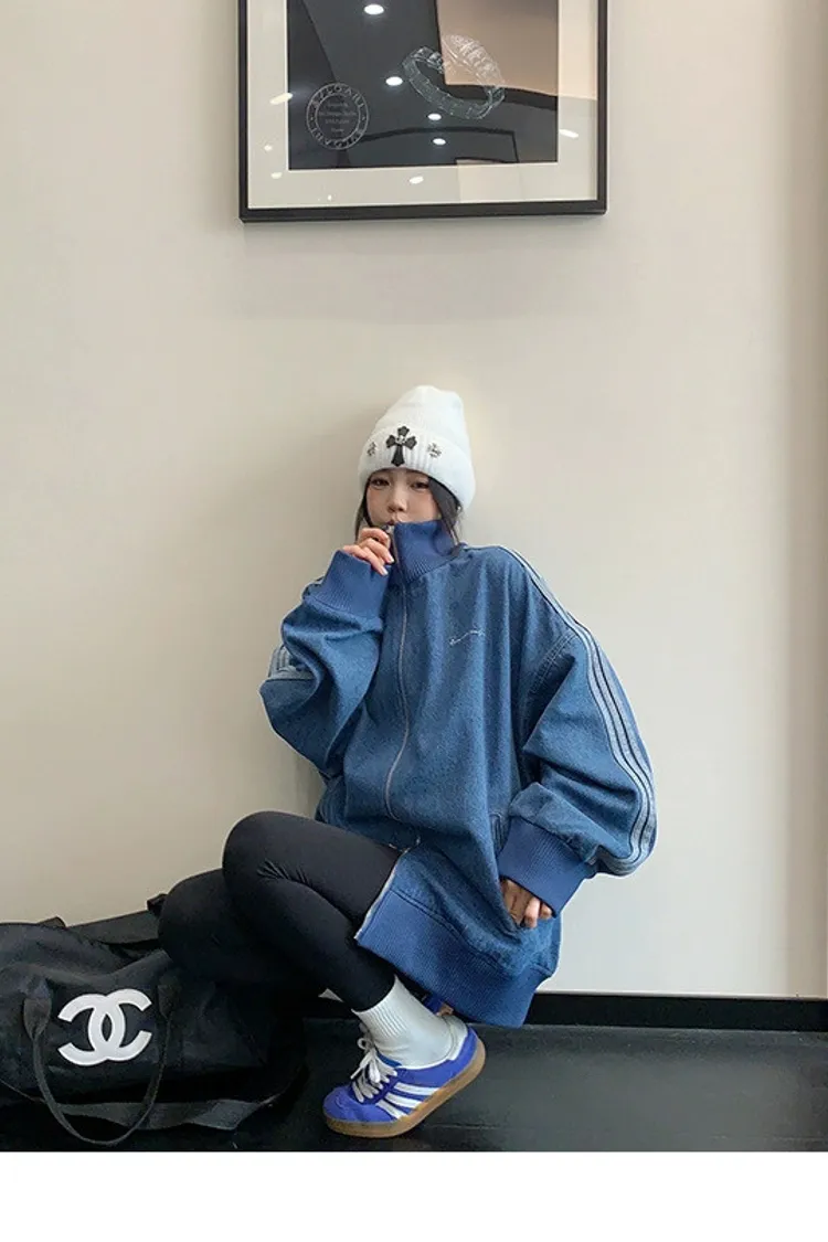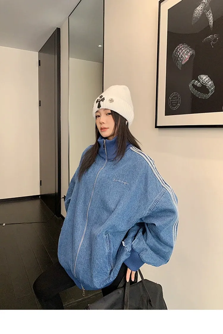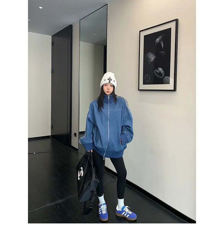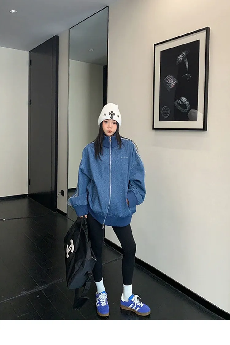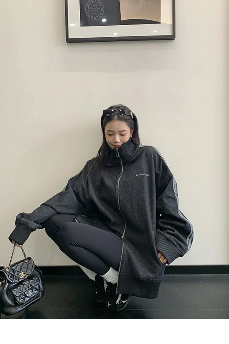 寬鬆雙頭拉鏈牛仔外套