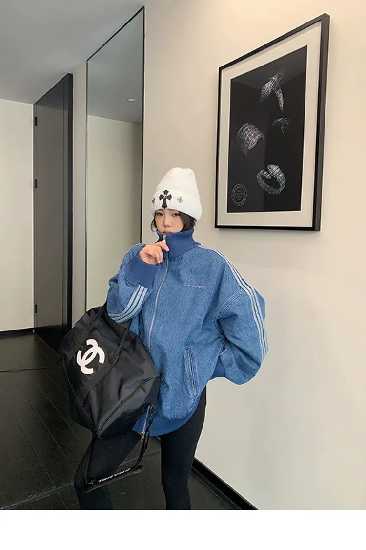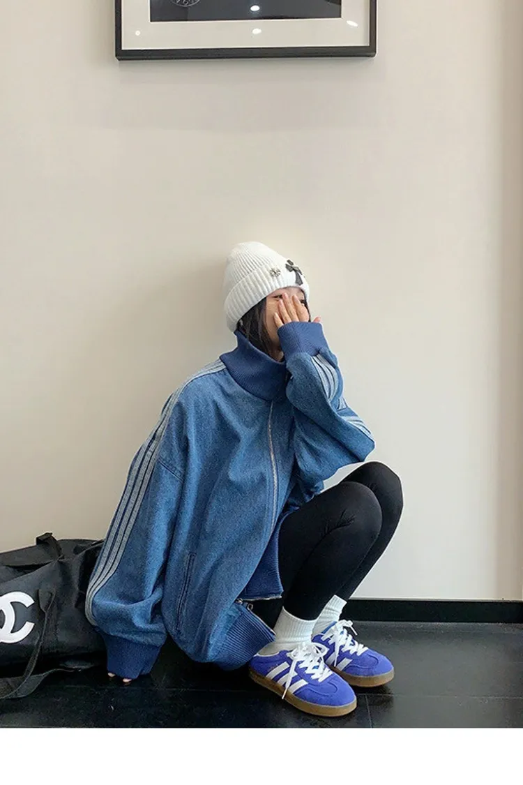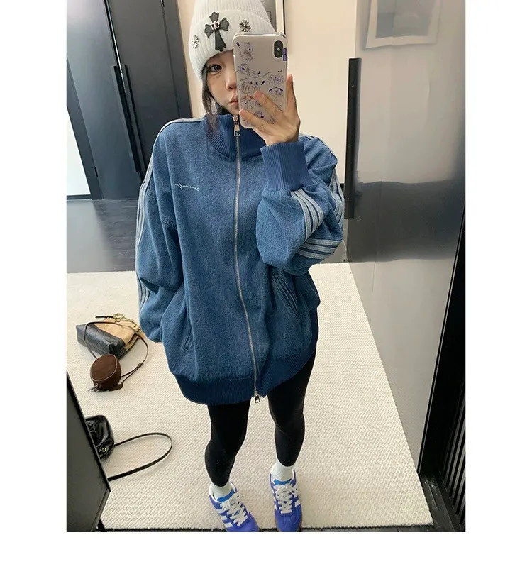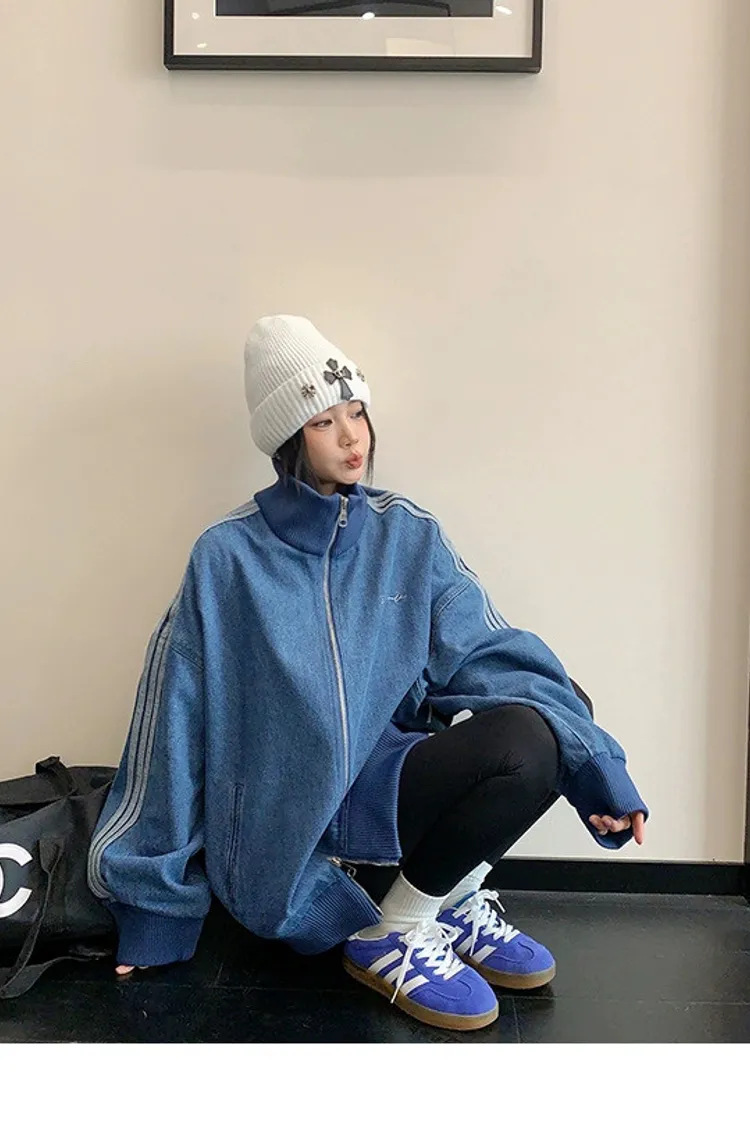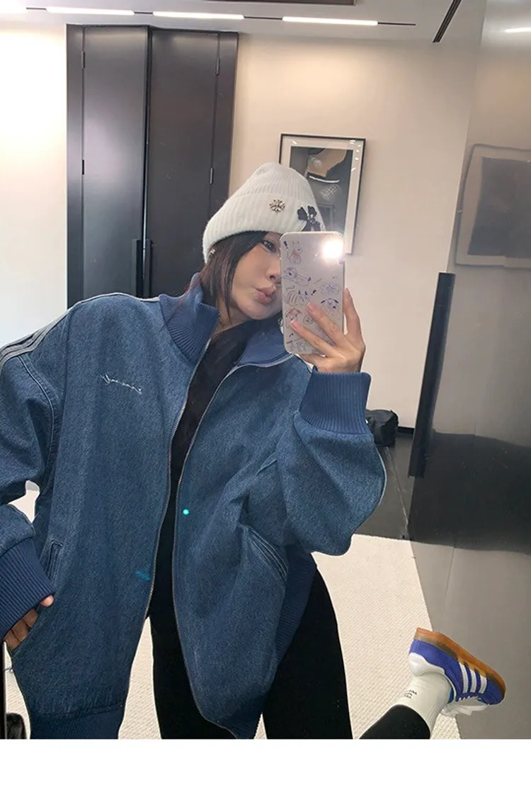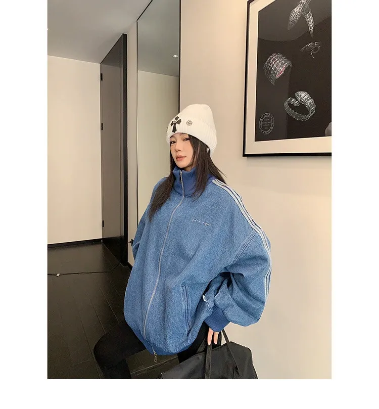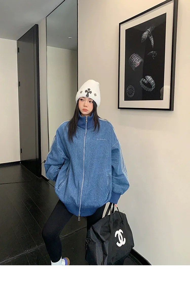 寬鬆雙頭拉鏈牛仔外套