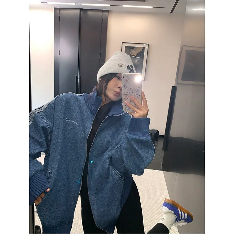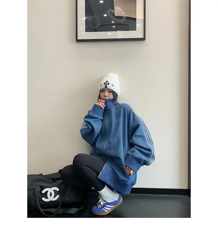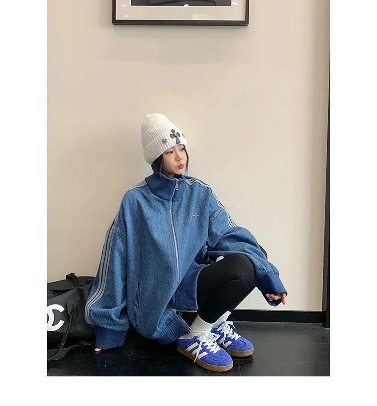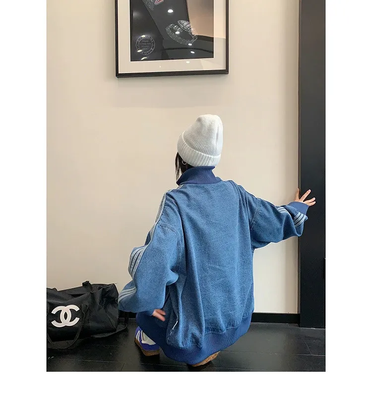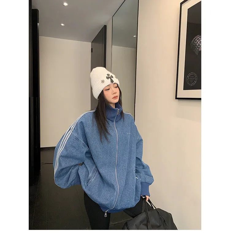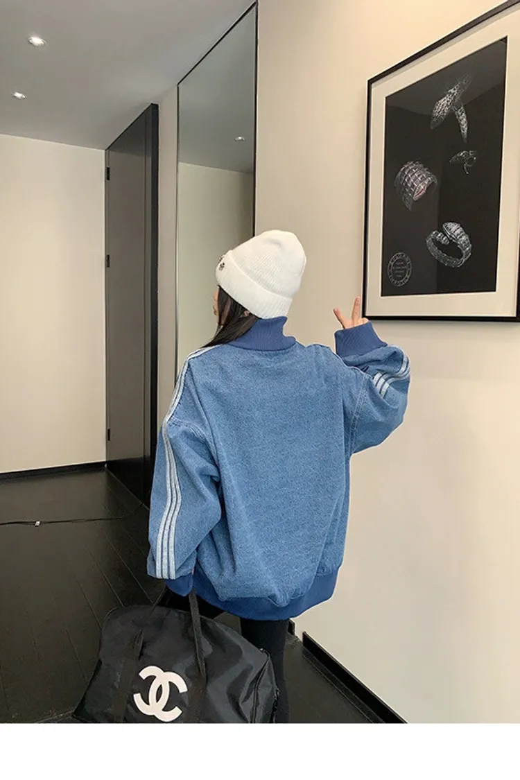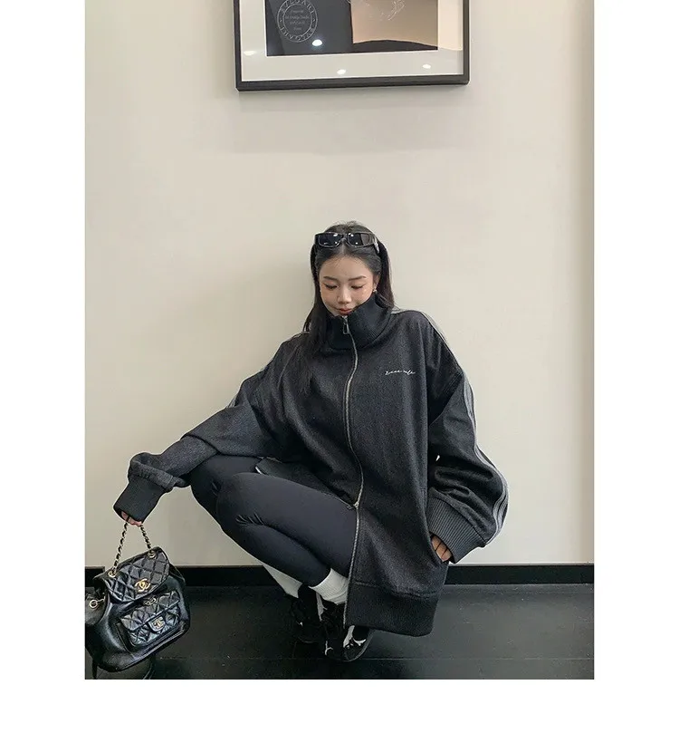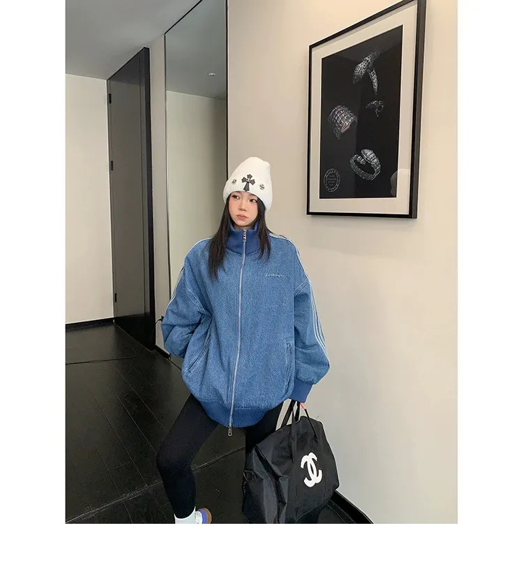 寬鬆雙頭拉鏈牛仔外套