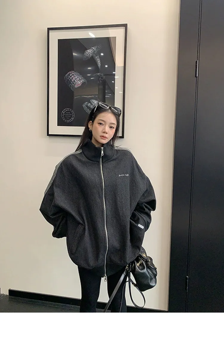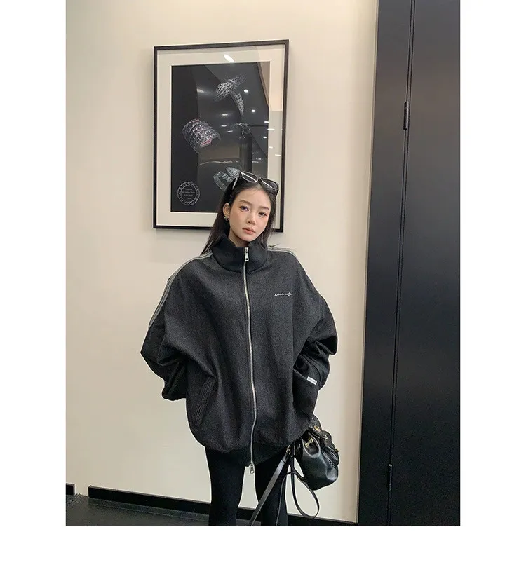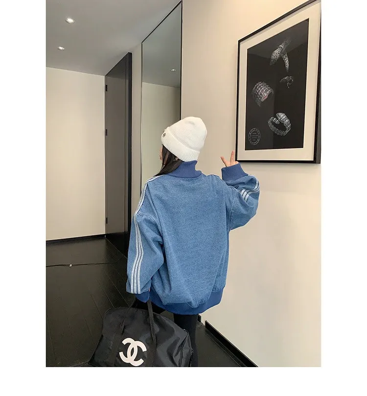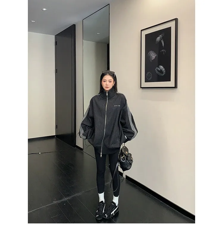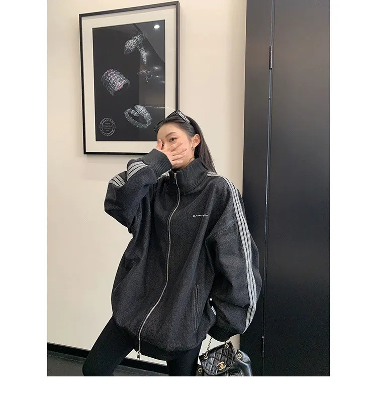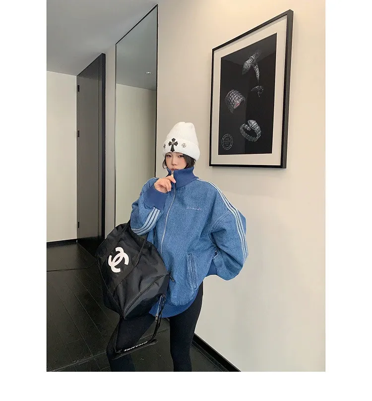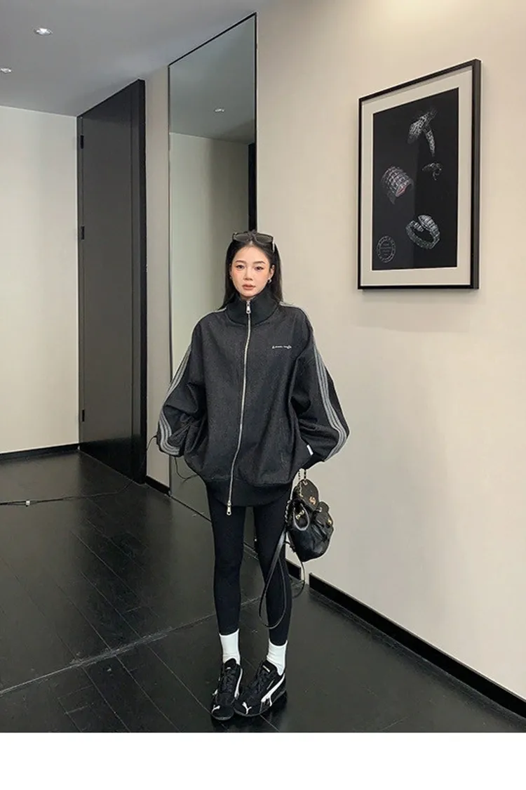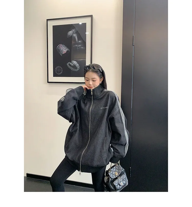 寬鬆雙頭拉鏈牛仔外套