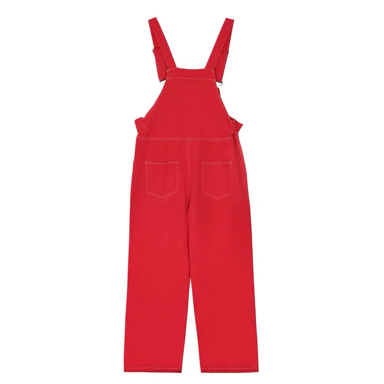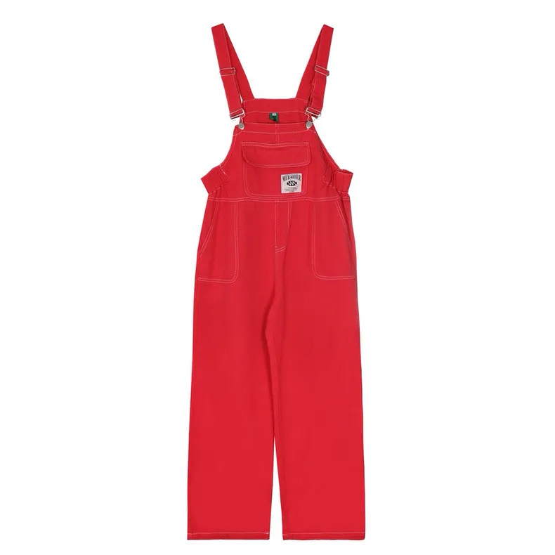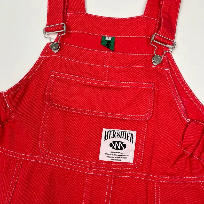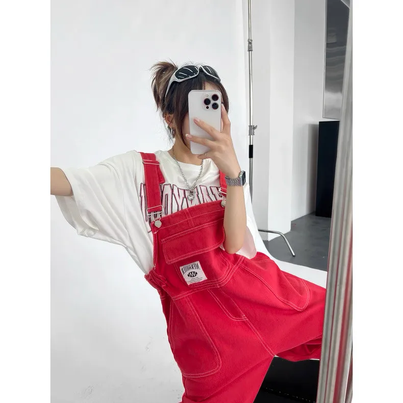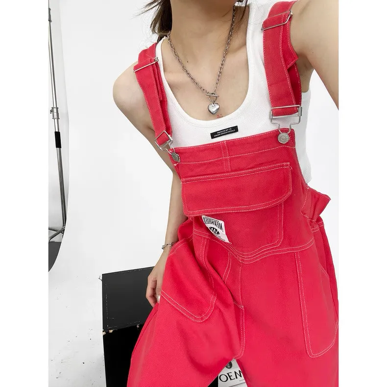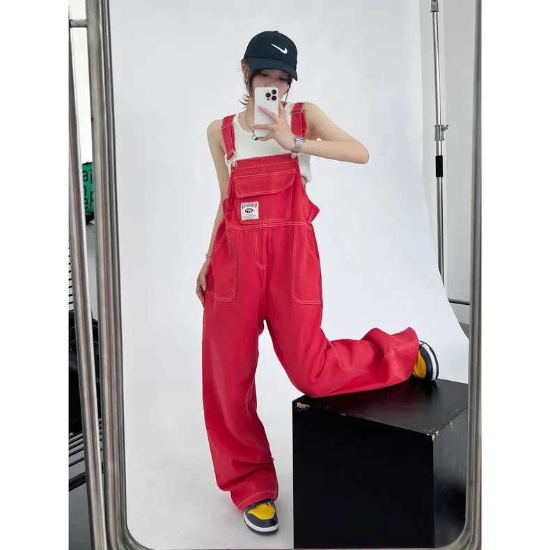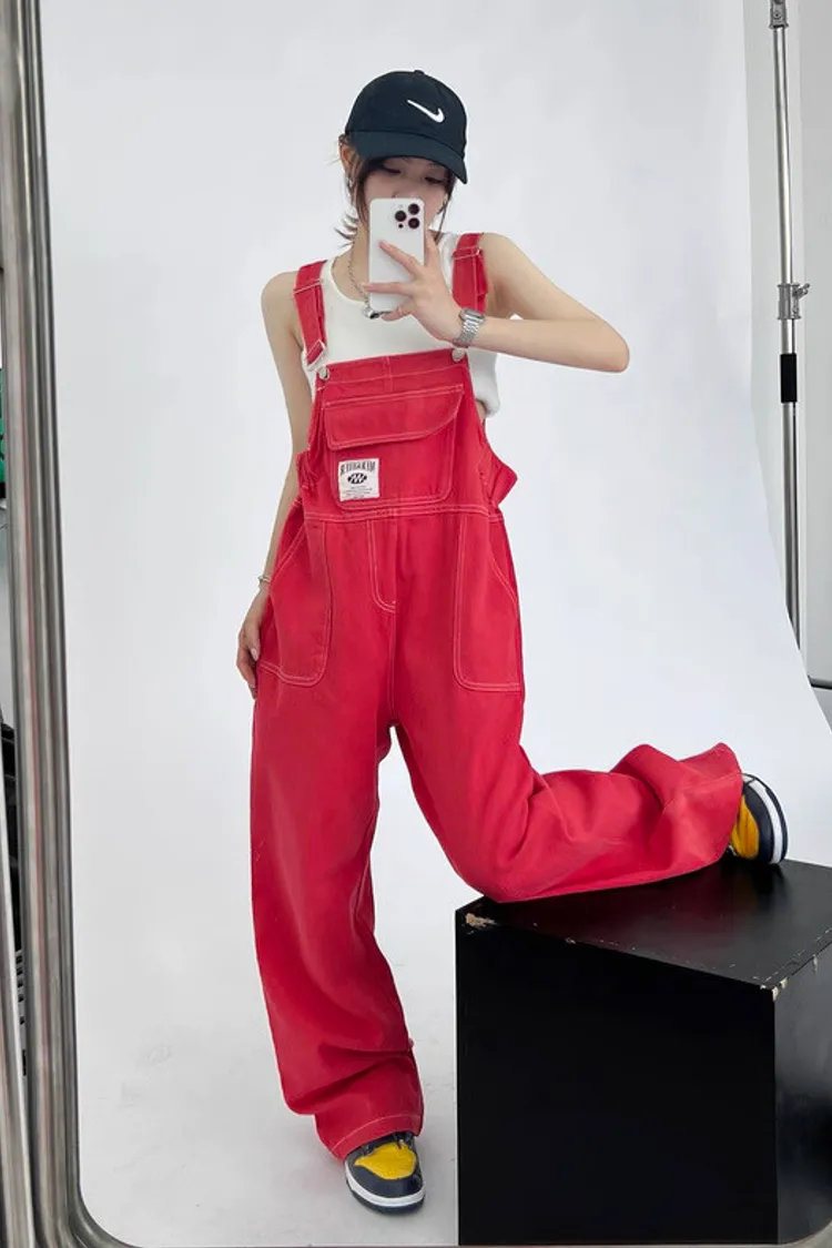 紅色縮腰吊帶褲