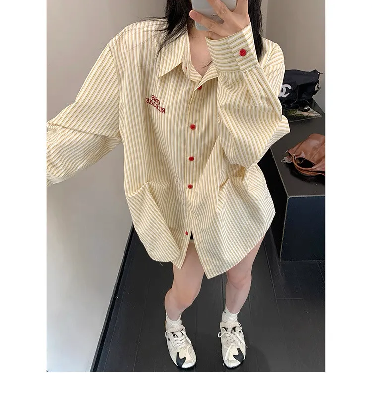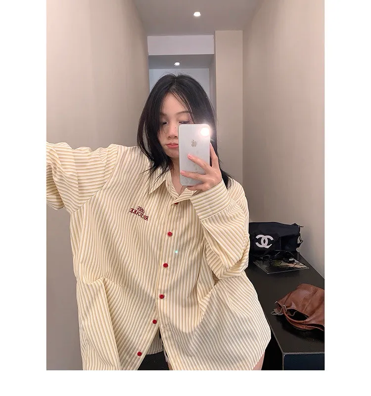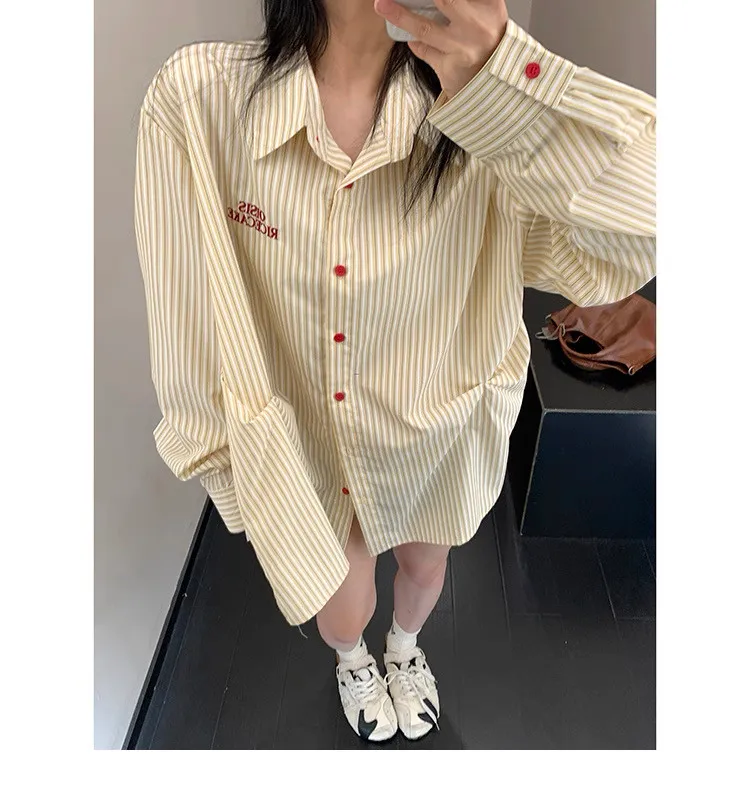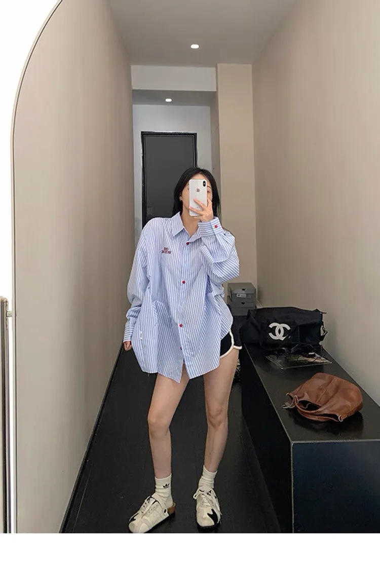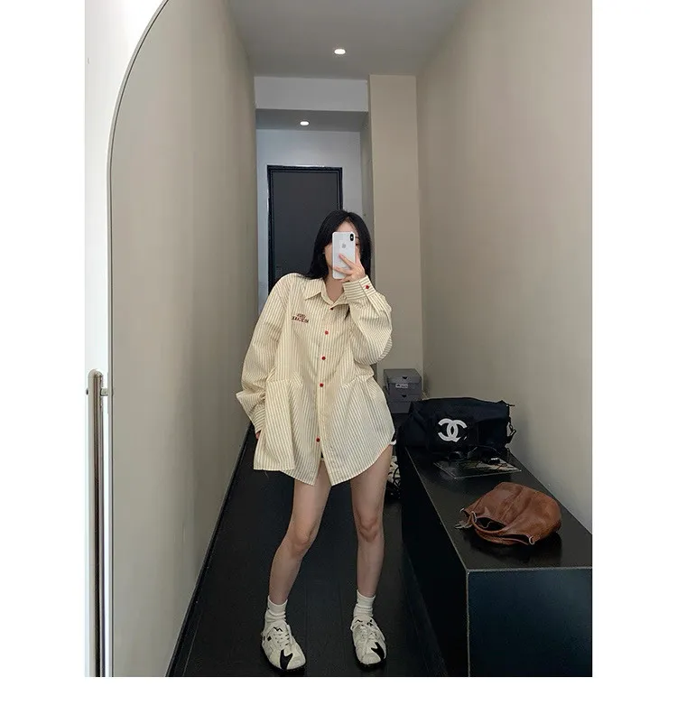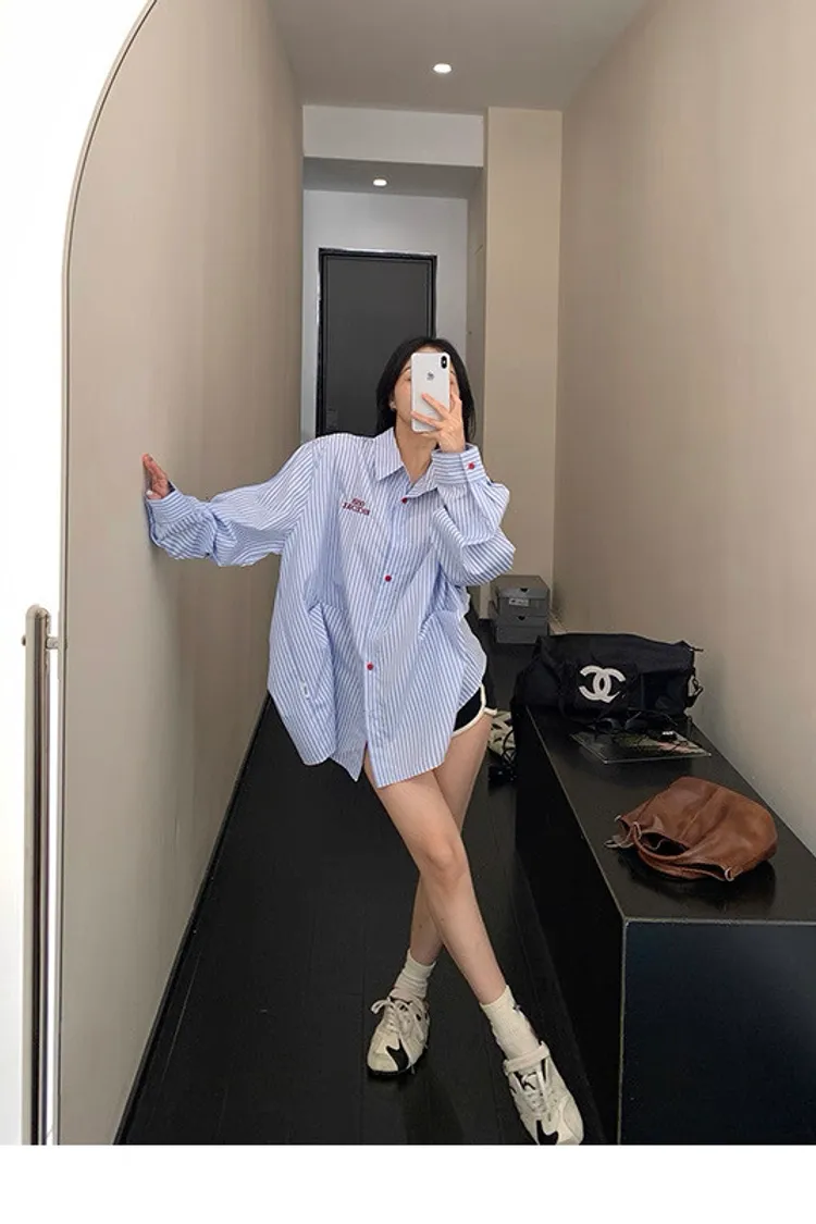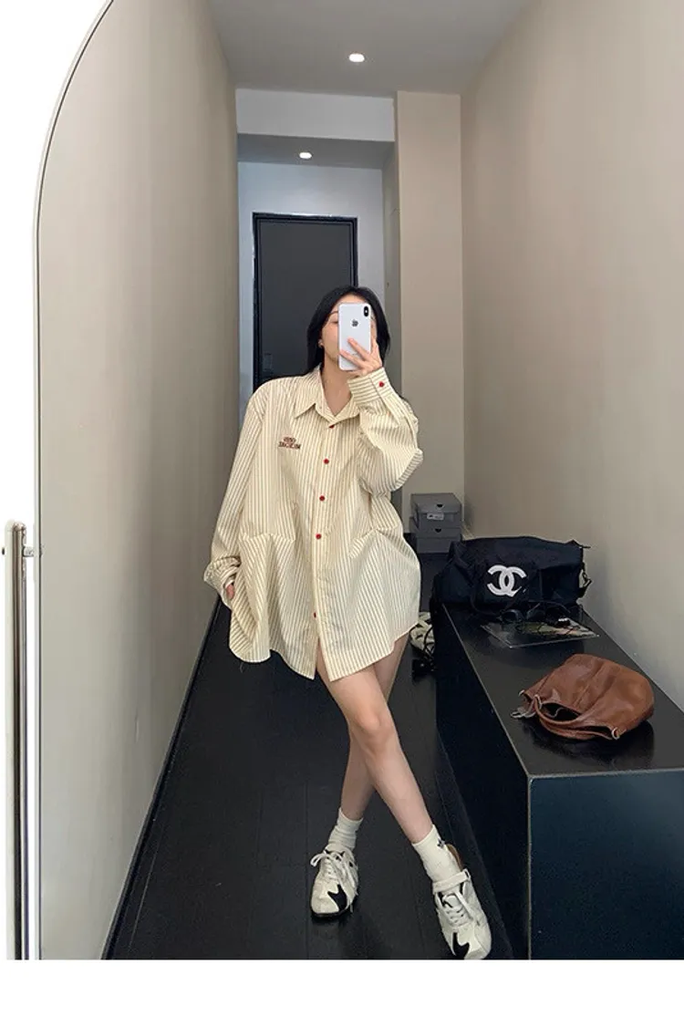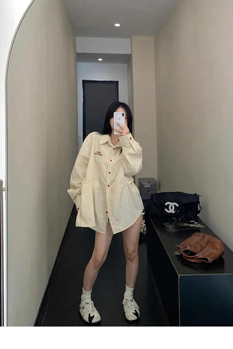 直條撞色釦抓一摺襯衫