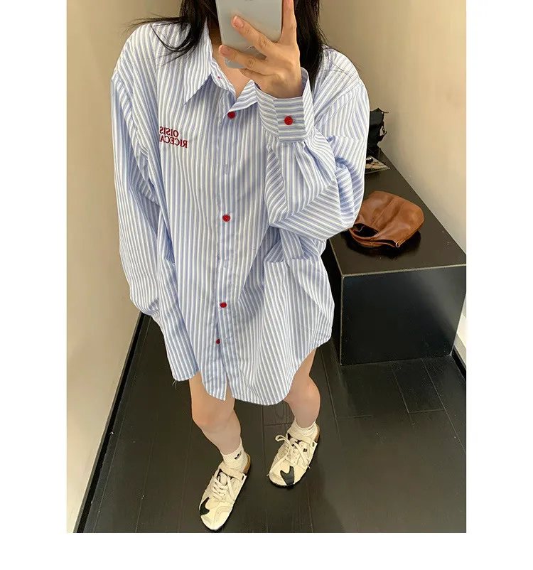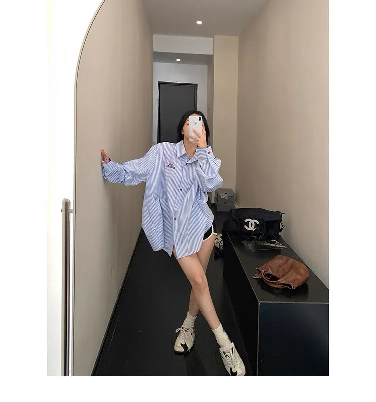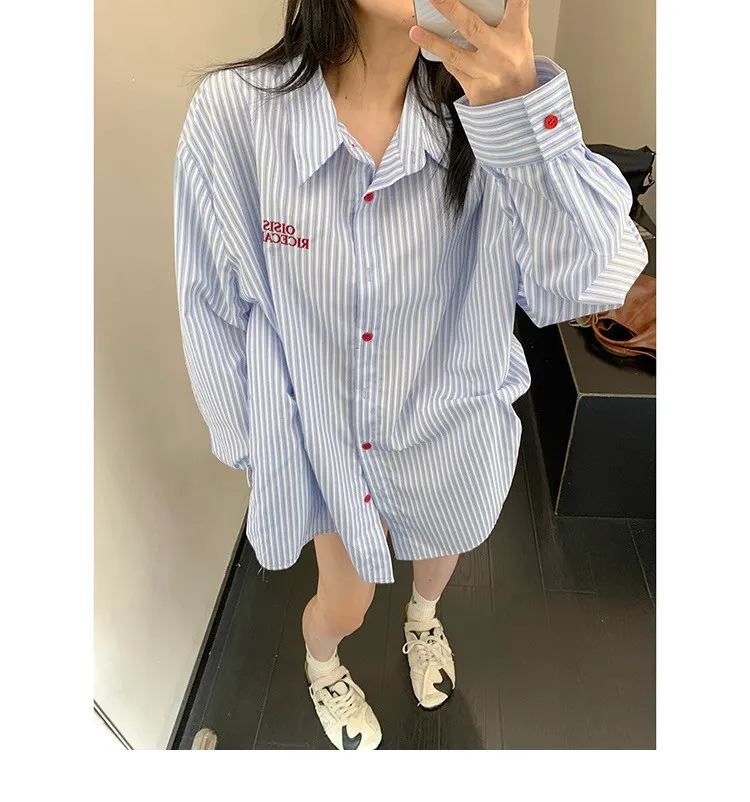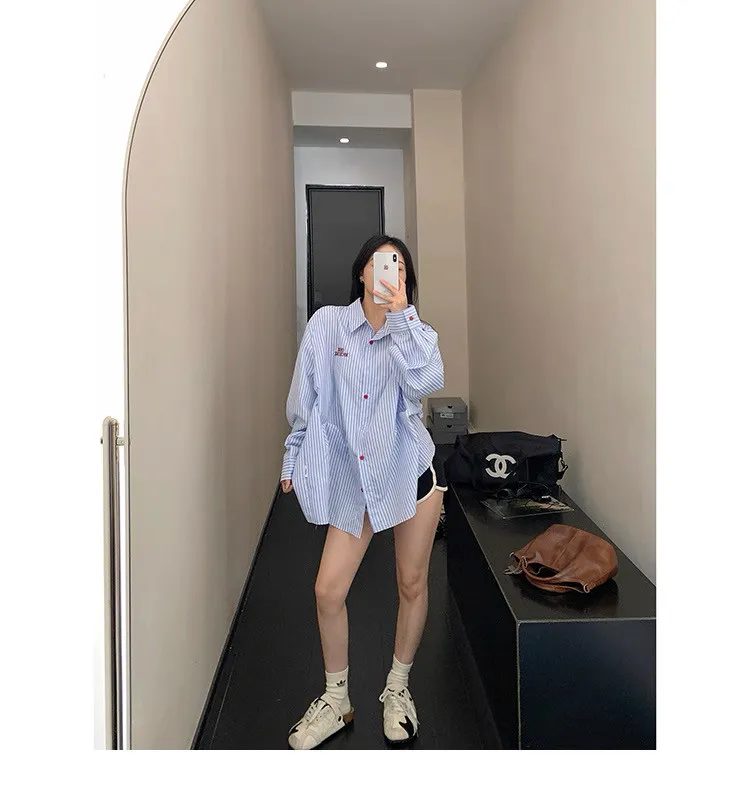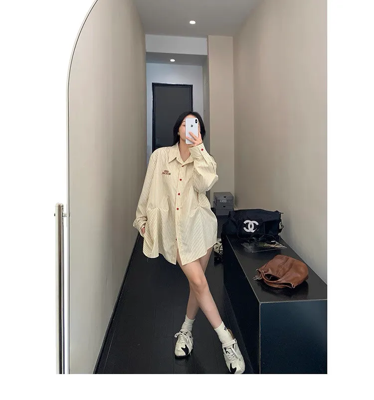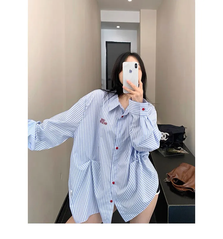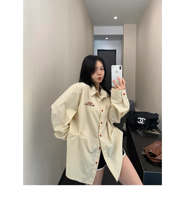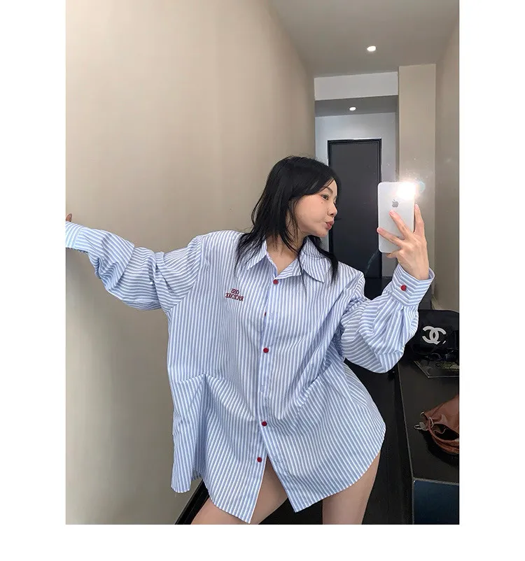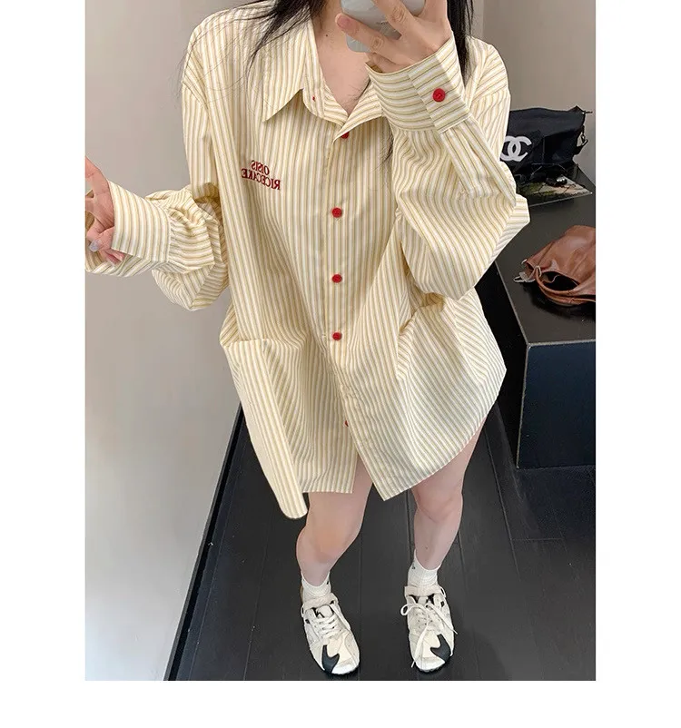 直條撞色釦抓一摺襯衫