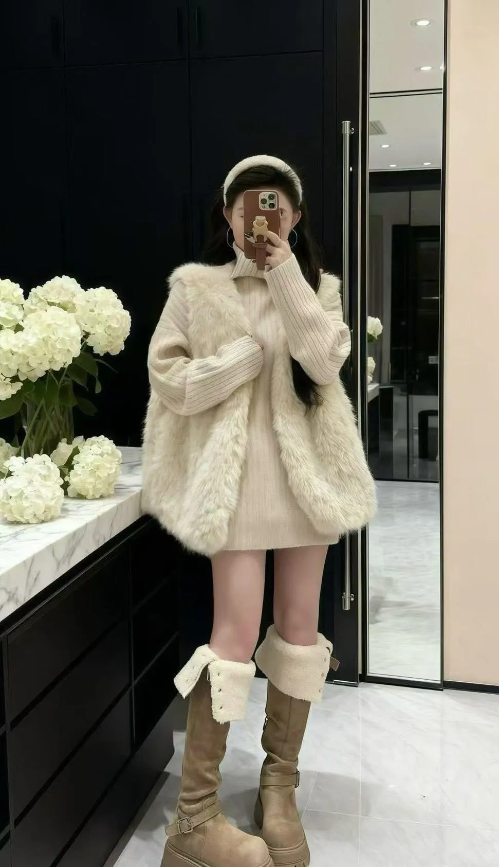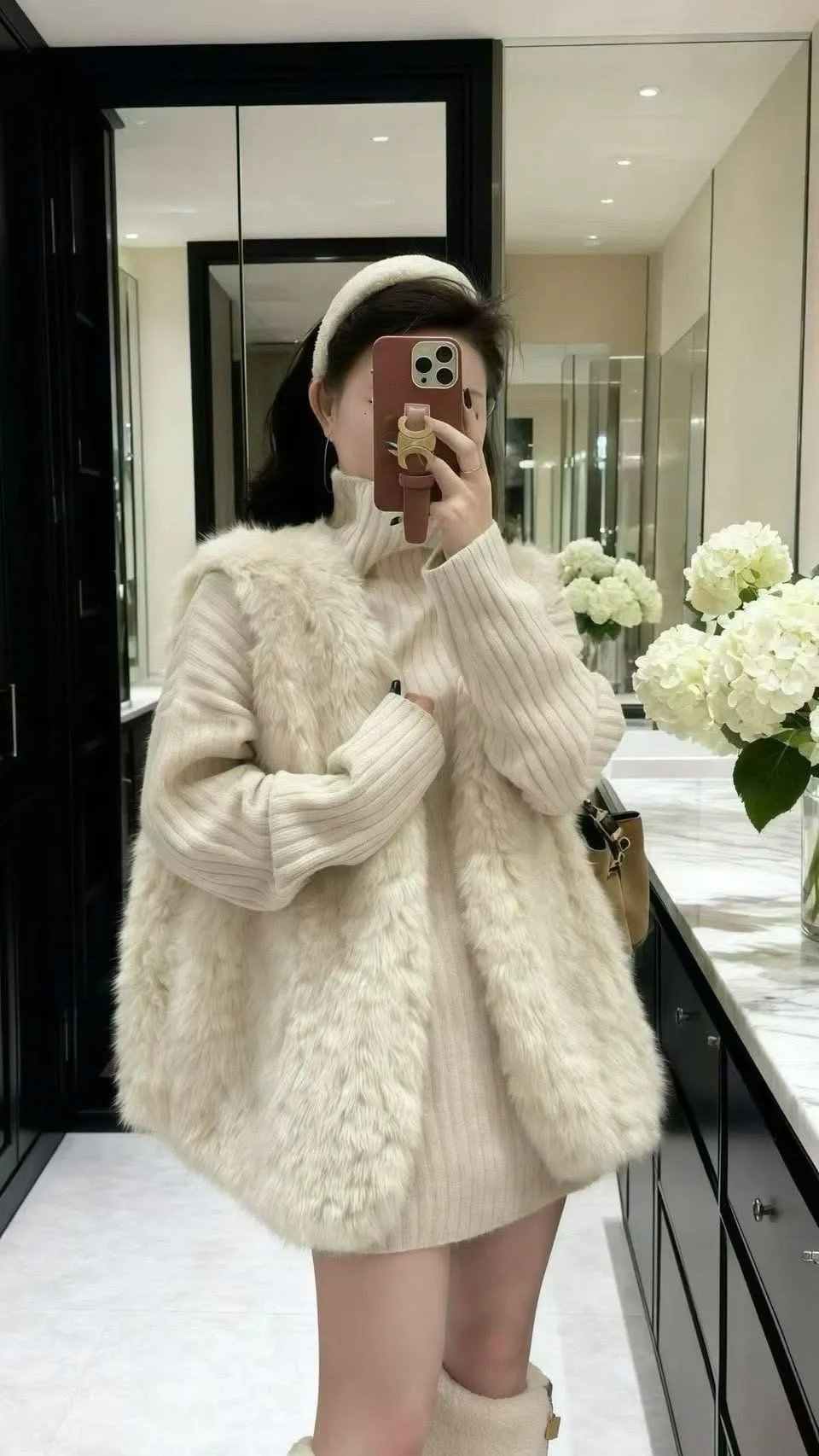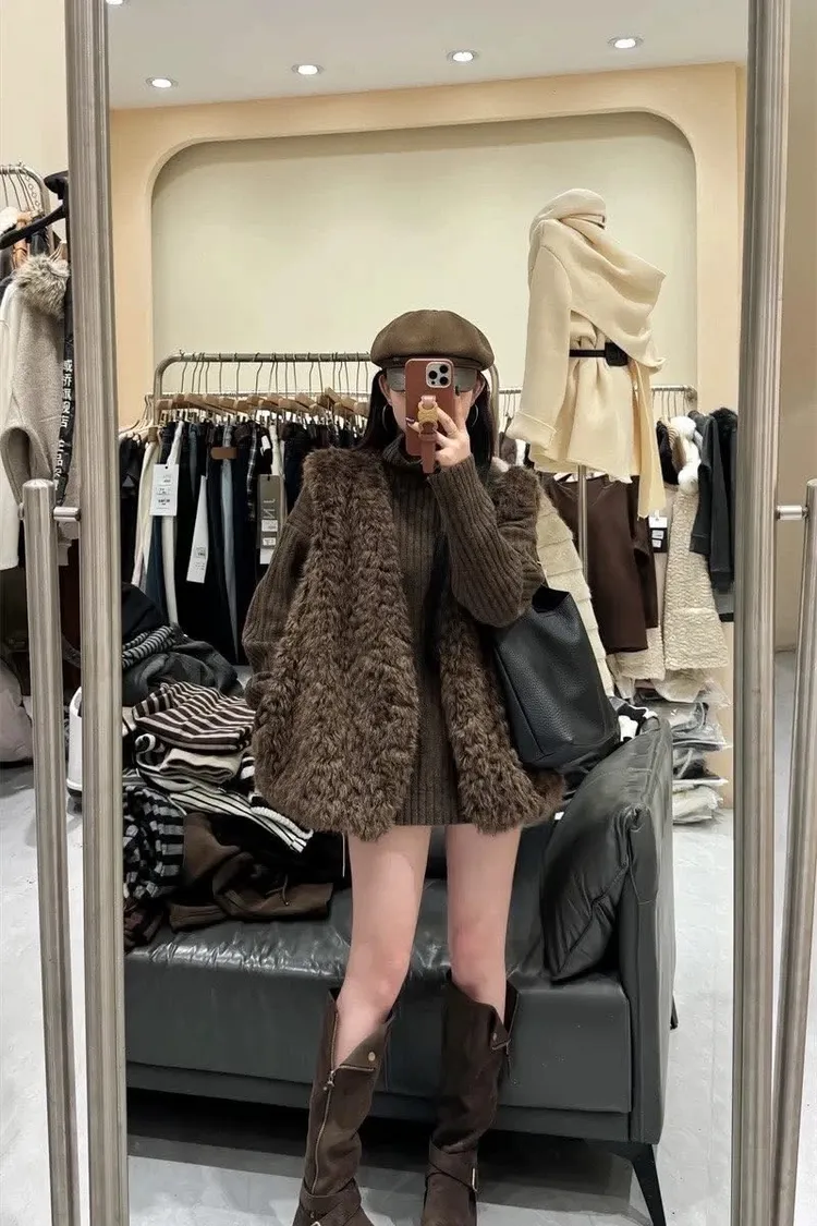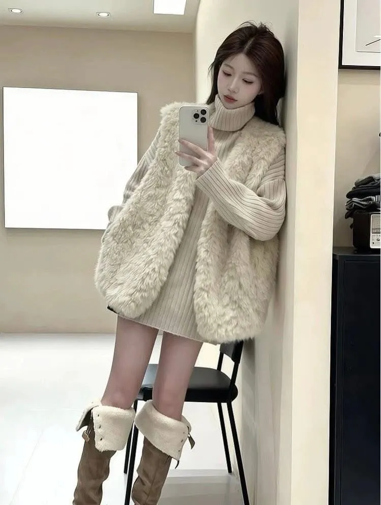 高領慵懶毛衣/毛毛背心-Korea