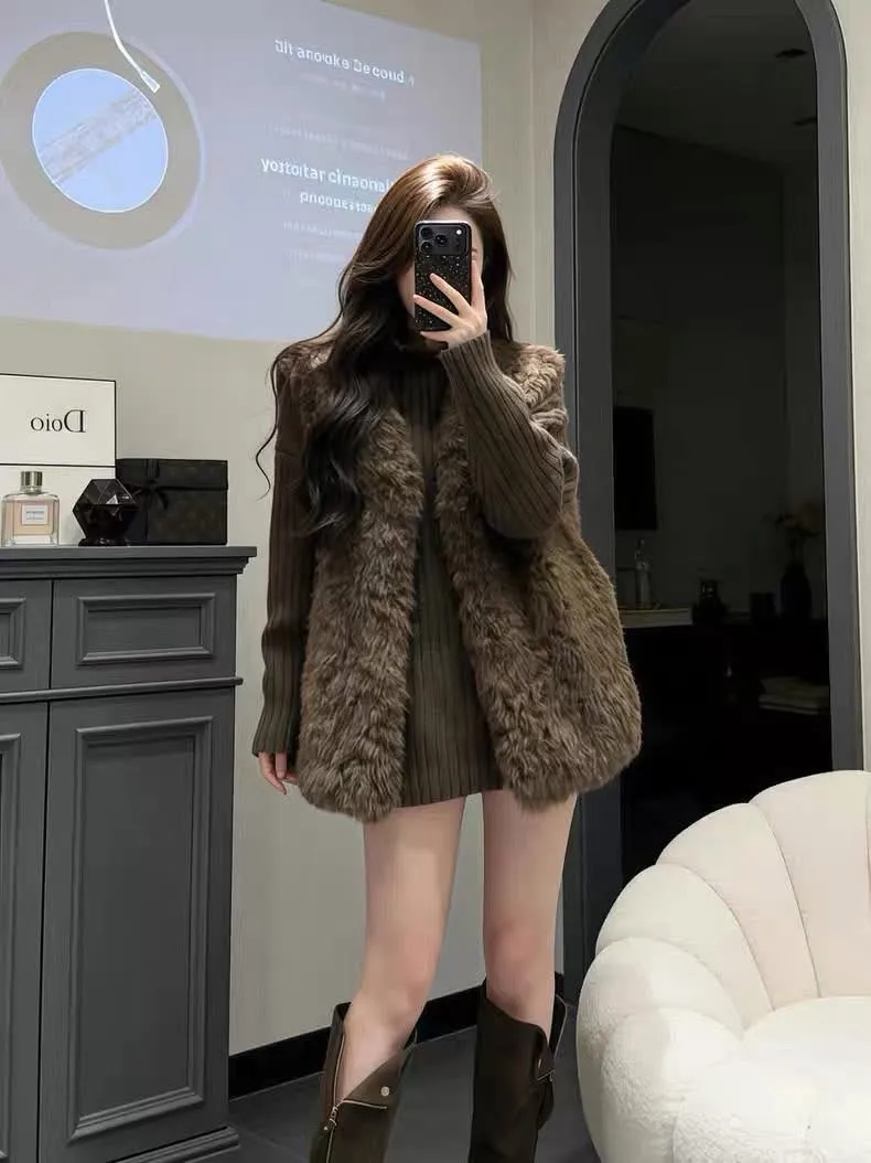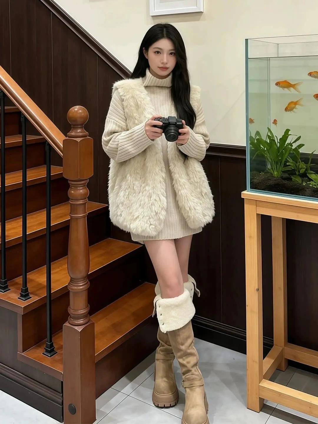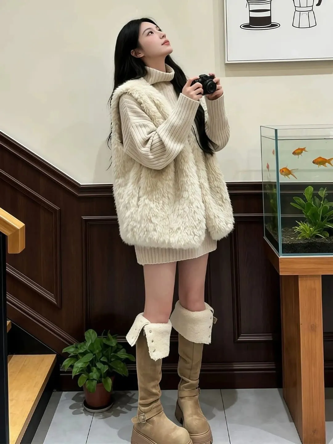 高領慵懶毛衣/毛毛背心-Korea
